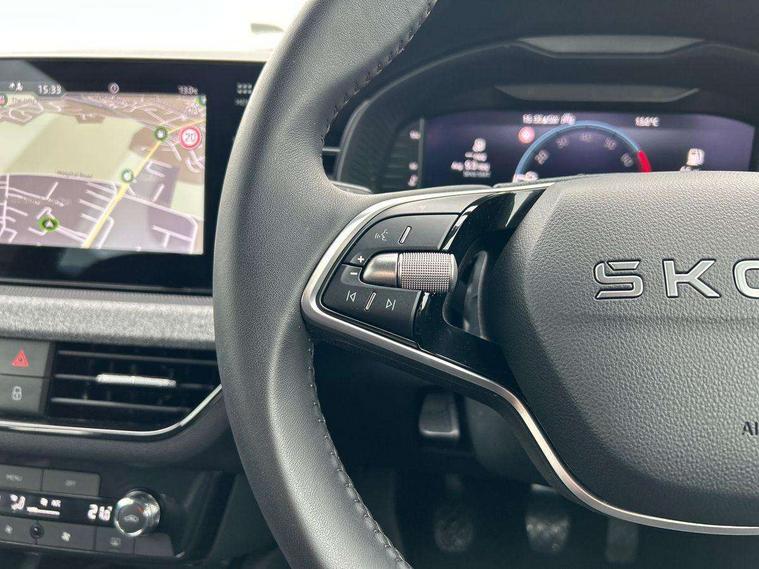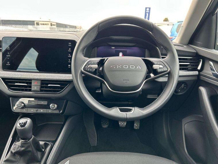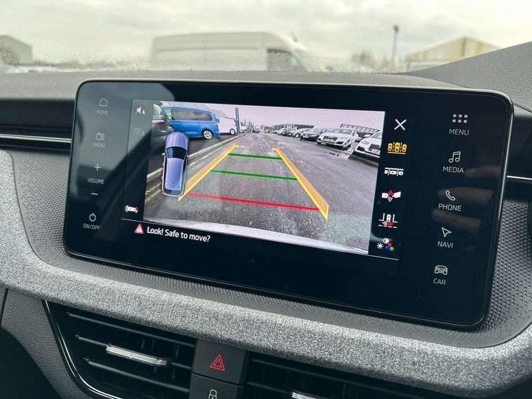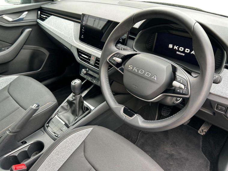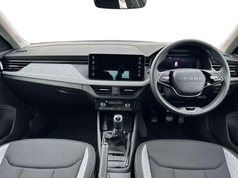 Advanced driver attention and drowsiness monitor, Bluetooth system, E-call, Front assist system, PAS, Rear parking sensors, Rear view camera, Service indicator, Speed limiter, Traffic sign recognition, Virtual cockpit with 10.25" display, Wireless smartlink, 4 USB C ports, 8 Speakers, 9.2" Skoda navigation display, DAB Digital radio, Auto dimming rear view mirror, Automatic headlight control with coming home and leaving home feature, Black roof rails, Body colour bumpers, Body colour door mirrors and handles, Chrome grille surround, Front and rear electric windows, Full LED headlights, Heated rear window, LED brake lights, LED daytime running lights, LED front turning lights, LED high beam, LED low beam, LED third brake light, Rear LED fog light, Rear side wing doors, Rear wiper, Ticket holder inside windscreen, 12V socket in luggage compartment, 3 seat bench in 2nd row, Black hotstamping, Cargo elements, Chrome inner door handles, Driver and passenger sun visors with vanity mirror, Dual zone climate control, Front and rear roof lights, Front centre armrest, Front head restraints, Glove compartment with illumination, Height adjustable driver seat, Height adjustable front passenger seat, Ice scraper, Inner circulation control with pollen filter, ISOFIX on front passenger seat, Isofix preparation for back seats, Krepp recycled decor inserts, Leather gearknob and handbrake lever, Loft cloth upholstery, Manual lumbar support for front seats, Net package and top tether hooks in boot space, Net under rear shelf, Overhead glasses storage compartment, Pocket on the back of both front seats include mobile phone pockets, Rake/reach adjustable steering wheel, Reading lights, Satin black door inserts, Single front passenger seat, Textile floor mats, Third rear headrest, Top tether for front passenger seat, Umbrella in driver's door, 3x3 point rear seatbelts, Airbags - driver and front passenger, Disc brakes, ESP, Extended and predictive pedestrian/cyclist protection, Front passenger airbag deactivation switch, Front side airbags with curtain airbags, Hill hold control, Manual leather parking brake, Manual rear child locks, One tone horn, Seatbelt reminder for driver an co-driver, Traction control, Tyre pressure monitor, Anti-theft alarm system with interior monitoring, backup horn, towing protection and remote central locking with SAFE system, Anti-theft wheel bolts, Electronic engine immobilizer,