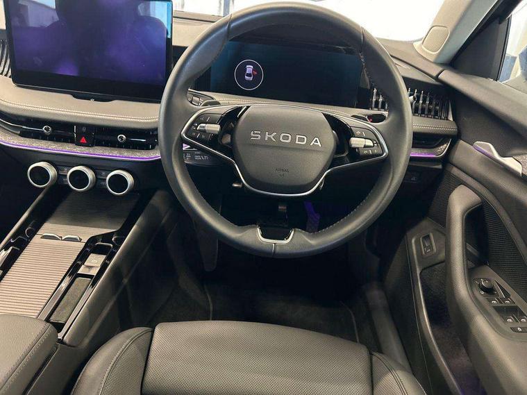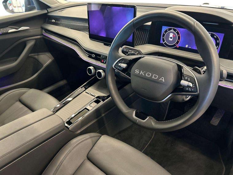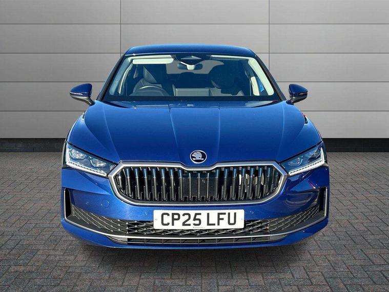 13" touchscreen display with satellite navigation, 4x USB-C ports (2x in front centre console and 2x in rear) (45W), Adaptive cruise control with speed assist, lane assist plus and traffic tram assist, Blind spot detection with door exit warning, Bluetooth system, CareConnect and Emergency Call, ChatGPT functionality, Driver fatigue sensor, Front assist with extended predictive pedestrian protection, Front cross traffic assist, Quick start all heating software functionality, Stop/start engine system, Traffic sign recognition, Turn assist with evasive assistance, Virtual Cockpit - 10.25" digital display, Voice control system, Washer for rear camera, Wireless charging for one smartphone (15W) with cooling function, Wireless smartlink apple carplay, SmartLink+ android auto, DAB Digital radio, Display cleaner, FM radio connection, Web radio connection, Acoustic side windows and interior noise suppression, Backdrop lighting, Body colour door handles, Body coloured door mirrors, Chrome window surround, Dark chrome grille surround, Dynamic range control with poor weather light and integrated fog light, Electrically adjustable, heated, folding and driver side auto-dimming door mirrors with memory function, integrated indicators and logo projection, Frameless auto-dimming rear view mirror with USB-C, Ice scraper in fuel tank cap, LED 3rd brake light, Light assist with High beam control, Light assistant (coming/leaving home/tunnel light), Privacy glass, Rear fog lights (x2), Rear side wing doors, Unique dark chrome design logo on alloy wheels, Windscreen wipers with rain sensor, 12V socket 1x centre console 1x boot, 14-way electrically adjustable, memory, front seats with 4-way pneumatic lumbar support, and extendable thigh support with smart comfort entry aid, 2x cargo elements in boot, 2x light in boot, 3 seat bench in 2nd row, 60:40 Split folding rear seats, Advanced massage function for front seats, Bottle holders in the front doors 1.5 litre bottle and rear 1.5 litre bottle, Cup holder in front with easy open mat, Front armrest with storage box, Front sports comfort seats, Heated and ventilated front seats, Height adjustable front and rear head restraints, Illuminated glovebox, Interior lights with control switches, Isofix child seat fittings in outer rear and front passenger seats, LED front and rear reading lights, Single front passenger seat, Skoda lettering on steering wheel, Storage compartment with cover, Storage pockets on back of front seats, Sun visors with illuminated vanity mirrors, Ticket holder on A Pillar, Tri zone climate control, Umbrella in driver's door, Light and view package - Superb, Transport package - Superb Hatchback, 3 rear seatbelts, 8 Airbags - Front driver and passenger, front side driver and passenger, centre, curtain front and rear, drivers knee, Crew protect assist, Driver and passenger seatbelts with warning light, Electronic parking brake, ESC including ABS, EBV, MSR, ASR, EDS, HBA, DSR, RBS, CBC, multi-collision brake (MKB) and Auto hold, Hill hold assist, Power operated child lock in rear doors, Alarm with interior monitoring tilt sensor and back up horn, Backrest remote release from trunk, Electronic engine immobiliser, Keyless start/stop, Remote central locking with SAFE system, Third key, Walk away locking, Decorative front door sills,