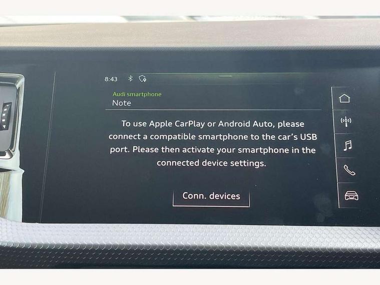 10.25" Digital instrument cluster display classis style instrument dials + speed, odometer, time, outside temperature, telephone menu + fuel level warning, Audi connect safety emergency and service including E-call, Audi drive select - power steering assistance + engine, Audi smartphone interface with connect compatible smartphone via USB directly MMI display + Nav, music, third party apps controlled via MMI controller, Automatic start/stop system, Bluetooth interface, Cruise control, Driver's information system, Electromechanical power steering, Lane departure warning system, Service interval indicator, Speed limiter, Voice control system, Washer fluid level indicator, Dynamic suspension, 1 x SDXC card reader, 2 x USB type C connection points, DAB Digital radio, MMI radio plus with 8.8" colour MMI display screen and MMI touch, Auto dimming rear view mirror, Body coloured bumpers, Body coloured door mirrors, Electric front and rear windows, Electrically adjustable, heated, folding door mirrors with integrated LED side indicator, Front side air inlets in grained matt black and C frame in titanium black, Heat insulating glass windscreen and side windows, Heated rear windscreen, LED headlights with LED rear lights + dynamic rear indicators + headlight adjustment and high beam, turning light + LED daytime running lights, Radiator grille and rear diffuser in matt titanium black, Radiator protective grille frame in matt aluminium silver, Rain and light sensors, Rear fog lights, Rear wiper, Scandium grey tailpipe trim, Side front spoiler lips in grained matt black, 12V socket in centre console with two cup holders, 3 rear seats with headrests, 40:60 Split folding rear seat or folded fully, Door sill trims with aluminium inlay, Driver and passenger seat with manual height adjust with forward and backwards adjustment, Front head restraints, Front/rear floor mats, Height and reach adjustable steering wheel, ISOFIX child seat mounting for front passenger and outer rear seats including top tether attachment point of outer rear seats, Leather gear knob with aluminium trim, Leatherette handbrake grip, Luggage compartment light with front and rear reading lights, Manually adjustable lumbar support in front seats, Novum cloth upholstery with front sport seats, Titanium grey cloth headlining, Luggage compartment pack - A1, 3x3 point rear seatbelts, Audi pre-sense front with pedestrain and cyclist recognition, Brake assist function, Driver and front passenger airbag with front side and head airbags, Electronic Stability Control including ABS, EBD, ASR and EDL, Front and rear seatbelt reminder, Front passenger airbag deactivation switch, Hill hold assist, Seatbelt height adjustment for front seats, Seatbelt monitoring, Tyre pressure warning light, Warning triangle and first aid kit, Anti theft alarm, Anti theft wheel bolts and loose wheel warning, Immobiliser, Remote central locking with 2 foldaway keys, Aluminium trim for control switches, air vents and digital instrument cluster, Silver grey accent areas including air vents, door handle recesses and centre console in diamond paint finish, Slate grey inlays polygon structure in fine paint finish,