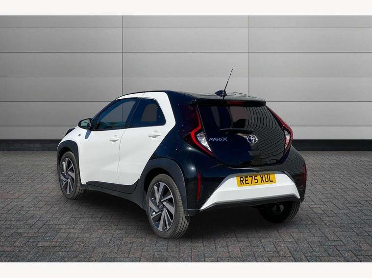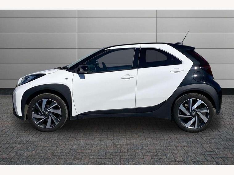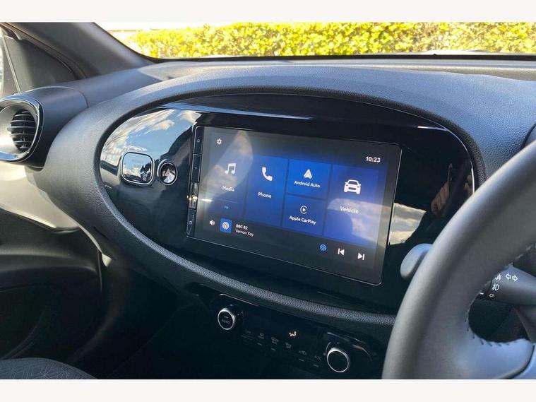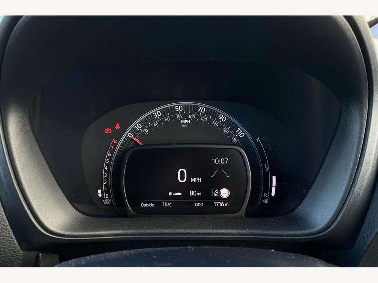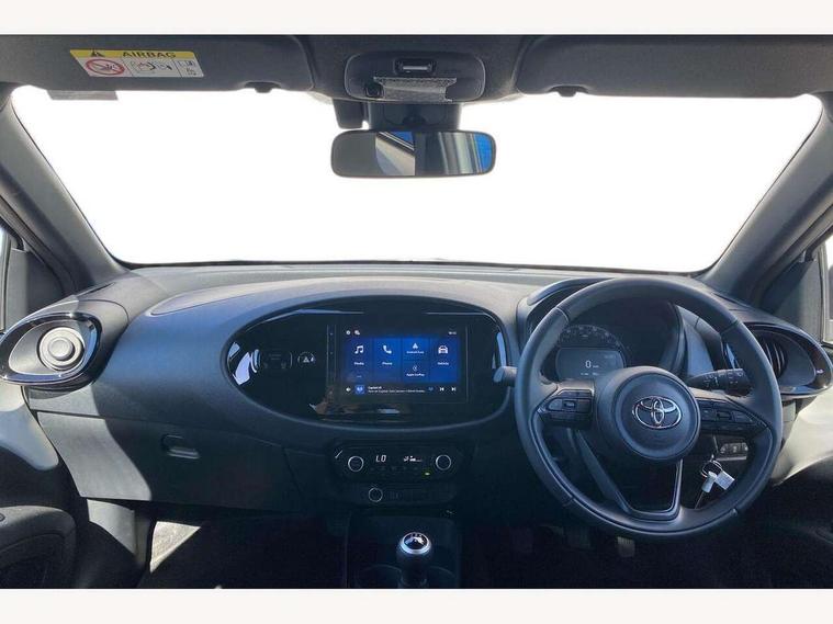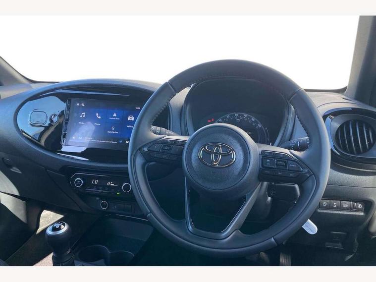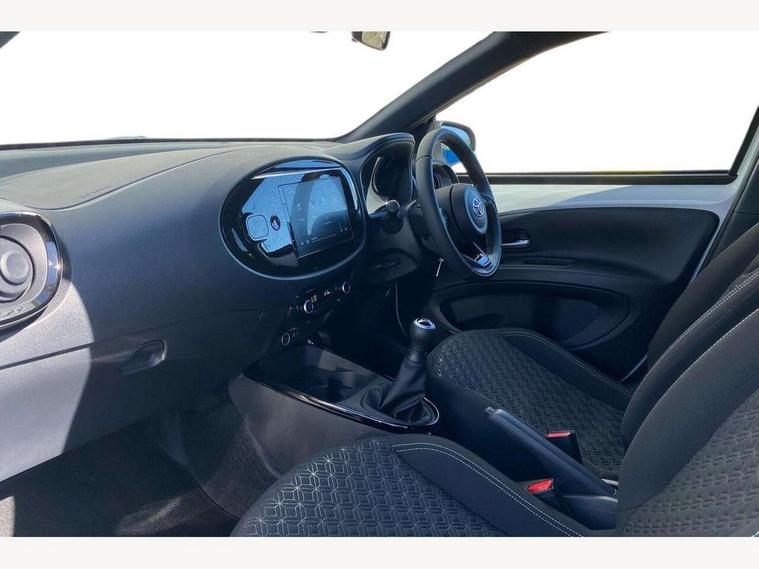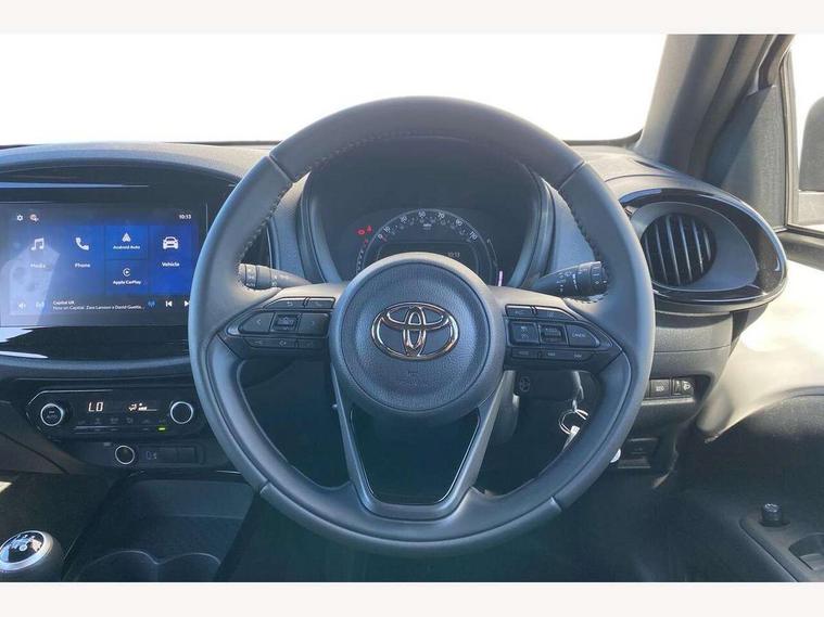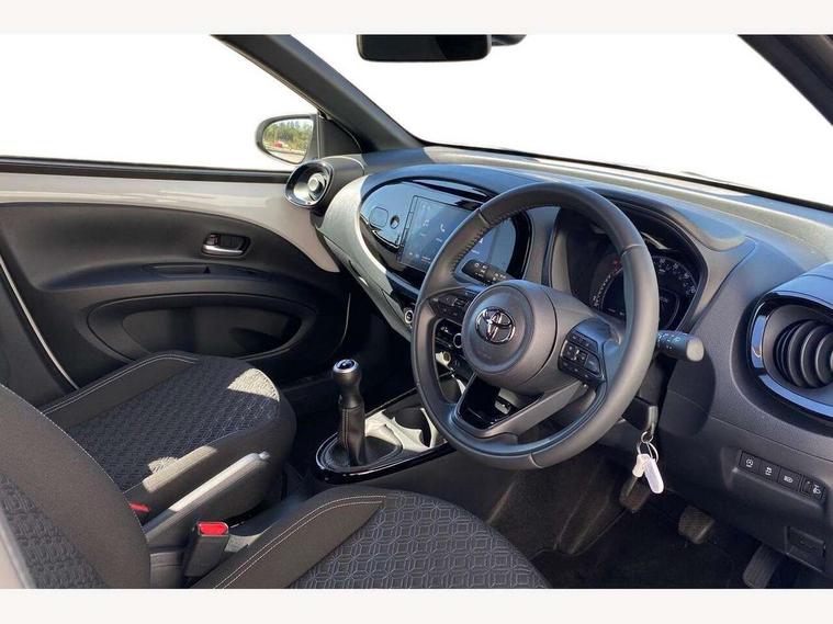 4.2" TFT colour screen, Adjustable speed limiter, Analogue speedometer, Bluetooth connectivity, Digital tachograph, Driver attention alert system, eCall emergency call system, Electric power steering, Intersection turn assist, Key reminder warning, Noise reduction kit, Pre collision system with emergency steering assist, Reversing camera with static guide lines, Smart phone integration with Apple car play/Android Auto, Speed limit display, Start and stop, Vehicle Stability Control (VSC), 4 speakers, 9" HD multimedia display touch screen with Toyota smart connect, DAB digital audio broadcast, USB connector, Auto headlights, Auto wipers, Automatic headlights cut-off, Bicycle towing hook, Black contrast roof, Black side protection mouldings, Black wheel arch mouldings, Body colour door handles, Body coloured front bumper, Boot door scuff plate, Eclipse black rear bumper, Electric heated door mirrors, Follow me home headlights, Front fog lights, Front power windows, Gloss black door mirrors, Gloss black upper front grille, Headlight cut-off reminder, LED daytime running lights, LED front light guide, LED High mounted stop lamp, Manual day/night rear view mirror, Manual headlight levelling, Pagoda roof, Power adjustable door mirrors, Power back door, Privacy glass, Projector halogen headlights, Rain sensor, Rear combination lights LED bulb type, Rear side wing doors, Rear windscreen defogger, Rear windscreen wiper, Short antenna, Variable intermittent windscreen wipers, 12v power outlet - front, 2 seat bench in 2nd row, 3 spoke leather steering wheel, 50/50 split folding rear seat, Adhesive roof headlining, Adjustable speed limiter switch on steering wheel, Audio and telephone switches on steering wheel, Auto air conditioning, Black insert on steering wheel, Black roof lining, Boot light, Centre room light, Chrome interior door handles, Chrome surround on air conditioning buttons, Clean air filter, Console box storage in body color, Fabric upholstery, Floor mats, Front and rear cup holders, Front head rest deco art, Front head restraints, Height adjustable driver seat, Intelligent adaptive cruise control switch on steering wheel, ISOFIX child restraint system on rear seats, Lane departure alert switch on steering wheel, Leather gearshift knob, Manual tilt steering wheel, Manually reclining and sliding driver seat, Manually reclining and sliding front passenger seat, Multimedia switches on steering wheel, Pollen filter, Rear door pockets, Rear head restraints, Satin silver insert on gear shift knob, Single compartment glovebox with lights, Single front passenger seat, Soft tonneau cover, Sun visors with mirror on driver and passenger side, Voice recognition switch on steering wheel, Toyota safety sense pack - Aygo X, Anti lock braking system + Electronic brake force distribution, Child safety door lock, Emergency brake light signal (EBS), Hill start assist control (HAC), Passenger airbag on/off switch, Seat belt reminder for front and rear seats, Supplement restraints system (SRS) - 6 airbags, Traction control, Tyre pressure warning system, Immobiliser, Remote power door locks, Black wheel centre caps, Tyre repair kit,
