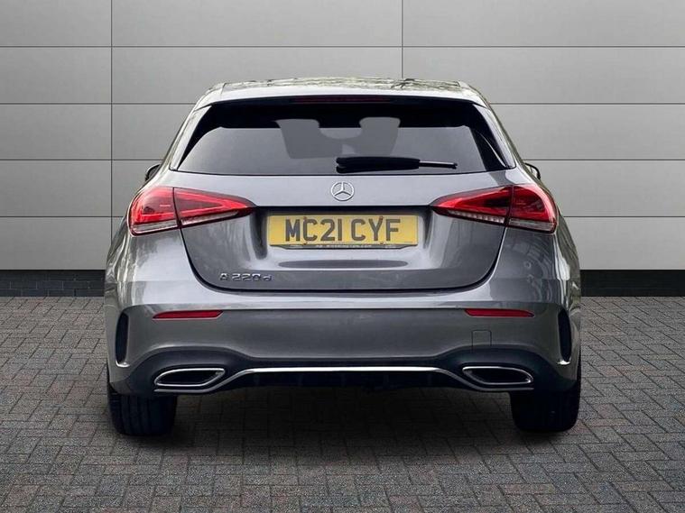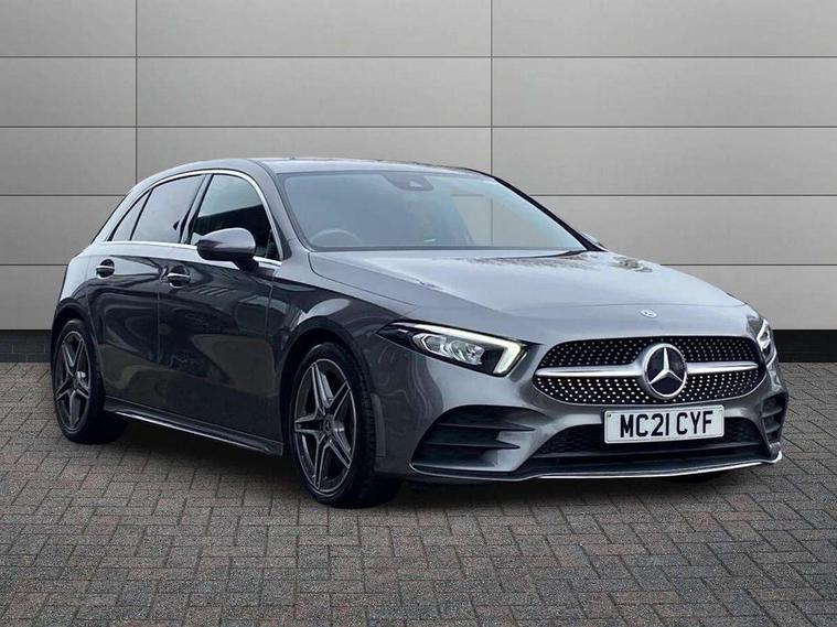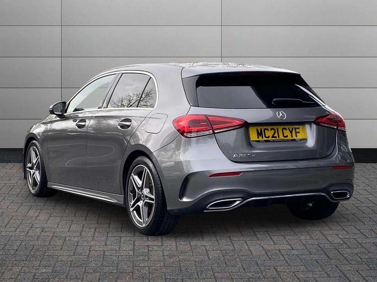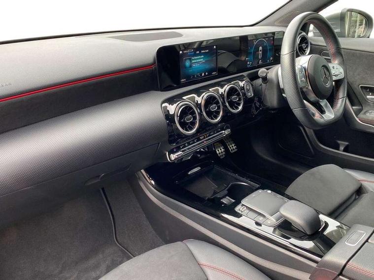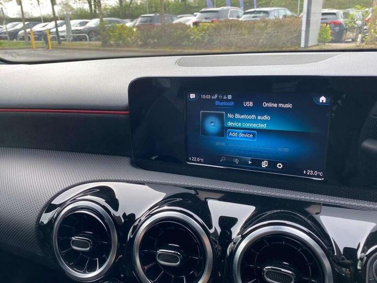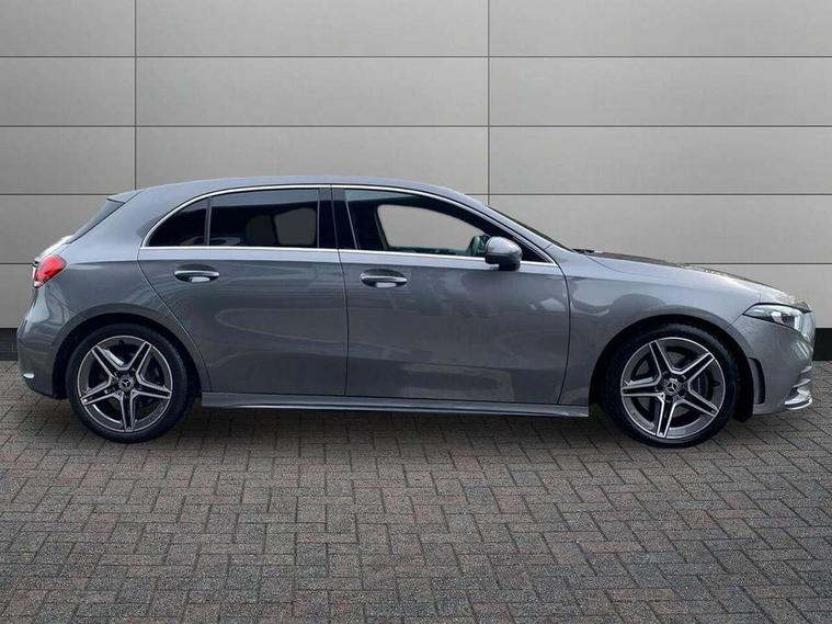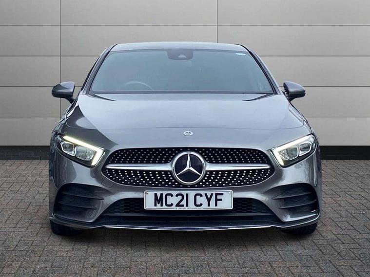 180 degree rear view camera with parking guidelines, 7" colour screen in instrument panel, 7" touchscreen media display, Attention assist, Brake pad wear indicator warning light, Car wash mode, Cruise control + speed limiter, Direct steering, Dual bluetooth interfaces, DYNAMIC SELECT with a choice of driving modes (ECO, Comfort, Sport and Individual), ECO start/stop function, Fluid level warning indicator for fuel, oil, coolant and washer fluid, Hard-disk navigation, Hey Mercedes Voice activation, Lamp failure indicator, Mercedes me connect including emergency call system, accident recovery, breakdown and maintenance management, Mercedes me remote services, Outside temperature gauge, Owners manual in English, Pre-installation for private car sharing, Preinstallation for Mercedes Benz link, Service indicator (ASSYST), Speed sensitive power steering, Trip computer, Lowered comfort suspension, Rear axle multi-link, 2 USB ports (type C) in rear stowage compartment and one in front of center console, 6 speakers, DAB Digital radio, MBUX multimedia system with DAB digital radio and touchpad including satellite navigation, Mercedes-Benz sound system - 100W, 4 Electric Front and Rear windows, Adaptive brake lights, AMG bodystyling - Front apron with splitter in chrome, rear apron with chrome trim and chrome visible trim elements in tailpipe, Black weather strip, Body colour bumpers, Body colour door handles, Body colour side skirt, Body coloured door mirrors, Chrome beltline trim, Diamond radiator grille with chrome pins and silver louvre + chrome insert, Electric adjustable and heated door mirrors with integrated LED side indicators, Exhaust system - Twin visible tailpipes in polished stainless steel, Headlamp assist automatic headlamp activation, Heated glass rear windscreen + timer control, LED high performance headlamps with integrated LED daytime running lights, LED tail lamp, LED third brake light, Privacy glass, Radio aerial, Rain sensing windscreen wipers with two sensitivity settings, Rear fog lights, Rear wiper, Window line trim strip in chrome, 3 Spoke flat bottom leather multi function steering wheel with perforated leather in grip area, 40:20:40 split folding rear seats, Artico man-made leather/Microfibre Dinamica upholstery with red contrast stitching, Auto Mercedes-Benz child seat recognition sensor, Black air vents with surround in silver chrome, Black roof lining, Brushed stainless steel sports pedals with rubber studs, Controller on centre console with chrome surround, Floor mats with stitched edging and AMG lettering, Front centre armrest with storage compartment, Front door sills with Mercedes Benz lettering, Front seat backs luggage nets, Front seat cushion length adjustment, Galvanished gear shift paddles on steering wheel, Heated front seats, Height/reach adjustable steering column, Interior mirror with reading lamps in black and frameless, Manual height adjustable front seats, Rear head restraints, Seat occupancy sensor for front passenger seat, Sports seats with integrated headrests, Stowage compartment in centre console with retractable cover, Sunvisors with illuminated vanity mirrors, Touchpad on center console, Twin front cupholders, Two zone thermotronic luxury automatic climate control, Light and sight pack - A Class, Seat comfort pack - A Class, 3 rear 3 point seatbelts, ABS with Brake Assist, Active bonnet, Active brake assist includes forward collision warning system with autonomous braking, Adaptive brake assist with hold function and hill start assist, Childproof locks manually operated for rear doors and electrically operated for rear power windows, Crash responsive emergency lighting, Driver and passenger head and side airbags, Drivers knee airbag, Dual stage driver/passenger airbags, Electronic parking brake, ESP curve dynamic assist, ESP with ASR, Front and rear seatbelt reminder, Front brake callipers with Mercedes Benz lettering, ISOFIX and top tether child seat fixing points in two outer rear seats, Tyre pressure monitoring system, Warning triangle and first aid kit, Window airbags, Alarm system/interior protection/immobiliser, Keyless Go, Remote central locking and crash sensor with emergency opening function, Urban guard vehicle protection system with immobiliser and interior protection, Black seatbelts, Dinamica microfibre trim in black, 18" AMG 5 twin spoke light alloy wheels in titanium grey with highsheen finish, Summer tyres, Tirefit sealant kit,