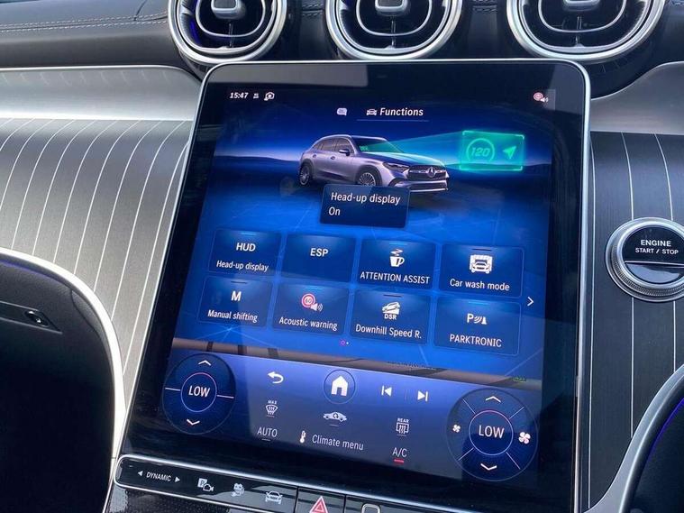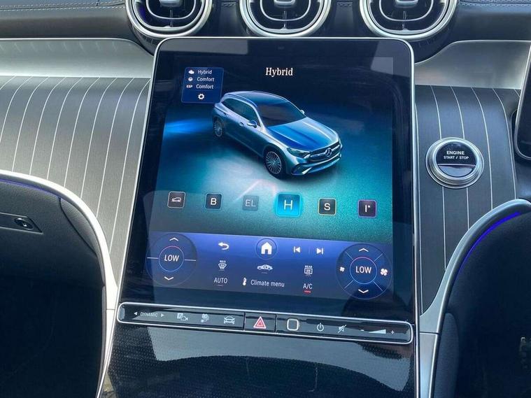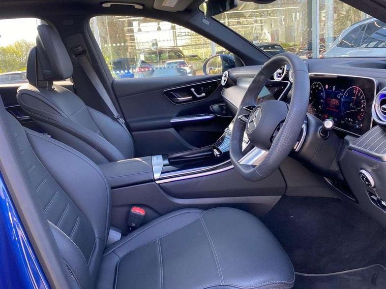 11.9" high resolution multimedia colour display, 12.3" Digital individually configurable instrument display, Acoustic presence indicator, Active lane keeping assist, Active park assist with PARKTRONIC/360 degree camera - Detects spaces/assists with steering, accelerating/braking when reversing into a parking space, Attention assist, Blind spot assist, Bluetooth interface for hands free telephone, Collision prevention assist plus, Direct steer speed sensitive steering, DYNAMIC SELECT with a choice of driving modes (ECO, Comfort, Sport and Individual, Offroad)), eCall emergency call system, Fingerprint scanner, Fluorescent jacket for driver, Hard disc navigation, Head up Display, Instrument display in miles with English lettering, MBUX augmented reality for navigation, MBUX navigation premium, MBUX voice control activated by keywords "Hey Mercedes", Mercedes me connect, Multi function trip computer, Outside temperature display, Remote and charging services plus, Remote boot release, Road sign recognition system, Service indicator (ASSYST), Smartphone integration with Apple CarPlay/Android Auto, Status display for rear seat belts in instrument cluster, Traffic sign assist, Wireless charging system for mobile devices in the front, 49 litre fuel tank, 4MATIC four wheel drive - variable all wheel drive system designed for all weather traction, 7.4 kW monophase on board charger, 9G TRONIC 9 speed automatic transmission with steering column gear selector and DIRECT SELECT steering wheel paddles, Alternating current charging system (AC charging), Charging cable for domestic socket (mode 2) - 5m, DC Charging system, Mode 3 charging cable for wallbox and public charging station with 5 m, straight, Petrol Particulate Filter (PPF), Residual engine heat utilisation, Burmester 3D surround sound system - 13 speakers and a 9 channel amplifier with total output of 590 watts, DAB digital radio tuner, MBUX extended functions, Pre installation for Mercedes Benz Link, Sound personalisation, Adaptive brake lights, Adaptive high beam assist plus, Aluminium look running boards with rubber studs, AMG bodystyling front apron, rear apron and side skirts, AMG Line exterior, Auto headlights, Black roof rails, Body colour bumpers, Body colour door mirrors, Digital light LED headlights, Electric panoramic glass sunroof, Electrically adjustable door mirrors, EQ Hybrid badging on front wings, Front and rear electric windows, Headlight washers, Heat and noise insulating acoustic glass, Heat insulating dark tinted glass, Heated rear window, High level LED brake light, Integrated LED daytime running lights, LED indicator lights, LED rear fog lights, LED tail lamp, MG diffuser look rear apron with insert in chrome, Motor way mode function and locator lighting, Radiator grille with Mercedes Benz pattern and integreated Mercedes star and louvre in dark grey matt with chrome inlay and black frame, Rain sensor windscreen wipers, Range adjustable headlights, Rear side wing doors, Rear wiper, Transparent Bonnet, Two chrome plated tailpipe trim elements, Variable front intermittent wipers, Welcome and follow-me home light functionality, Wheel arch liners in the vehicle colour, 3 seat bench in 2nd row, 40:20:40 split folding rear seats, Ambient lighting premium - Illuminated light lines on the centre console flanks, instrument panel, doors and in the air vents, additional dimming zone, AMG brushed stainless steel sports pedals with black rubber studs, AMG line interior, Artico man-made leather upholstery, Automatic child seat recognition sensor, Black fabric roof lining, Black floor mats with AMG lettering, Climatised front seats - Heated and cooled, Comfort seats, Double cup holder in centre console, Electrically height/reach adjustable steering column, Front centre armrest with stowage compartment, Front head restraints, Heated steering wheel, Illuminated and lockable glove compartment, Illuminated door sill panels with Mercedes Benz lettering, Instrument panel and beltlines in ARTICO manmade leather in nappa look, Interior ambient lighting - 64 colours, 10 colour themes with indirect illumination of the dashboard/door trims, 5 brightness levels/3 dimming zones, Multicontour front seat with massage function, Multifunctional sports steering wheel in nappa leather, galvanised gearshift paddles, audio and onboard setting controls, Partition net, Rear centre headrest, Rear head restraints, Rear top tether child seat ISOFIX attachment, Removable load compartment cover, Single front passenger seat, Sun visors, THERMATIC 2 zone automatic climate control, Boot comfort package - GLC, Easy tailgate pack - GLC, Exterior chrome package - GLC, Interior chrome package - GLC, Interior lighting pack - GLC, Keyless-Go comfort package - GLC, Memory pack - GLC, Mirror pack - GLC, Night package - GLC Urban Edition, Stowage space package - GLC, USB Plus Pack - GLC, 3 rear 3 point seatbelts, Active bonnet, Adaptive brake system with HOLD function and brake drying in the wet, Anti-lock braking system (ABS), ASR traction control, Automatic front passenger airbag deactivation, Black seat belts, Brake calipers with Mercedes-Benz lettering + perforated brake discs, Brake calipers with Mercedes-Benz lettering + perforated front brake discs, Child proof door locks, Dual-stage airbags - driver and front passenger, driver knee bag and window bags for driver, front passenger and rear passengers, Electronic parking brake, Electronic stability programme (ESP) with curve dynamic assist and cross wind assist, Front and rear seatbelt reminder, Front passenger seat occupancy sensor, Front seatbelt pretensioners, Hill start assist, Tyre pressure monitoring system, Warning triangle and first aid kit, Anti theft alarm system with immobiliser and interior protection, Automatic door locking, Guard 360 degree vehicle protection plus, Increased anti-theft protection, Interior protection/immobiliser, Remote central locking, Black open pore aluminium lines wood trim with centr