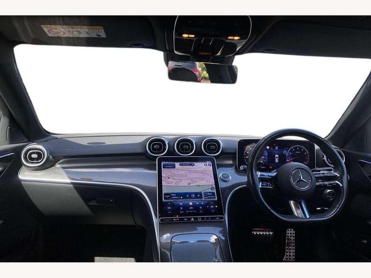 11.9" high resolution multimedia colour display, 12.3" digital instrument cluster display, Active blind spot assist, Active brake assist plus, Active lane keeping assist, AMG DYNAMIC SELECT with a choice of driving modes (Slippery, Comfort, Sport, Sport+, Individual), Attention assist, Cruise control with speedtronic variable speed limiter, E-call, Easy pack automatic powered tailgate, Extended MBUX functions, Finger print sensor, Fluorescent jacket for driver, MBUX navigation premium, MBUX voice control activated by keywords "Hey Mercedes", Mercedes connect me, Mercedes me remote services, Outside temperature gauge, Pre-installation for digital key transfer, Remote boot release, Service indicator (ASSYST), Smartphone integration, Speed limit assist, Sports direct steer speed sensitive steering, Status display for rear seat belts in instrument cluster, Traffic sign assist, Wireless charging system for mobile devices, 66l fuel tank with increased capacity, 9G TRONIC 9 speed automatic transmission, Agility control sports suspension and lowered by 15 mm, Petrol Particulate Filter, Sporty engine sound system, DAB Digital radio, MBUX multimedia system, Adaptive brake lights, Adaptive high beam assist, AMG body styling front apron, rear apron and side skirts, AMG front bumper with sporty air intakes and chrome elements, AMG rear bumper with high gloss chrome elements, AMG side skirts in vehicle colour, B-pillar trim in glossy black, Body coloured bumpers, Body coloured door mirrors, Chrome beltline trim, Chrome roof rails, Daytime running lights, Electric windows with one touch opening/closing and obstruction sensors, Electrically adjustable and heated door mirrors, Green tinted glass, Heat insulating dark tinted glass, Illuminated front door sill panels, LED high performance headlamps, LED Indicators, LED tail lights, LED third brake light, Powerdomes on bonnet, Privacy glass, Radiator diamond grille with integrated Mercedes Benz star and louvre silver with chrome pins, Radio aerial integrated into rear window, Rain sensor with automatic windscreen wiper activation, Rear side wing doors, Rear wiper, Side windows surround in polished aluminium, Two visible exhaust pipes integrated into rear bumper, 3 seat bench in 2nd row, 3 spoke flattened bottom AMG multifunction steering wheel in black nappa leather with chrome inserts and perforated leather in grip area, 40:20:40 split folding rear bench seat, AMG sports seats, Artico man-made leather upholstery, Audio and onboard settings control on multifunction steering wheel, Auto Mercedes-Benz child seat recognition sensor, Black air vents with silver chrome elements, Black floor mats with AMG lettering, Black roof liner, Door trim elements high gloss black with silver chrome surroundings and switches, Double cupholder in centre console, Folding rear seat backrest, Front and rear head restraints, Front centre armrest with storage compartment, Front door sills with Mercedes Benz lettering, Gearshift paddles on steering wheel, Heated front seats, Illuminated glove compartment stowage, Interior lighting - 64 colour Ambient lighting, Load compartment cover, Manually height and reach adjustable steering column, Overhead control unit in high gloss black, Rear top tether child seat ISOFIX attachment, Single front passenger seat, Sports pedals with stainless steel surfaces and rubber studs, Sunvisors with illuminated vanity mirrors, THERMATIC 2 zone automatic climate control, Interior lighting package - C Class, Memory package - C Class, Mirror pack - C Class, Parking package with reversing camera - C Class, Seat comfort pack - C Class, Stowage space pack - C Class, USB package - C Class, USB package plus - C Class, 3 rear 3 point seatbelts, Active bonnet pedestrian safety measure which detects an impact and raises bonnet, Adaptive brake system with HOLD function and brake drying in the wet, Anti-lock braking system (ABS), Black seat belts, Brake calipers with Mercedes-Benz lettering + perforated front brake discs, Child proof door locks, Drivers knee airbag, Drivers pelvis airbag, Dual stage driver/passenger airbags, Electric parking brake, Electronic Stability Programme (ESP), Front centre airbag between driver and front passenger seats, Front side airbags, Larger brake discs on front axle, Rear seatbelt warning indicator, Sports braking system, Tyre pressure monitoring system, Warning triangle and first aid kit, Window airbags for driver, front passenger and rear passenger, Central locking with interior switch, automatic locking and crash sensor with emergency opening function, Chrome surround in electric key, Keyless Go, URBAN GUARD vehicle protection (Thatcham Category 1) consisting of break-in, anti-theft alarm system (ATA), interior monitoring and tow-away protection, Artico man-made leather dashboard with contrast stitching, Centre console trim in metal weave, 18" AMG 5 spoke design aerodynamically optimised alloy wheels painted in tantalite grey with high sheen finish, Summer tyres, TIREFIT with tyre inflation compressor,