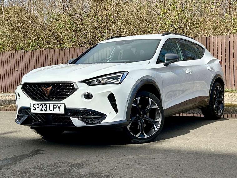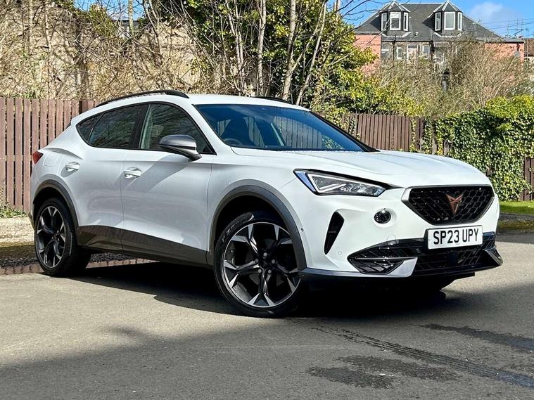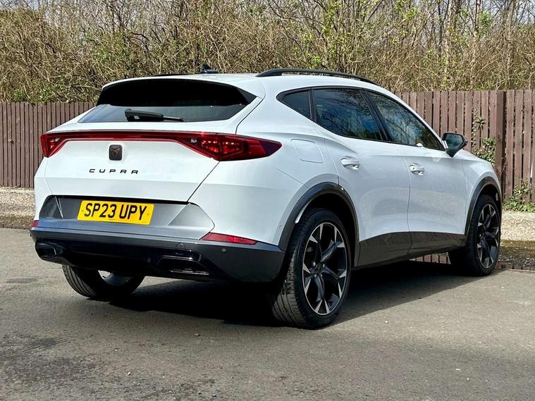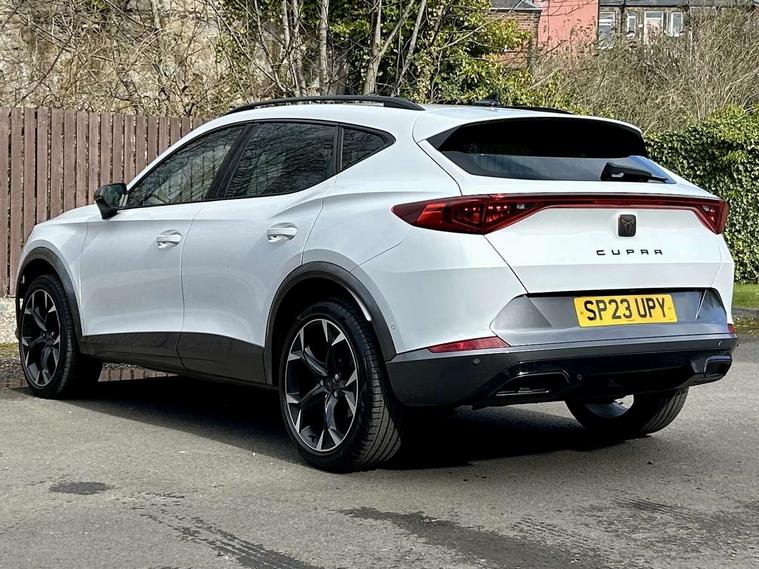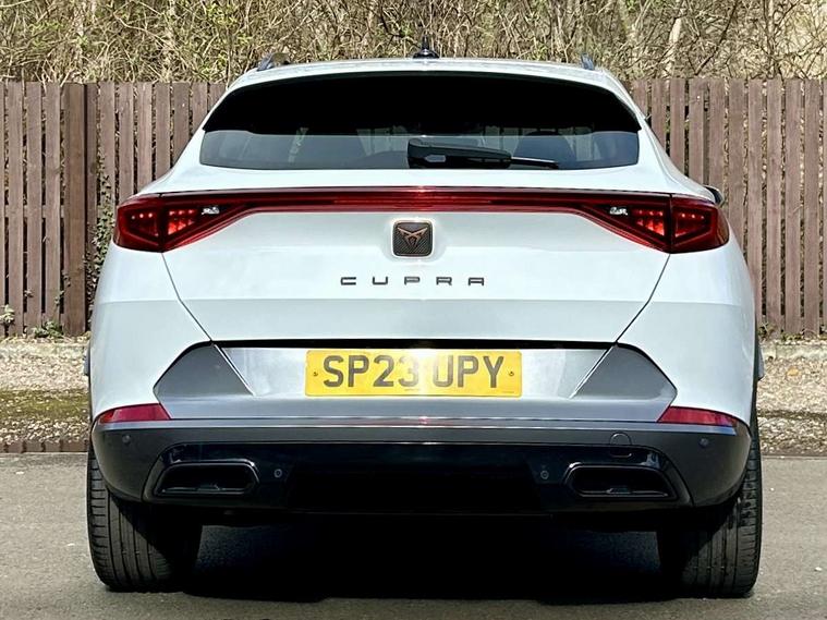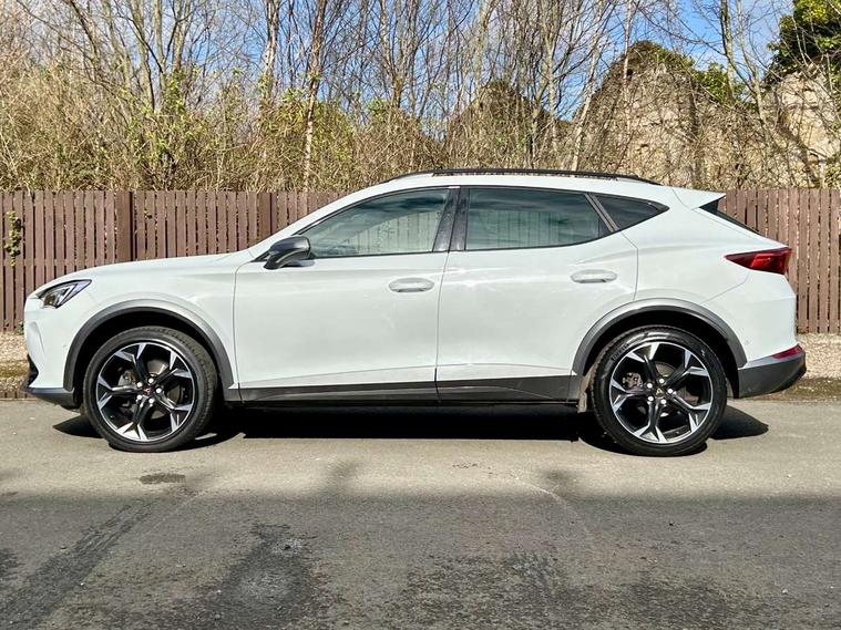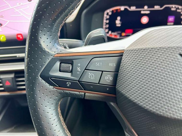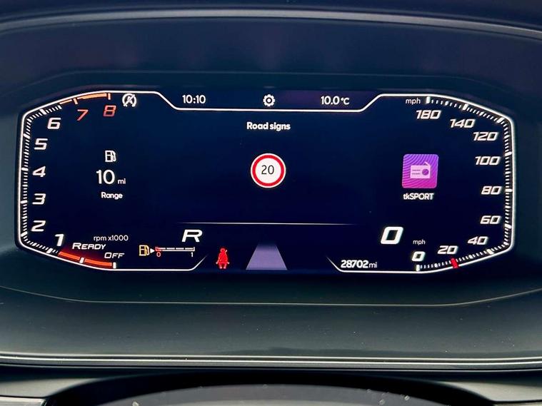 Digital cockpit and configurable dashboard, Driver alert system, Driving profile selection, Forward collision warning with automatic braking, Lane assist, Navigation system with 12'' Touchscreen Display, Park assist (inc front/rear parking sensors), PAS, Predictive adaptive cruise control with speed limiter, Rear view camera, RPM, trip computer, outside temp gauge, instrument light brightness, low fuel warning light, lights on reminder, gearshift indicator, Service interval indicator, Start/stop system with regenerative braking, Voice control system, Wireless apple carplay, Wireless phone charger, Electronic locking differential and dynamic traction support, Standard suspension, 2 front and 2 rear USB type C sockets, Auxiliary input socket, DAB radio, Auto dimming rear view mirror, Body colour door handles, Body coloured bumpers, Dark grey wing mirror, Daytime running light with automatic headlight control and coming home feature, Dynamic headlight range control, Electric front/rear windows, Electrically adjustable heated and folding door mirrors with memory function, Front fog lamps with cornering function, Gloss black roof rails and window surrounds, LED Headlights, LED Taillights with dynamic indicator, Rain sensing wipers, Rear diffuser with black simulated exhaust pipes, Rear side wing doors, Rear wash/wipe, Third brake light, Tinted rear windows, Welcome lights, 12v power supply in centre console, 12V socket, 12v socket in loadspace, 2 front and 2 rear reading lights, 230V socket, 3 seat bench in 2nd row, 60/40 split rear bench seat with armrest and mechanical seat release, Black headlining, Dust/pollen filter, Front and rear head restraints, Front centre armrest, Height/reach adjust steering wheel, Illuminated interior front door sills, Illuminated sunvisor with mirror, Isofix, Leather multi function heated steering wheel with gear shift paddles, Luggage tie-down hooks, Single front passenger seat, Three zone climate control with control panel in rear, Variable luggage/load compartment floor, Wraparound lighting, Genuine Nappa leather Pack - Cupra, 3 point seatbelts on all rear seats, ABS, Brake control system - ESC and brake booster, Child proof door locks, Driver and front passenger airbags with front passenger airbag de-activation, Electronic parking brake, Front and rear disc brakes, Front side curtain airbags, Hill hold control, Public e-call, Seat belt reminder for front and rear seats, Tyre pressure monitoring system, Anti theft alarm system, Keyless entry and start system (KESSY), Locking wheel bolts, Copper and aluminium interior detailing, 19" 'Exclusive' machined sport matte black and silver alloy wheels,