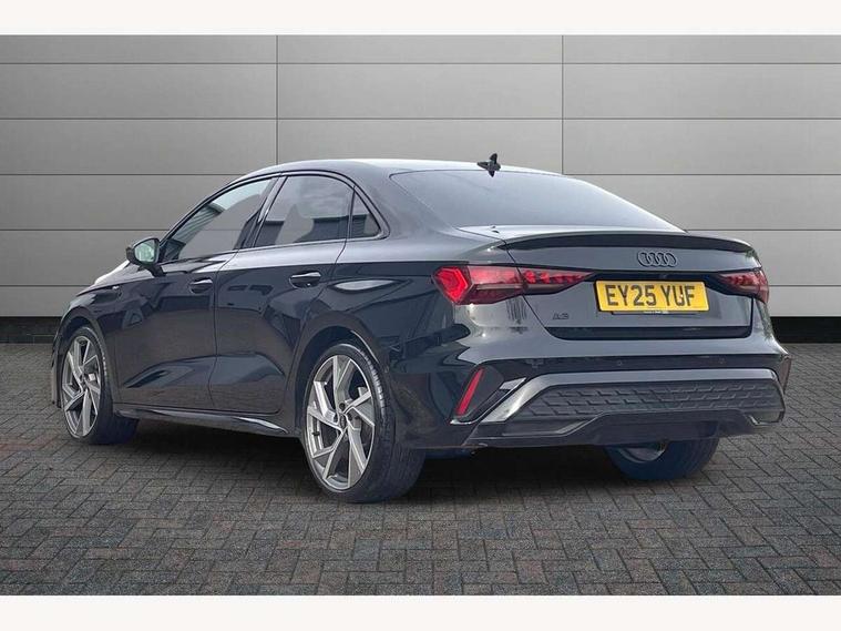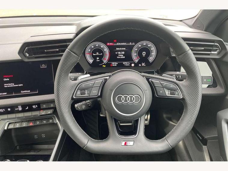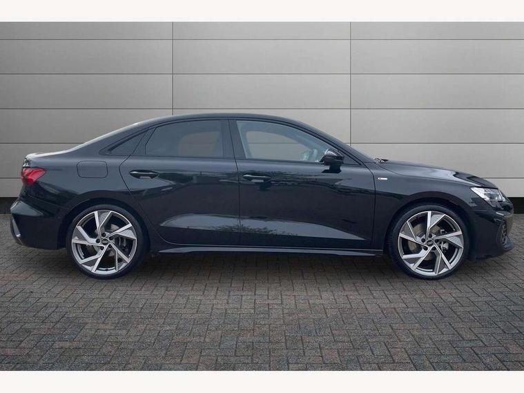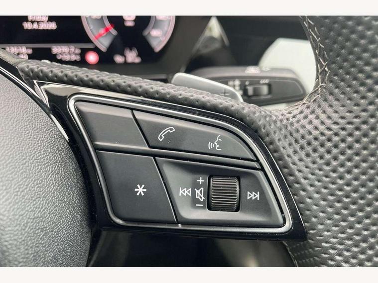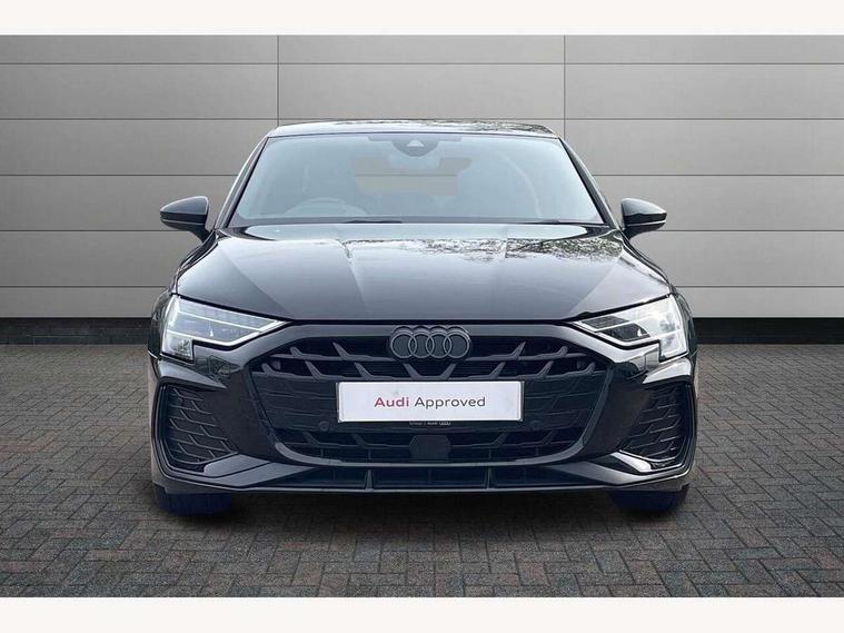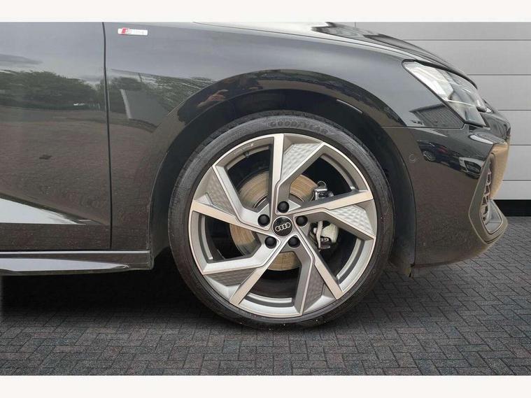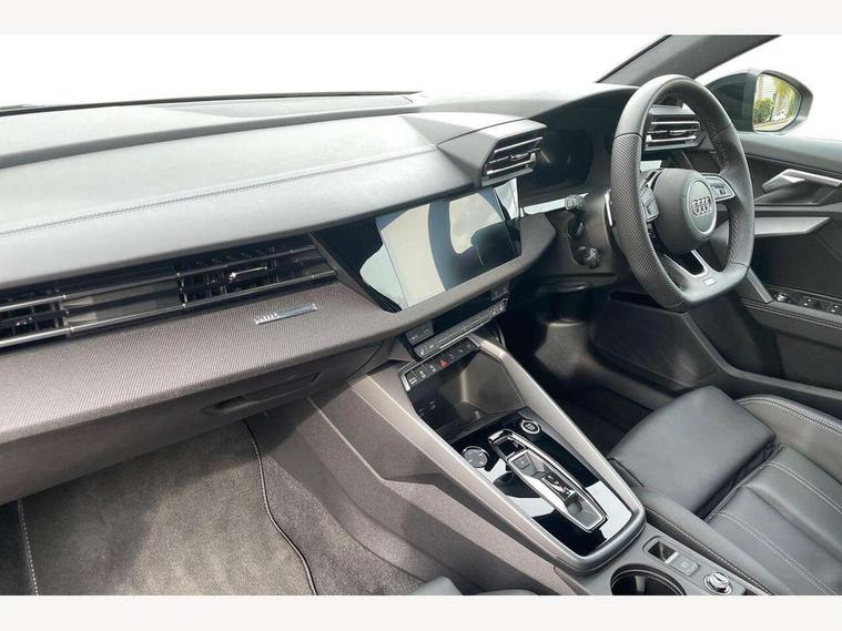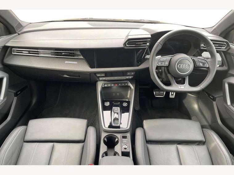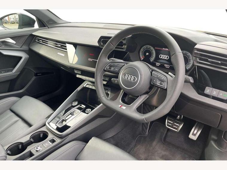 Adjustable speed limiter, Audi drive select, Audi smartphone interface with app store includes wireless Apple carplay, Android auto and Amazon alexa integration, Audi virtual cockpit plus - 12.3" full HD resolution dynamic digital instrument cluster, Automatic start/stop system with recuperation, Bluetooth interface, Camera based traffic sign recognition, Collision avoidance assistant, Cruise control, Distraction and Fatigue warning, e-Call (emergency call), Electromechanical power speed sensitive steering, Lane departure warning system, MMI Navigation Plus with high resolution 10.1" colour touch screen display, Park Assist with parking system Plus, Service indicator, Trip computer, Voice control system with natural language interaction, Sports suspension, Audi Phonebox light with wireless charging, Audi sound system - 10 loudspeakers including centre loudspeaker and subwoofer, DAB Digital radio, USB ports with charging function in the rear, Acoustic glass windscreen, Anthracite grey Audi rings (front and rear), Audi beam uses LEDs to project the Audi logo onto the ground as you exit your A3, Auto dimming frameless rear view mirror, Black accents front and rear bumpers, Black accents in the area of the Audi single frame grille, Black accents window trims strips, Electrically adjustable/heated/folding/auto dimming door mirrors with integrated LED indications + kerb view function for passenger side, Exterior model badging, Front electric windows, Heat insulating glass windscreen, Illuminated door sills with aluminium inserts at the front with S logo, LED 3rd brake light, LED daytime running lights, LED headlights with LED rear lights and dynamic rear indicators, Light and rain sensors, Privacy glass - dark tinted rear window, rear door and side windows, Rear boot, Rear electric windows, Rear side wing doors, 12V socket and storage compartment in front centre console, 3 seat bench in 2nd row, 3 spoke flat bottomed leather multifunction sport steering wheel with gear shift paddles, 3-zone deluxe automatic air conditioning, 4 way electrically adjustable lumbar support for driver and front passenger, 40/20/40 split folding rear seat bench, Black cloth headlining, Front and rear centre armrest in artificial leather, Front and rear centre armrest in artificial leather with contrasting stitching on armrests and instrument panel, Front and rear headrests, Front/rear floor mats, Heated front seats, Height and reach adjustable steering wheel, Manual boot compartment lid, Manually adjustable front seats, Rear cup holders, S badging on the steering wheel, Seat side bolsters, Single front passenger seat, Stainless steel pedals and front footrest in black, Twin leather upholstery with front sports seats S embossed logo, Aluminium interior elements pack - A3, Multi-coloured LED interior lighting package - A3 Black Edition, 3x3 point rear seat belts, Driver and front passenger airbag with passenger airbag deactivation, Electronic Stabilisation Control (ESC) including ABS, ASR and EDL, First aid kit with warning triangle and 2 safety vests, Front side airbags with head airbags and interaction airbag, Hill hold assist, Pre-sense front with pedestrian and cyclist detection, Seatbelt monitoring, Tyre pressure loss indicator, Anti theft alarm, Anti-theft wheel bolts, Electronically operated child locks, Immobiliser, Remote central locking with safelock, Inlays in black Impressum woven textile,