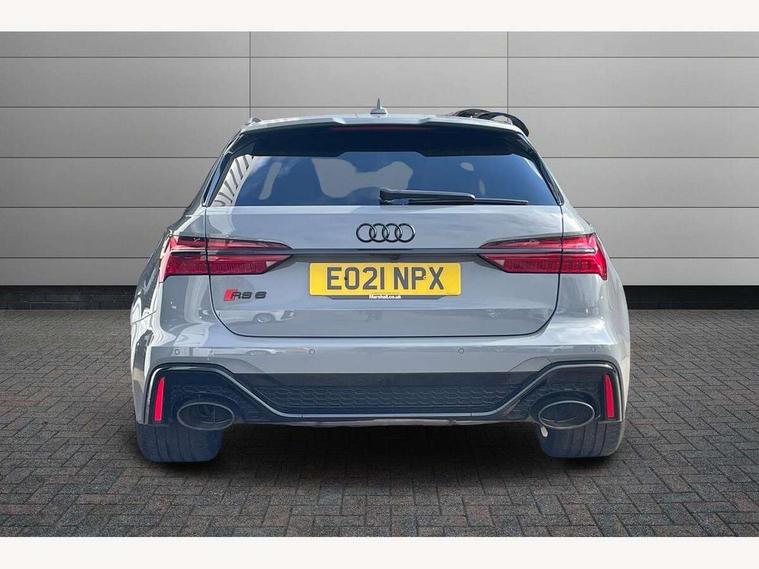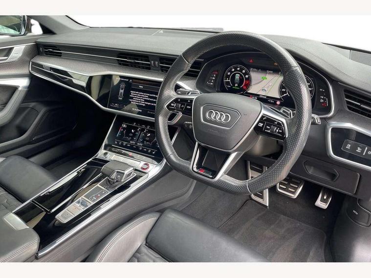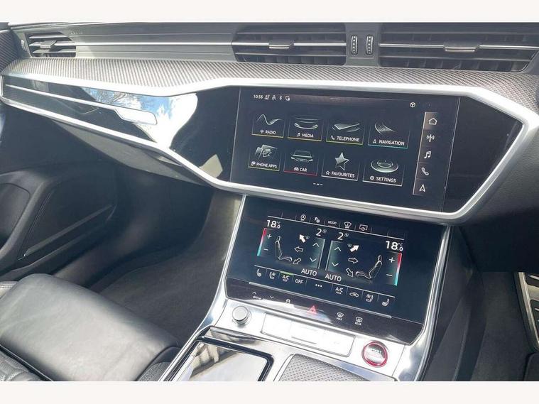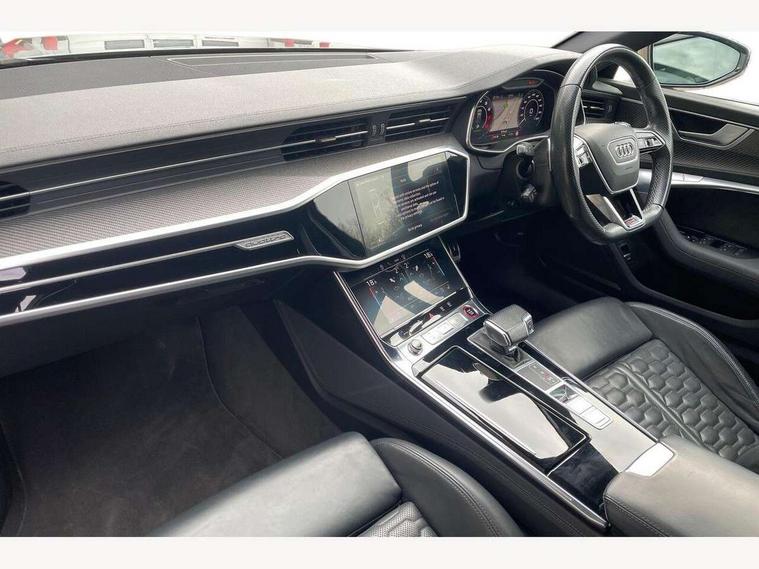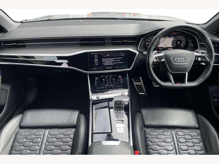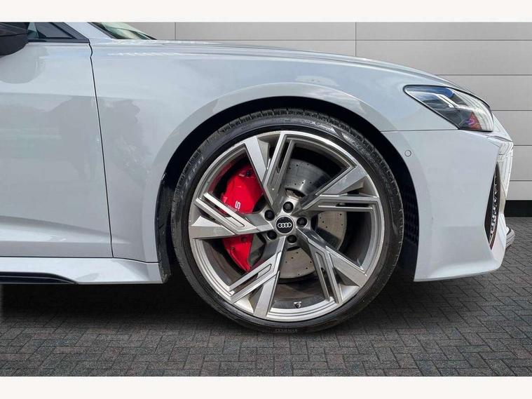 360 degree parking camera, Audi connect safety and service (e-call), Audi drive select, Audi phone box with wireless charging, Audi smartphone interface, Audi Virtual Cockpit with RS specific design and 12.3" display, Automatic start/stop system, Bluetooth interface, Dynamic all wheel steering, Head up Display, Lane departure warning system, MMI navigation with MMI touch + twin touch screens 10.1" and 8.6" with haptic and acoustic feedback, Operating buttons in black, glass look with haptic feedback including extended aluminium look, Power door closure, Power latching doors, Power operated tailgate, Service interval indicator, Voice control system, 73 litre fuel tank, Increased top speed to 174mph, Quattro sports differential, RS Sports suspension plus with dynamic ride control, Audi music interface, Audi music interface at rear, Bang & Olufsen 3D Premium Sound System, DAB Digital radio, Adaptive windscreen wipers with integrated washer jets, Black mirror caps, Body colour rear roof spoiler, Electric front/rear windows, Electric Panoramic opening glass sunroof, Electrically folding auto dimming/adjustable/heated door mirrors with LED side indicators and kerb view function for passenger side, Frameless auto dimming interior rear view mirror, HD Matrix LED headlights with Audi laser light with dynamic light design and dynamic turn signal, Headlight washers, Heat insulating glass in side and rear windows, Illuminated door sill trims with RS lettering, LED rear combination lamps with dynamic light design and dynamic turn signal, Privacy glass with rear/side windows and acoustic glazing side windows, Radiator grille in honeycomb structure, large front air inlets and rear diffuser in gloss black, Rain and light sensors, Rear sports exhaust system with gloss black oval tailpipe, Rear wiper, RS front bumper with air inlets on both side, Towbar preparation, Wheel arch extensions, 3 spoke RS flat bottomed leather multifunction steering wheel with shift paddles, heated funtion, contrast stitching, RS mode button and RS emblem, 4 way electric lumbar support for driver and front passenger, 4 zone deluxe automatic climate control, Aluminiium gear shift paddles, Audi Sport logo projection (Audi Beam) in front and rear, Black cloth headlining, Electric steering wheel adjustment, Electrically adjustable front seats with driver memory, Front and rear headrests, Front centre armrest, Front seat ventilation, Front/rear floor mats, Heated front and rear seats, ISOFIX child seat mounting and Top Tether with front passenger airbag deactivation, RS Front sports seats, Stainless steel pedals and foot rest, Valcona leather upholstery with perforated honeycomb and RS lettering, Air quality pack - RS6, City assist pack - RS6, Extended LED interior multi coloured lighting pack - RS6, Gloss black styling pack - RS6, Parking assistance plus pack - RS6, Storage pack - RS6, Tour pack - RS6, 2 x 3-point rear seat belts, Airbags - Front side, front and rear including head, Audi pre-sense front, Direct tyre pressure monitoring system, EBD - Electronic brakeforce distribution, Electromechanical parking brake, Electronic Stability Control (ESC) including ABS, ASR and EDL, Extended pedestrian protection measures, Warning triangle and first aid kit, Advanced key, Anti theft alarm with tow away protection, Anti-theft wheel bolts and wheel loosening detection, Immobiliser, Keyless Go, Remote central locking, 22" Titanium matt gloss turned finish alloy wheels, Tyre repair kit,