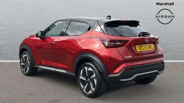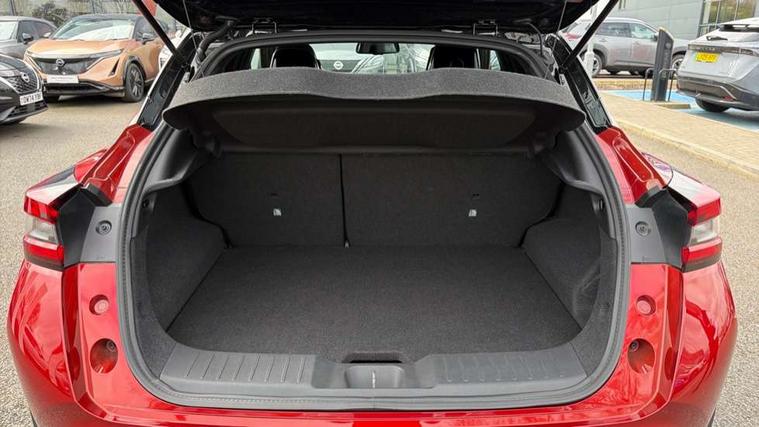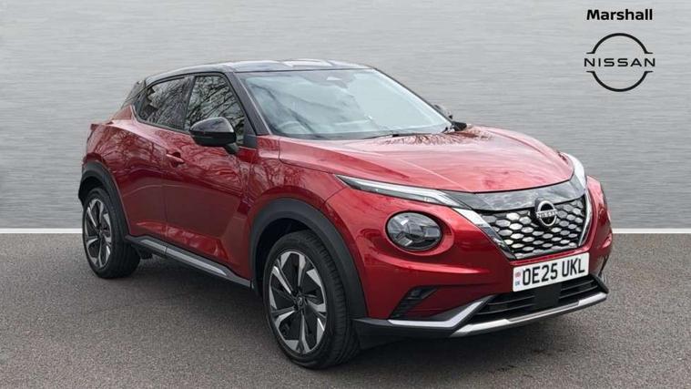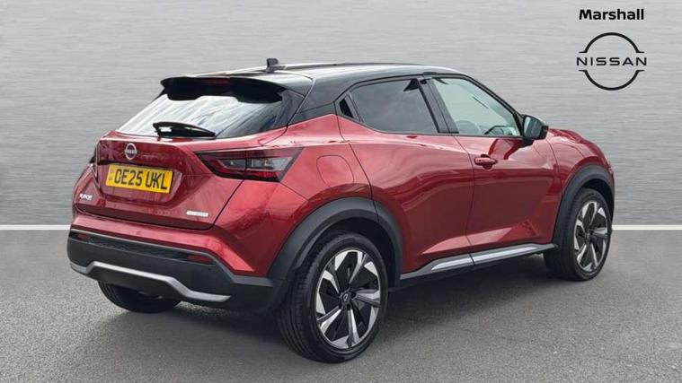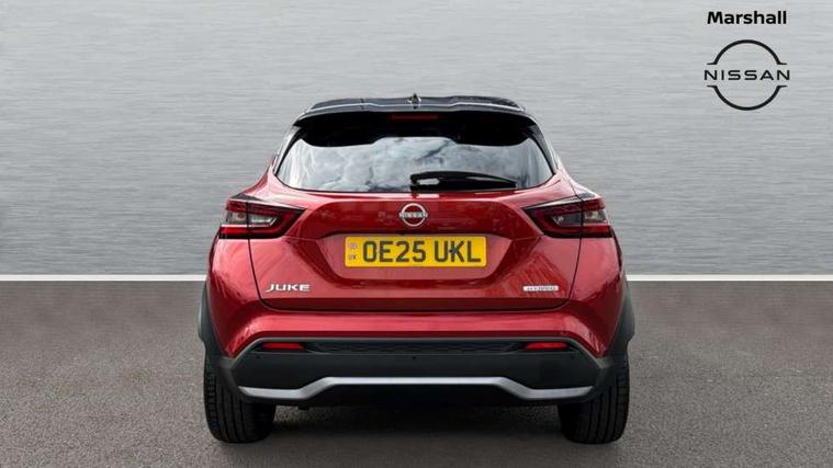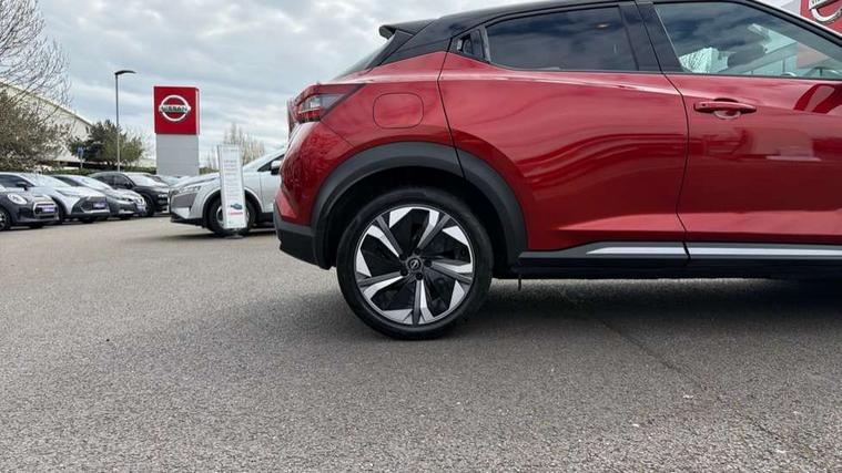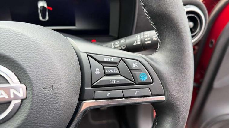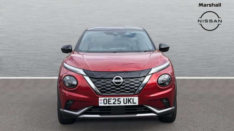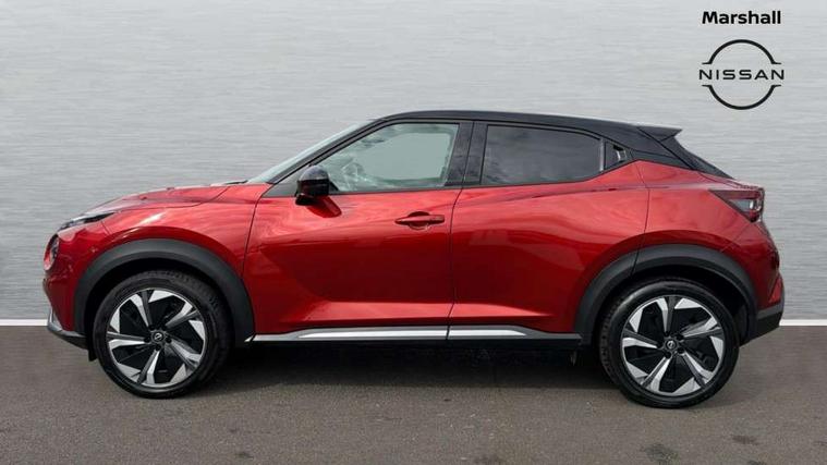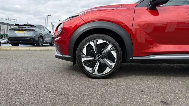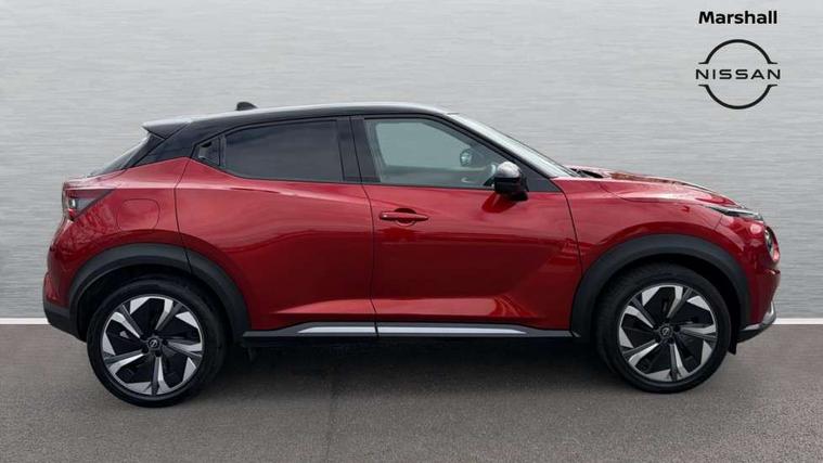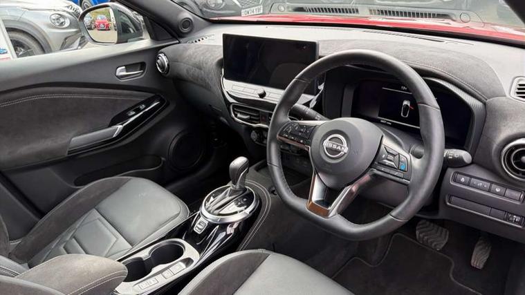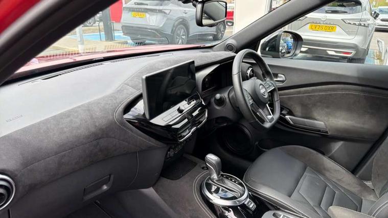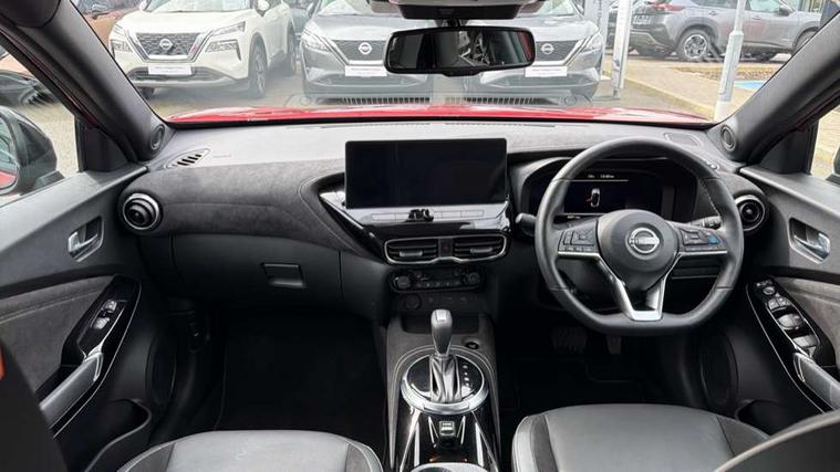 12.3" full colour TFT screen combimeter, Drive modes select (Eco, normal and sport), e-Pedal step, Emergency and breakdown call, EV mode switch, Front parking sensor, Intelligent driver alert system, Intelligent lane intervention, Lane departure warning system, Nissan connect 12.3" touch screen entertainment system, Nissan connect nav with TomTom traffic, Nissan connect services, Outside temperature sensor, Power Steering, Rear parking sensor, Stop/start button, Traffic sign recognition, Trip computer, Voice recognition, WiFi connectivity, Wireless Apple CarPlay and Google Android auto, Wireless Smartphone charger, 10 Bose speakers 6 speakers and 2 headrest speakers for driver/passenger seats, 2 X Rear console USB port, Bluetooth system, USB, Aux-in and 12V socket, Bose personal sound stage control, DAB Digital radio, Auto dimming frameless rear view mirror, Automatic hazard signal with emergency stop signal, Body colour door handles, Electrically adjustable door mirrors with integrated indicators, Follow me home headlights, Front and rear electric window with one touch driver window, Heated and auto folding door mirrors, High beam assist, LED 3rd brake light, LED daytime running lights, LED front fog lights, LED headlamps, LED rear fog lamp, LED rear lamps, One touch passenger window, Rain sensor windscreen wipers, Rear privacy glass, Rear side wing doors, Rear wiper, Roof spoiler, Shark fin roof antenna in solid Black, Three blink turn signal, 3 height adjustable rear headrests, 3 seat bench in 2nd row, 60/40 split folding rear seat, Automatic climate control, Card holder on driver sunvisor, Door ambient lighting, Driver seat back pocket, Driver side rear coat hanger, Driver/passenger sunvisors and vanity mirrors, Front and rear cabin lights, Front armrest, Front door pockets with bottle holders, Front head restraints, Front/rear passenger grab handles, Gear console ambient circle lighting, Height adjustable driver's seat, Internal chrome door handles, Leather gearshift knob, Luggage board, Luggage space lighting, Monoform sporty seats, Multifunction steering wheel, Passenger seat back pocket, Rear door bottle holders, Single front passenger seat, Smooth synthetic leather steering wheel, Synthetic leather kneepad, Telescopic steering wheel adjustment, Two cupholders in front centre console, Two rear isofix child seat anchorage points with top tether, Welcome light and console tray ambient lighting, Heat pack with height adjustable passenger seats - Juke, Interior personalisation pack - Juke, ProPilot pack - Juke Auto, Satin grey exterior personalisation pack - Juke, ABS with EBD and brake assist, Active ride control, Active Trace Control, Driver and passenger airbags, Driver and passenger side airbags, Electric handbrake with auto hold function, Electronic Stability Programme (ESP), Front and rear curtain airbags, Height adjustable seatbelts, Hill start assist, Intelligent emergency braking with pedestrian and cyclist recognition, Rear door child safety locks, Seatbelt reminder for driver/front passenger and rear seats, Three 3 point rear seatbelts, Traction control, Tyre pressure monitoring system, VDC Dynamic Vehicle Control, Alarm, Immobiliser, Intelligent key and start push button with walk away lock and approach unlock functions, Remote central locking, 19" Aero alloy wheels, Tyre puncture repair kit,