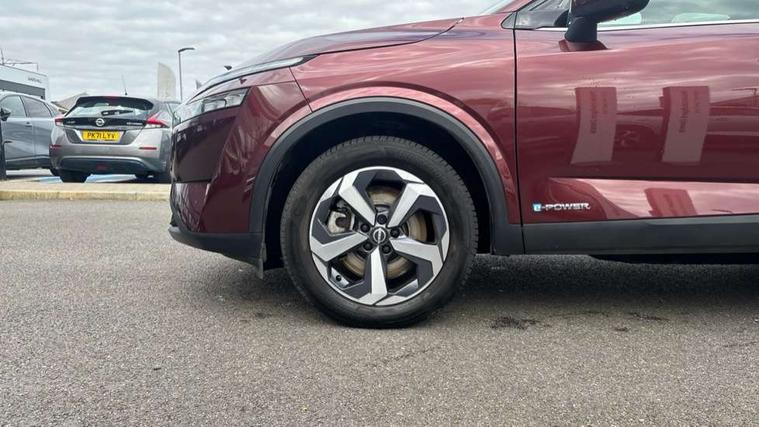 Android auto/Apple CarPlay (Wired), Blind spot warning, Drive modes (sport, normal, eco), Electric speed sensitive power steering, Emergency and breakdown call, Front and rear parking sensors, Full Digital 12.3" TFT Digital Combimeter, Google maps services - search, weather, 3D maps and Google street view, Idle stop/start system, Intelligent around view monitor, Intelligent Cruise control (ICC), Intelligent driver alert system, Intelligent forward collision warning, Intelligent lane intervention, Lane departure prevention, Lane departure warning system, Maximum speed limiter, Moving object detection, Nissan connect 12.3 inch touchscreen infotainment system, Nissan connect navigation, Push button starter, Rear cross traffic alert, Rear view camera, Remote control services - door locks, lights, horn and car locator, Telematics - notifications and connectivity services, TomTom live traffic services, Traffic sign recognition with legal speed adjustment, Trip computer, Virtual personal assistant and firmware over the air capability, Wireless apple carplay, 6 speakers, AM/FM audio system with DAB, Bluetooth audio streaming, Front USB connections (Type-A and Type-C), Rear USB charging only ports (Type-A and Type-C), Auto dimming rear view mirror, Auto rear wiper when reversing, Automatic hazard signal with emergency stop signal, Body colour mirror caps, Body coloured door handles, Bodyside mouldings, Chrome side window finisher, Door handle with button, e-POWER badging, Electric auto folding door mirrors, Electrically adjustable and heated door mirrors with LED turn indicator, Follow me home headlights, High beam assist, Intelligent auto headlights, LED daytime running lights, LED Headlights, LED rear lights, One touch front and rear electric windows with remote opening and closing, Partially body coloured bumpers, Privacy glass, Rear bumper with graphite insert, Rear reversing light (bulb lighting), Rear roof spoiler, Rear side wing doors, Rear styling plate, Shark fin antenna, Splash free rain sensing wipers, Super UV and infrared cut glass, Three blink turn signal, 12v power socket in dashboard and luggage, 2x Rear coat hooks, 3 bench rear seats in 2nd row, 3 rear headrests, 4 folding assist grip, 6-way manually adjustable driver's seat, 60/40 split folding rear seat bench, Ambient lighting around centre console, Centre console storage tray, Chrome interior door handles, Cloth monoform upholstery, Driver and front passenger sunvisors with illuminated vanity mirrors, Driver seat back pocket, Dual zone automatic climate control with pollen filter, e-POWER shifter, Front and rear door storage, Front centre console and armrest, Front cupholders x 2, Front door with bottle holders, Glovebox with light, Hard trunk cover, Height adjustable driver's seat, Height adjustable front headrests, Height adjustable passenger seat, Leather steering wheel, Luggage board system, Luggage space lighting, Manually adjustable passenger (slide recline + lifter), Multifunction steering wheel, Passenger seat back pocket, Rear armrest with 2 cupholders, Rear door bottle holders, Single front passenger seat, Soft PVC kneepad, Steering wheel switches, Sunglasses holder, Tilt/telescopic adjustable steering wheel, Two rear isofix child seat anchorage points with top tether, Welcome light and console tray ambient lighting, 3x3 point rear seatbelt pretensioners + load limiters, ABS with EBD and brake assist, Active brake limited slip, Auto hold function, Child locks on rear doors, Curtain and front side, far side airbags, Driver and passenger airbags, Driver, passenger and 2nd row rear seat belt reminder, Electronic parking brake, Front seatbelt pretensioners + load limiters, Height adjustable front seatbelts, Hill start assist, Intelligent blind spot intervention, Intelligent front emergency braking with pedestrian, cyclist recognition and junction assist, Intelligent rear automatic braking, Tyre pressure monitoring system, Vehicle dynamic control, Capless fuel filler, Engine immobiliser, Intelligent Key, Remote central door locking with deadlocking, Thatcham Cat.1 alarm, Interior instrumental panel B finisher, 18" Diamond cut alloy wheels, Tyre puncture repair kit,