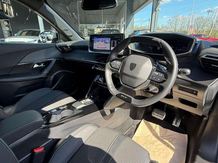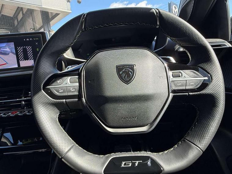 Bluetooth telephone facility, Driver attention warning, E-call, Exterior temperature indicator with ice warning, Front and rear parking sensors, Multi function trip computer, PEUGEOT i-Cockpit with 10" high definition capacitive touchscreen, PEUGEOT i-Cockpit with compact steering wheel, PEUGEOT i-Cockpit with configurable 3D headup instrument panel, PEUGEOT SOS and assistance, Speed limit recognition and recommendation, Wireless mirror screen with mirror link, apple carplay and android auto, Petrol Particulate Filter, 1x USB-C socket in rear and 1x USB-A socket in rear, 2 USB-C ports in the front, 6 speakers radio with mp3 compatible, DAB Radio (Digital Audio Broadcasting), Voice recognition for radio, navigation and telephony features, 2 X Rear number plate lights, Aluminium door sill scuff plates with peugeot lettering, Automatic hazard light activation upon heavy brake application, Black diamond roof, Black front wing trim with gloss black detail and GT badging, Body coloured exterior door handles, Dark tinted rear side and tailgate windows, Diamond black mirror shells, Diamond black rear roof spoiler, Electric, heated, and power folding door mirrors, Frameless electrochrome interior rear view mirror, Front bumper - Meteor grey lower trim, Full LED headlights with smartbeam assist with auto height adjustment, Gloss black finish on B pillar, Gloss black rear cluster connecting strip, Gloss black roof bars, Gloss black window surround, GT model designation badging on tailgate, Headlights left on audible warning, LED daytime running lights with distinctive 3 claw signature, LED side indicator lights integrated into door mirrors, LED third brake light, Model designation badges front and rear, One touch electric front/rear windows with pinch protection, Radiator grille - body coloured vertical chequered grille, Radiator grille - gloss black top edge trim, Rear full LED 3D peugeot signature claw effect lights with daylight function, Rear reversing lights, Rear side wing doors, Rear windscreen wiper triggered automatically in reverse gear, Reinforcement of the front bumper, Tailgate with heated rear windscreen and wiper blade, Twin chromed exhaust pipes, Wheel arch extensions, 1/3 to 2/3 split folding rear seats, 12V socket, 3 seat bench in 2nd row, 8 Colour personalisable ambient lighting, Automatic air conditioning with pollen and active carbon filter, Central front armrest with storage compartment, Driver and front passenger sport seats, Electric power steering with reach and rake adjustable steering column, Front and rear carpet mats in black, Front LED interior light with 2 reading spotlights and rear interior light with timer, Front passenger seat manual adjustment - height, longitudinal and back rest angle, High centre console, ISOFIX child seat mounting points on passenger seat, Mistral full-grain perforated leather steering wheel with Lime Green stitch detail and satin chrome 'GT' emblem, Multifunction steering wheel, Piano keys: Gloss black and chrome toggle switches to access main functions of the vehicle and touchscreen functions, Roof lining - Mistral black, Seatbelt unfastened on the move audible and visual alert for front and rear seats, Single front passenger seat, Two position modular boot floor, Visibility pack - 2008, 2x 2nd row ISOFIX child seat mountings, ABS (Anti-lock Braking System) with EBD (Electronic Brakeforce Distribution) and EBA (Emergency Braking Assistance), Active safety brake with night function/cyclists/pedestrians, Adaptive driver and front passenger airbags with passenger airbag deactivation function, Advanced emergency braking system (AEB) with enhanced camera with the high beam and radar, Child locking functionality on rear doors, Driver/front passenger side airbags, Electric parking brake, ESP (Electronic Stability Program) + Hill Start Assist, Front and rear curtain airbags, Front and rear disc brakes, Front and rear three-point retractable seatbelts, with force limiters, Front optimised safety headrests and rear retractable headrests (x3), height adjustable, Tyre pressure sensor, Automatic door locking when moving off, Deadlocks, Electronic code immobiliser, Thatcham category 1 alarm, Carbon effect Dashboard, front and rear door panel finish,