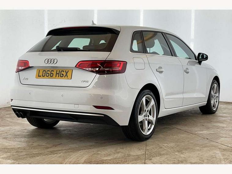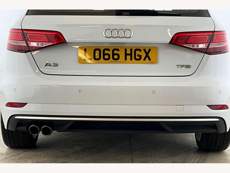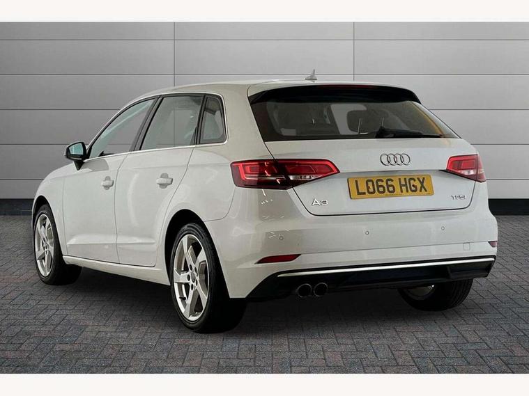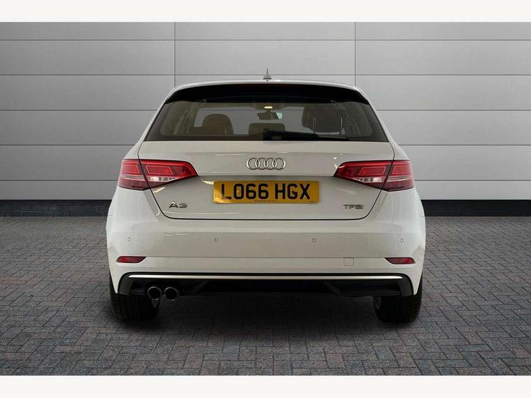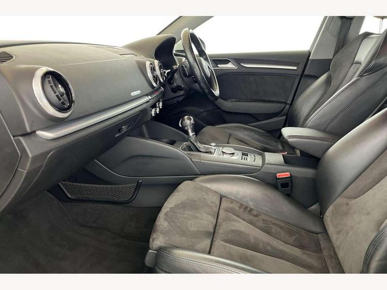 Audi connect, Audi drive select, Audi smartphone interface, Colour driver's information system display, Mobile telephone preparation - bluetooth interface, Service interval indicator, Speed limit display, Voice control system, 2 USB ports, Audi music interface, Auxiliary input socket, DAB Digital radio, Aluminium window trim, Body colour bumpers, Body colour door mirrors with integral indicators, Body colour roof spoiler, Chrome exhaust tailpipes, Electric front windows, Electric operated/heated door mirrors, Electric rear windows, Heated windscreen washer jets, LED daytime running lights, Matt black radiator grille, Rear wiper, Sport specific side air inlet grille and diffuser insert, 3 adjustable rear headrests, 4 lashing points to secure luggage, Adjustable front armrest, Aluminium door sill trims, Dual zone electronic climate control, Front and rear interior lights with delay, Front passenger seat isofix location point, Front sports seats, Front/rear floor mats, Height/depth adjustable steering column, Illuminated glovebox, ISOFIX child seat preparation+airbag deactivation, Jack and tool kit, Steering wheel gearshift paddles, Storage compartment in centre console, Storage compartment under front seats, Storage compartments in doors, Light and rain sensor pack - A3 Hatchback/Sportback, 3 point seatbelts on all seats, ABS/EBD, Active bonnet, Active front headrests, ASR, Curtain airbags, Driver and passenger side airbags, Driver/Front Passenger airbags, Drivers knee airbag, EDL, Electromechanical parking brake, ESC - Electronic Stability Control + traction control, Front passenger airbag deactivation, Manual rear child locks, Multi-Collision braking, Seatbelt warning, Tyre pressure monitor, Warning triangle and first aid kit, Anti theft alarm, Anti-theft wheel bolts, Remote control central locking, Thatcham category 1 alarm + immobiliser, Aluminium air vent surrounds, Aluminium trim elements, Space saver spare wheel,