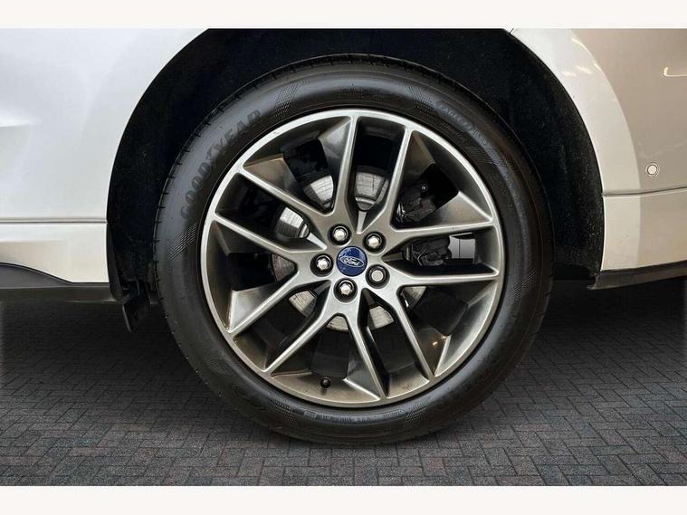 Adaptive steering, Bluetooth connectivity with voice control, Easy fuel capless refuelling system, Ford SYNC 3 with 8" colour touch screen, Front and rear parking sensors, Intelligent speed assist, Lane keep assist, PAS, Rear view camera, Service indicator, Sony DAB Audio and navigation system with 12 speakers, SYNC Emergency Assistance, TFT cluster screen, Traffic sign recognition, Trip computer, Sports suspension, Auxiliary input socket, USB/iPod connection, Acoustic laminated side glass, Auto dimming rear view mirror, Auto high beam, Automatic front windscreen wipers, Automatic headlights, Automatic low beam headlights, Body colour lower mouldings, Body styling kit, Chrome grille trim, Dark tinted rear privacy glass, Electric door mirrors + memory, Electric folding door mirrors with puddle lamps, Electric front windows, Front fog lights, LED rear lights, Power windows with global open/close, Quickclear heated windscreen, Rain sensor windscreen wipers, Rear spoiler, Rear wiper, 10 way driver/8 way passenger electrically power adjustable seats with driver memory, 220v power socket, Air conditioning + Dual Electronic Automatic Temperature Control, Alloy pedals, Ambient lighting, Centre console with armrest/storage box + cupholder, Folding rear seats, Front and rear velour floor mats, Heated front sports seats, Height/reach adjust steering wheel, Illuminated scuff plates, Isofix child seat attachment, Leather steering wheel and gear knob, Leather/Dinamica upholstery, LED reading lights, Lumbar support, Rear headrests, 3x3 point rear seatbelts, ABS, Active city stop, Curtain Airbag, Driver airbag, Electronic parking brake, ESP, Front passenger airbag, Rear airbags, Side airbags, Traction control, Tyre pressure monitoring system, Immobiliser, Keyless entry system with handsfree boot opening + electric power tailgate, Keyless start, Thatcham Cat.1 alarm, 20" Platinum Grey Alloy wheels, Mini steel spare wheel,