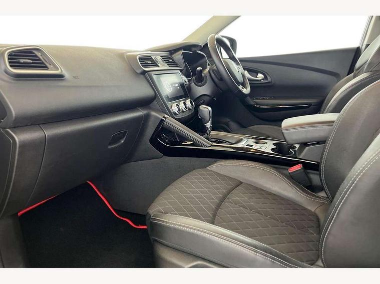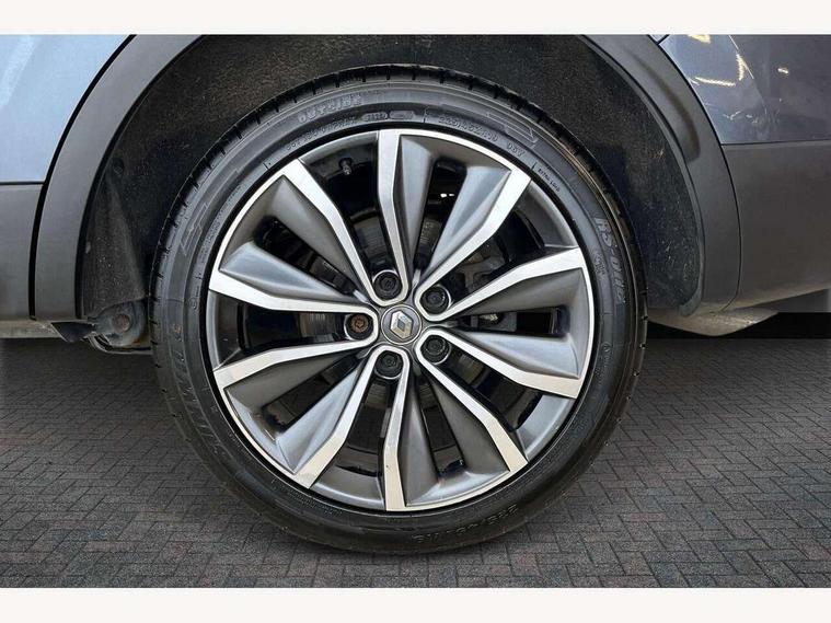 Cruise control + speed limiter, Digital speedometer with 7 TFT screen, Door/boot open warning light, Eco mode, Exterior temperature indicator, Front and rear parking sensors with rear parking camera, Gear change indicator, Lane departure warning system, Low fuel level warning light, Multi function trip computer, Oil level gauge, PAS, R-Link 2 Multimedia system + 7" touchscreen, TomTom + West European Map, DAB/FM/AM radio, bluetooth + hands free, USB/AUX, voice control, Rev counter, Smartphone integration, Gasoline particulate filter, 4x35W speakers with 3D sound, Fingertip controls for audio system, Two rear USB sockets, Automatic headlights, Automatic high/low beam, Automatic windscreen wipers with variable speed adjustment, Body colour door handles, Body coloured bumpers, Body coloured door mirrors, Bodyside mouldings with chrome inserts, Chrome roof rails, Chrome window surround, Day/night rear view mirror, Electric adjustable/heated/folding door mirrors, Extra tinted glass in rear windows and tailgate, Front and rear electric windows, Front and rear towing rings, Front fog lamps with cornering function, Halogen headlights, Heated rear windscreen, Integrated C shape indicators with side repeaters, Integrated fuel filler cap, LED daytime running lights, LED rear fog light, Rear wiper, Shark fin antenna, 12v socket in front, 3 height adjustable rear headrests, 3 seat rear bench, 60/40 split folding rear seat, Accessory power point, Adjustable dashboard illumination, Air recirculation system, Centre rear armrest with cup holder, Driver sunblind with illuminated mirror and ticket holder, Driver's seat with lumbar adjustment, Driver/passenger reading lights, Dual zone automatic climate control, Easy life quick folding rear seat, Faux leather wrapped steering wheel, Front courtesy lights, Front footwell illumination, Front/rear floor mats, Height adjustable driver's seat, Height adjustable front headrests, Height adjustable passenger seat, Height/reach adjust steering wheel, Illuminated boot, Illuminated centre console, ISOFIX child seat anchorage points attached on outer rear seats, Multi positional boot floor, Pollen filter, Rear courtesy lights, Rear passenger air vents, Sliding front centre armrest, Storage glovebox, Synthetic leather/cloth upholstery, ABS/EBD, Driver/passenger 2 stage auto adaptive airbags, Electronic parking brake, Emergency brake assist, ESP with ASR and UCL (understeer control logical), Front and rear curtain airbags, Front lateral airbags, Front seat belts warning, Height adjustable front seatbelts with double pretensioners, Hill start assist, Passenger airbag deactivation system, Rear seatbelt warning indicator, Side impact protection, Three point rear center seatbelt, Traction control, Tyre pressure monitor, Anti-drill door locks/ignition barrel, Deadlocks, Insurance approved Cat 1 alarm system, Insurance Approved Immobiliser, Key card hands free with walk away lock function, RAID (Renault Anti-Intruder Device) with automatic door locking, Remote central locking, 19'' Zeus diamond cut alloy wheels,