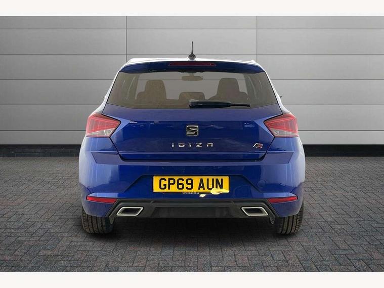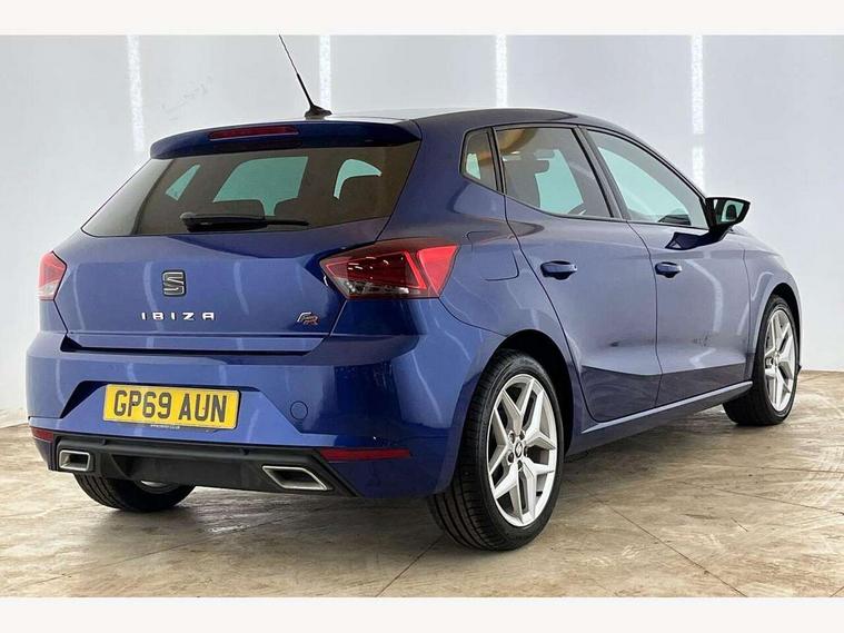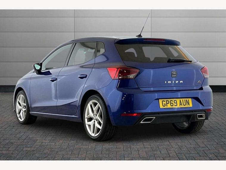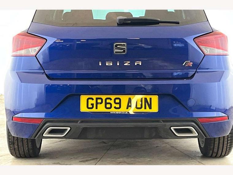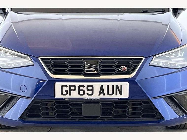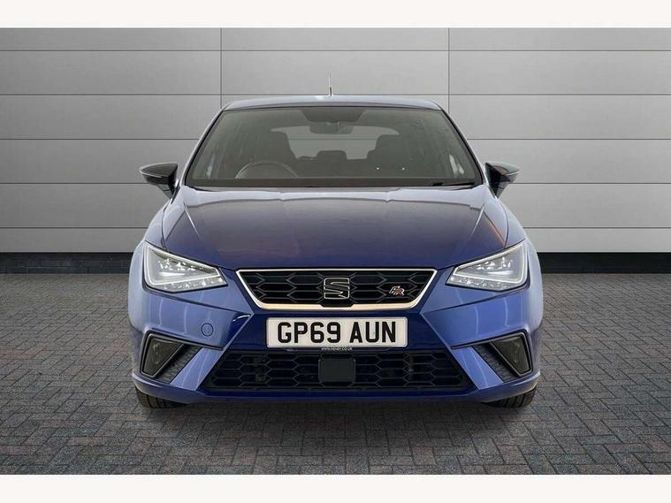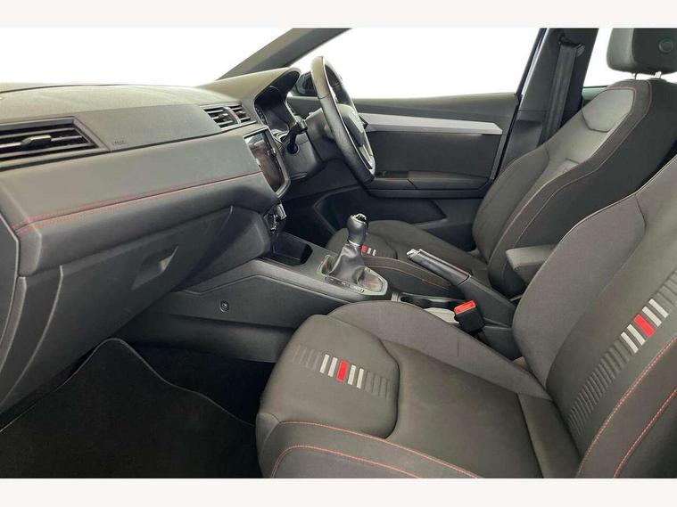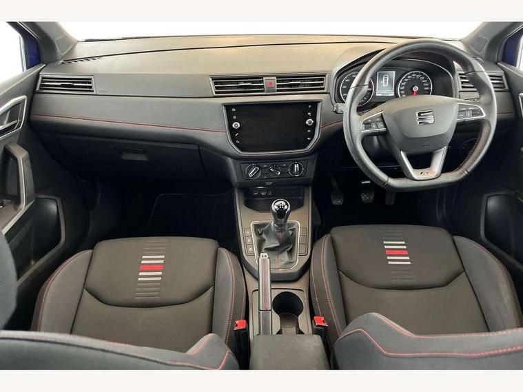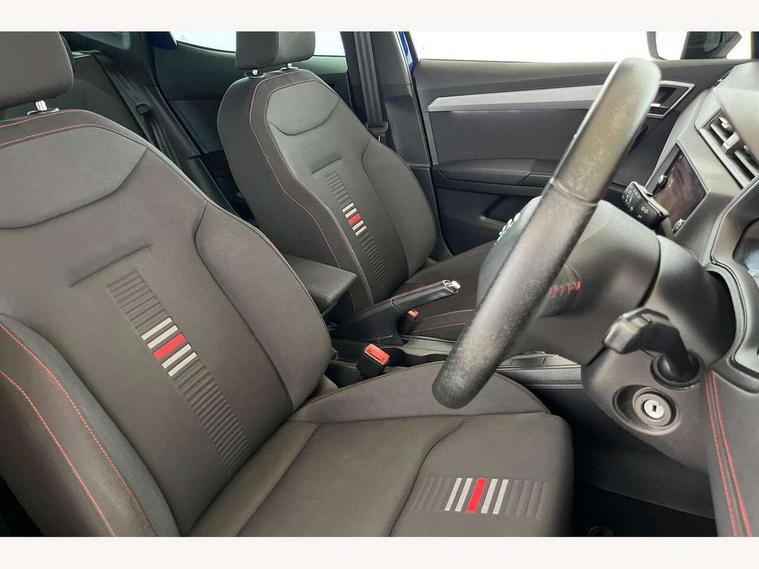 'Lights On' Reminder warning buzzer, Bluetooth Handsfree Phone Connection, Cruise control, Digital clock, Full Link Smartphone Integration with Mirror Link, Apple Car Play, Google Android Auto, Low fuel warning light, Outside temperature gauge, Power Steering, Satellite navigation system with 3D mapping, 8" touch screen, voice control and additional USB port, SEAT Drive profile, SEAT logo boot release, Trip computer, Sports suspension, 6 speakers, Auxiliary input socket, CD player, Digital Audio Broadcast (DAB) Tuner, Radio/MP3 player, SD card slot, SEAT USB media cable, Steering wheel mounted controls, USB port, Anti theft roof antenna, Auto dimming rear view mirror, Automatic headlights, Automatic rain sensing wipers, Body colour bumpers, Body colour door handles, Brilliant black door mirrors, Chrome front grille frame, Chrome grille, Coming/leaving home lighting function, Cornering front fog lights, Dark tinted rear windows, Electric folding door mirrors, Electric front windows, Electric headlight adjustment, Electrically adjustable and heated door mirrors, Exclusive FR rear bumper, Full LED headlights, LED daytime running lights, LED tail lights, Rear fog lights, Twin exhaust pipes, 3 rear headrests, 60/40 split folding rear seat, Air conditioning, Door and steering wheel ice metal decorative inserts, Driver's sunvisor with ticket holder/vanity mirror, Dust/pollen filter, Flat bottomed perforated leather steering wheel with red stitching and FR logo, Front courtesy lights, Front cupholders x 2, Front reading lights, Gear shift indicator, Glovebox, Height adjustable driver's seat, Height adjustable front/rear head restraints, Height adjustable passenger seat, Height/reach adjust steering wheel, Illuminated boot, Instrument lighting with brightness control, Leather dashboard, Leather handbrake, Multi-colour ambient interior lighting, Nora cloth upholstery, Passenger sunvisor, Rear top tether child seat ISOFIX attachment, Sports seats, Full LED headlight pack - Ibiza, 3 point seatbelts on all 3 rear seats, ABS, Active front headrests, Child locks on rear doors, Curtain airbags, Driver/Front Passenger airbags, ESP+EBA, Front assist (AEB), Front passenger airbag deactivation, Front side airbags, Hill hold control, Multi-Collision braking, Seatbelt warning, Tiredness recognition system, Tyre pressure monitoring system, Electronic engine immobiliser, Locking wheel bolts, Remote central locking + deadlocks, Volumetric alarm with back up horn, 17" Dynamic alloy wheels,