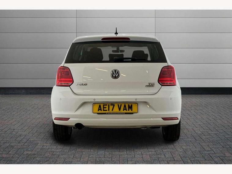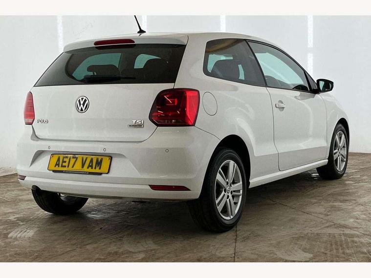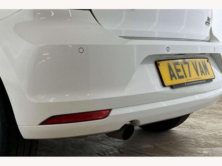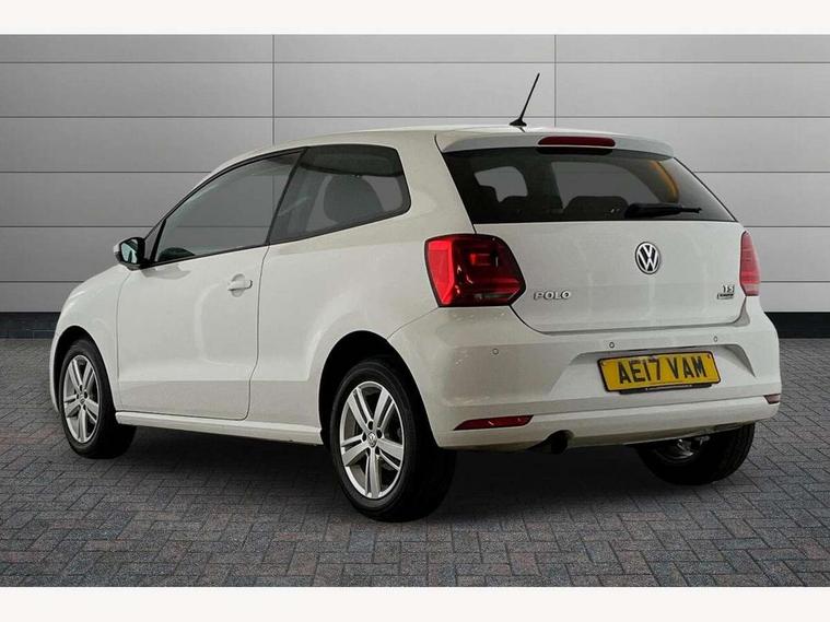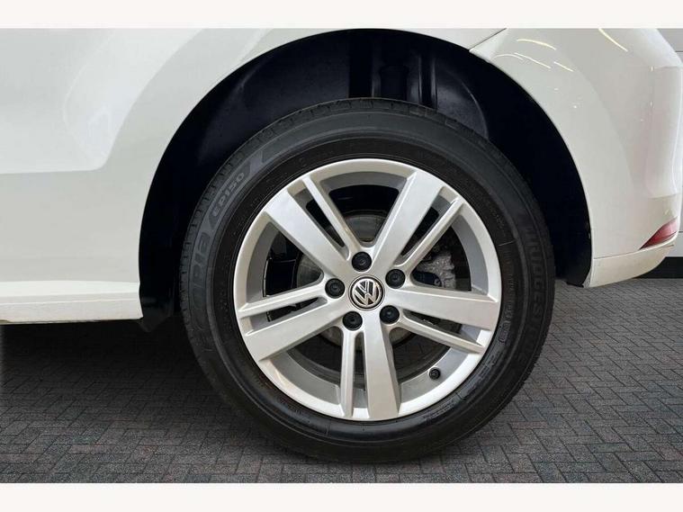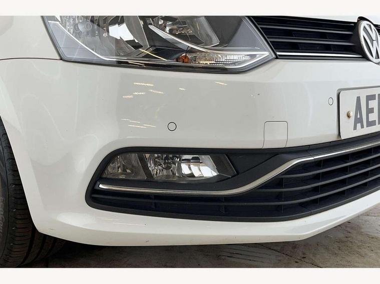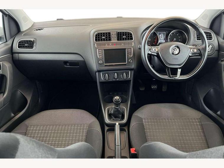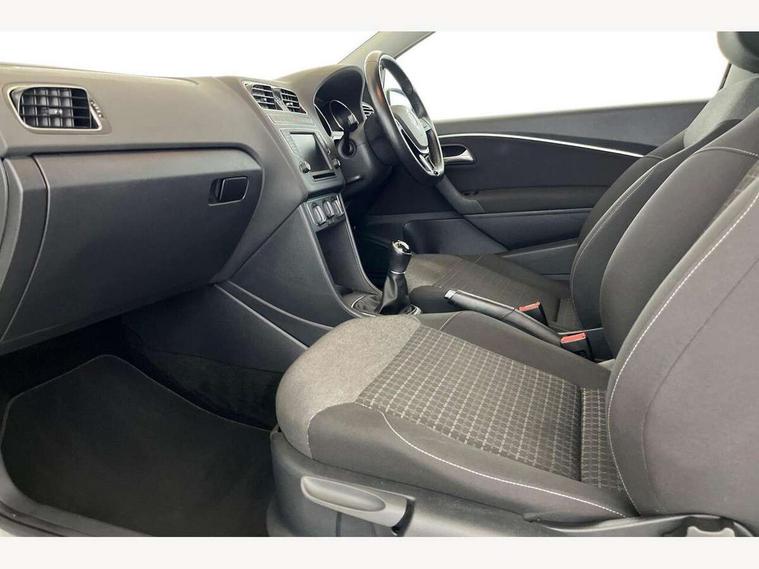 App-Connect, Bluetooth Telephone preparation, Driver alert system, Multi function display, Multifunction computer, PAS - speed related, Service interval indicator, Ultrasonic front and rear optical and audible parking sensors, Warning buzzer and light for front seatbelts unfastened, 6 speakers, Composition media system with radio, glovebox mounted CD, colour touch screen, SD card, aux-in, USB, multimedia interface, DAB Digital radio, Black grille with chrome surround, Body colour bumpers, Body colour door handles, Body colour door mirrors, Body coloured side sills, Chrome trimmed front air intake surrounds, Electric folding door mirrors, Electric front windows, Electric operated/heated door mirrors, Front fog lights with static cornering function, Front wash/wipe with interval delay, Heat insulated tinted glass 65% light absorbing from B pillar back, Heated rear window with auto timer, Rear windscreen washer and wiper with interval delay, 12V power socket in centre console, 2 bag hooks in luggage compartment, 2 cupholders, 3 rear head restraints, 3 spoke steering wheel, 4 grab handles, 60/40 split folding rear seat, Centre console storage, Chrome interior door handles, Driver and passenger sunvisors, Driver seat height adjust, Dust/pollen filter, Easy entry slide seats (access to rear seats), Front door pockets, Front passenger seat height adjust, Front seat backrest storage nets, Front/rear reading lights, Glovebox, Height/reach adjustable steering column, Illuminated vanity mirror, Interior light with delay, Isofix Preparation 2 Rear child seats, Luggage compartment cover, removable, Luggage compartment lighting, Matt chrome gear lever gaiter surround, Multifunction leather steering wheel with leather gear knob/handbrake grip, Storage compartment in front doors, Sunglasses holder, Variable boot floor, Light and sight pack - Polo, 3 point height adj front seatbelts + pretensioners, 3x3 point rear seatbelts, ABS, Automatic post collision braking, Driver/front passenger airbag, Driver/Passenger whiplash optimised head restraints, ESC - Electronic Stability Control + traction control, ESP with EDL + ASR, Hill hold control, Hydraulic Brake Assist (HBA), Tyre pressure monitoring system, Alarm with remote central locking and interior protection, Electronic engine immobiliser, Air vents in Matt chrome, Matt chrome interior trim, 15" steel spare wheel,