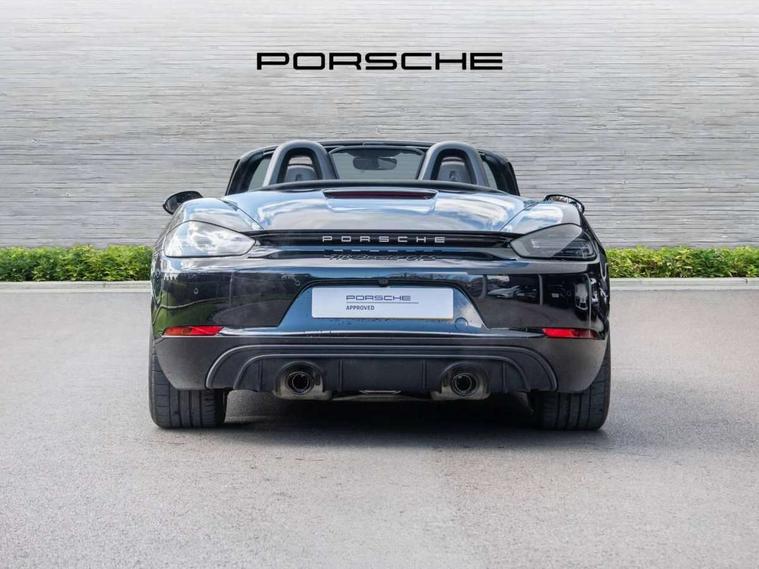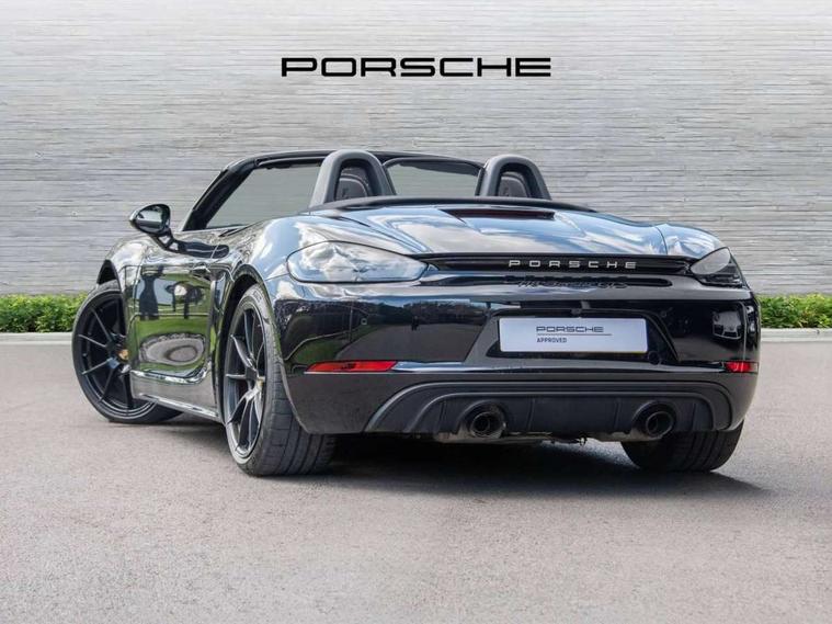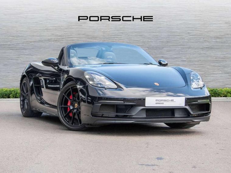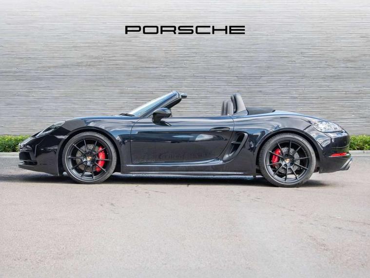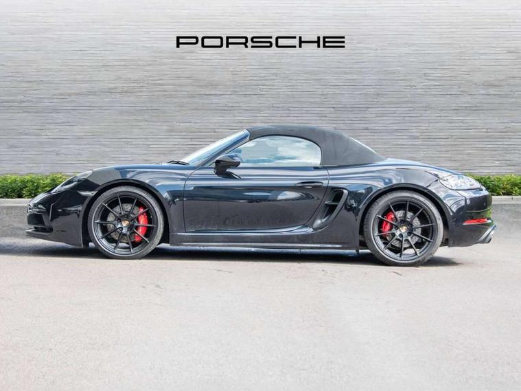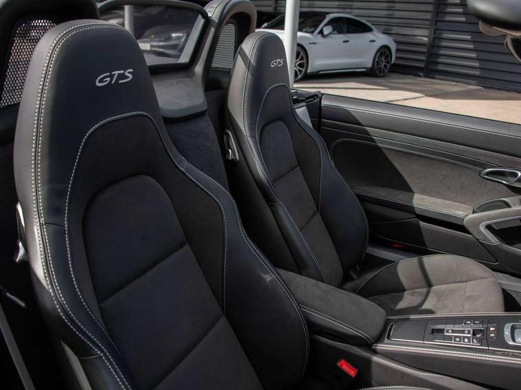 Auto start and stop system, Digital displays for vehicle speed, chosen gear, odometer, trip odometer and clock, eCall emergency call system, Instrument cluster with central rev counter and high-resolution 4.6 inch colour display, Porsche Communication Management (PCM) including online navigation module, mobile phone preparation, audio interfaces and voice control system, 64 litre fuel tank, Aluminium block and cylinder heads, Central cooler, Closed underbody panelling, Direct fuel injection (DFI), Dynamic gearbox mount system, Gasoline particulate filter, Integrated dry-sump lubrication with an on-demand oil pump, Porsche Doppelkupplung (PDK), Porsche Stability Management (PSM) with ABS, advanced brake functions, Porsche TORQUE Vectoring (PTV) with mechanical rear differential lock, Rear wheel drive, Two seater vehicle with mid mounted engine, Two three-way catalytic converters and on-board diagnostics for monitoring emission control system and coated particulate filter, Variable intake manifold with two switchable resonance valves, VarioCam (camshaft control for inlet and exhaust valves) and adaptive cylinder management, Water cooled with thermal management, DAB Digital radio, Integrated 4G/LTE compatible SIM including data for the Porsche Connect Services, Integrated compatible SIM including Porsche Connect Services, Navigation incl porsche + Apple Carplay, connect module, wireless internet access, carfinder, remote vehicle status, remote service and vehicle track, Wifi and music streaming, Auto deploying rear wing, Automatic headlight activation including welcome home lighting, Automatically extending rear boot spoiler, Body colour bumpers, Body colour door handles, Electrically adjustable heated exterior mirrors on door waist rails, aspherical on driver's side, Electrically folding exterior mirrors including courtesy lighting, Fully automatic fabric hood, electrically operated/heatable rigid glass rear screen, operable approx 31 mph and convenient operation by key remote, Green tinted heat insulating glass, Grey top tinted windscreen, Heated rear windscreen, Intelligent lightweight body in Aluminium/Steel composite construction, LED 3rd brake light, LED tail lights and integral 4 point brake lights and reversing lights, Net wind deflector, Power windows with one touch operation and door seal protection, Rain sensor, Rear boot, Separate tinted auxiliary lights in the front end with LED indicators and position lights, Side air intakes with one grille in black, Specifically designed GTS front and rear aprons partially painted in black, Twin tract sports exhaust system with two tailpipe in stainless steel high gloss black, Windscreen washer system with two wiper speeds and washer jets, 12V sockets in passenger footwell and centre console storage compartment, 718 logo on gear lever, Additional smooth finish leather with door panel armrest and centre console main storage compartment, Adjustable fan with air recirculation and defroster functions, Ascending centre console with uncovered storage compartment and closed storage compartment, Clothes hooks on front seat backrests, Footwell illumination, Front and rear luggage compartments, Front headrests, Heated seats, Hood lining in black fabric, LED reading lights, orientation, ignition lock, additionally luggage compartment and glove compartment lighting, Lockable glovebox, Seat centres in race tex, side bolsters, headrests in leather and headrests embroidered with GTS logo in black, Single front passenger seat, Storage compartments in each doors, Two individual cup holders (Passenger side, integrated into dashboard trim strip), Sport chrono package including mode switch - Boxster, 3 point automatic seatbelts, ASR, Electrically controlled parking brake, Front 6 piston aluminium monobloc fixed calipers/Rear 4 piston, discs internally vented and cross drilled, front/rear disc diameter, red brake caliper, Front and rear lightweight spring strut axle, Front seatbelt pretensioners + load limiters, Full size driver and passenger airbags, Passenger airbag deactivate switch, Porsche side impact protection doors with thorax airbag in outer backrest side bolster and head airbag for driver/passenger in door panel, Tyre pressure monitoring system, Alarm system with interior surveillance, Anti-theft wheel bolts, Dashcam preparation, Engine immobiliser with in key transponder, central locking and remote control, Tyre repair kit, Wheel centre caps with full colour Porsche crest,
