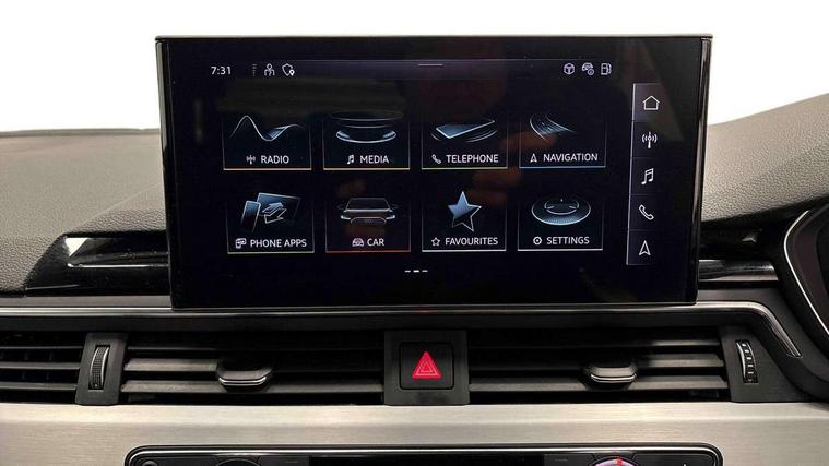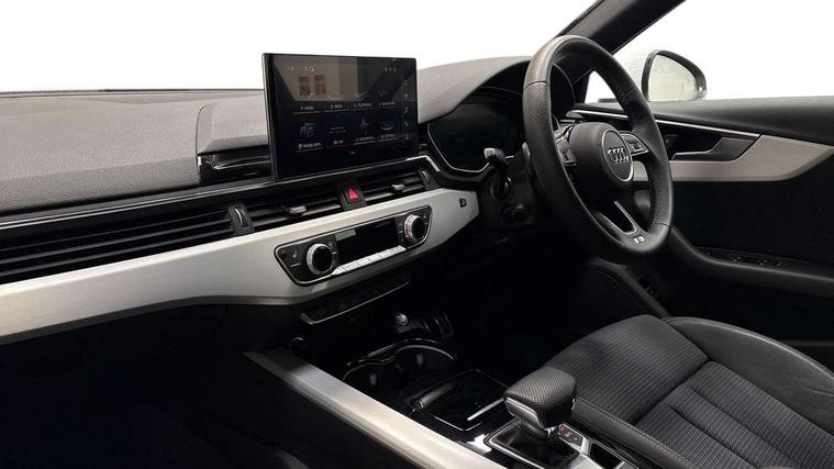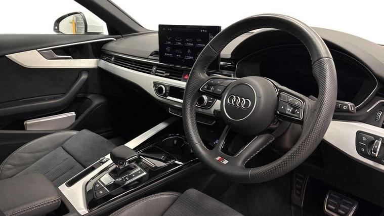 Audi connect safety and service (e-call), Audi drive select, Audi smartphone interface, Audi virtual cockpit, Automatic start-stop system with coasting functionality and efficiency programme, Bluetooth interface, Camera based traffic sign recognition, Electromechanical power steering, Email, calendar and text messages displayed via MMI, Front and rear parking sensors, Lane departure warning, MMI Navigation plus with MMI touch includes 10.1" high resolution colour MMI display, 3D map, Power operated tailgate, Rear view camera, Voice control system, 54 litre fuel tank, Sports suspension lowered by 23mm, 2 USB charging ports, 8 passive loudspeakers, DAB digital radio reception, Aluminium roof rails, Auto dimming rear view mirror, Body colour door handles, Body colour front spoiler lip, Body colour side sill trim, Body coloured door mirrors, Electric adjustable/heated/folding door mirrors with auto dimming, Grained matt black side air inlets with matt aluminium silver inlay, High beam assistant, Honeycomb structure radiator grille in grained matt black, LED headlights with LED rear lights + dynamic rear indicators + headlight adjustment and high beam, turning light + LED daytime running lights, LED third brake light, Matt aluminium silver tailpipe trim, Privacy glass, Rain and light sensors, Rear side wing doors, Rear wiper, S Line badges on the front wings, S line front and rear bumpers with side skirts, S Line rear diffuser in matt anthracite black with trim strip in matt aluminium silver, S Line roof edge spoiler, Variable intermittent front wash/wipe, Windscreen with acoustic glazing, 3 spoke high multi-function sports leather steering wheel grips in perforated leather with S badging including paddle shift, 4 way electric lumbar support for driver and front passenger, 40/20/40 split folding 3 rear seat bench in 3 parts with rear centre armrest, Black carpets, Black cloth headlining, Black perforated leather gearknob, Contrast stitching on seats, steering wheel and gear lever gaiter, Deluxe 3 zone electronic climate control, Electric load area cover, Front and rear head restraints, Front centre armrest, Heated front seats, Illuminated door sill trims with S logo, ISOFIX child seat mounting and top tether, Manual seat adjustment, Single front passenger seat, Stainless steel pedals and foot rest, High gloss package - A4, LED Interior light pack - A4/S4, 3 rear seatbelts, 6 airbags - Driver, front passenger, curtain and side windows, Attention and drowsiness assist, Electronic Stabilisation Control (ESC) including ABS, ASR and EDL, Hill hold assist, Multi collision brake assist, Pop-up bonnet for pedestrian protection, Pre sense city, Rear door child safety locks, Seatbelt monitoring, Warning triangle and first aid kit, Anti theft alarm, Anti theft wheel bolts, Central locking, Keyless Go, Matt brushed aluminium inlays, Tool kit, Tyre repair kit,