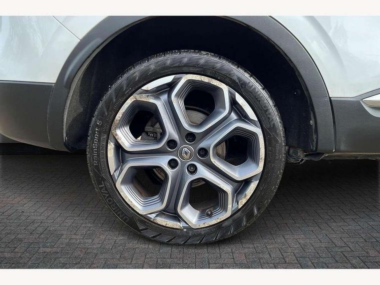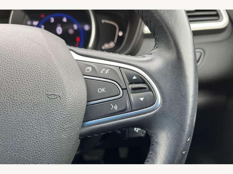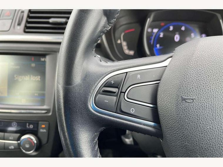 Apple car play/Android Auto, Cruise control + speed limiter, Door/boot open warning light, Eco mode, Exterior temperature gauge, Front and rear parking sensors, Low fuel level warning light, Oil level gauge, PAS, R-Link Multimedia system with 7" touch screen, satellite navigation and western European map, Rev counter, Traffic sign recognition, Trip computer, Visio system - lane departure and high beam assist, 4x35W DAB radio, Arkamys 3D sound with bluetooth and USB connection, Fingertip controls for audio system, Automatic headlights and windscreen wipers, Body colour door handles, Body coloured bumpers, Body coloured door mirrors, Bodyside mouldings with chrome inserts, Chrome exterior trim, Chrome window surround, Cornering front fog lights, Day/night rear view mirror, Electric adjustable/heated/folding door mirrors, Extra tinted glass in rear windows and tailgate, Front and rear electric windows, Front and rear towing rings, Front wipers with variable intermittent facility, Heated rear windscreen, Integrated fuel filler cap, LED daytime running lights, Rear wiper, Roof rails, Side protection mouldings, 12v power outlet - front, 3 height adjustable rear headrests, 3 seat rear bench, 60/40 split folding rear seat, Adjustable dashboard illumination, Air recirculation system, Driver's seat with lumbar adjustment, Driver/passenger reading lights, Dual zone automatic climate control, Front centre armrest, Front courtesy lights, Front footwell illumination, Glovebox with light, Height adjustable driver's seat, Height adjustable front headrests, Height/reach adjust steering wheel, Illuminated boot, Isofix system on outer rear seats, Leather steering wheel, One touch easy folding rear seating system, Pollen filter, Rear courtesy lights, Rear passenger heating ducts, Sun visors with mirrors, Synthetic leather/cloth upholstery, Variable boot floor, ABS/EBD, Brake assist function, Driver/passenger 2 stage auto adaptive airbags, Electronic parking brake, ESP with ASR and UCL (understeer control logical), Front and rear curtain airbags, Front lateral airbags, Front seat belts warning, Height adjustable front seatbelts + pretensioners, Hill start assist, Manual passenger airbag deactivation function, Rear seatbelt warning indicator, Three 3 point rear seatbelts, Traction control, Tyre pressure monitor, Anti-drill door locks/ignition barrel, Deadlocks, Hands free Renault card, Insurance approved Cat 1 alarm system, Insurance Approved Immobiliser, RAID (Renault Anti-Intruder Device) with automatic door locking, Remote central locking,