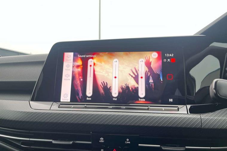Adaptive cruise control (ACC) with speed limiter and front assist (reacting to vehicles pedestrians and cyclists), Car2X communication, Digital cockpit pro - 10.25" high resolution TFT dash display screen with customizable menus and information, Driver alert system, Dynamic road sign display, eCall - Emergency call service for SOS calls to emergency response, Lane assist, Mobile phone interface with wireless inductive charging function, Multifunction camera for distance control, PAS, Speedo, rev counter, electronic odometer, trip, service interval display, exterior temperature and fuel gauge, Start/Stop function, USB-C ports in the front and rear centre console with increased charging performance, Warning buzzer and light for front seatbelts unfastened, Wireless app connect, Petrol Particulate Filter, XDS electronic differential lock for improved traction and handling, Premium USB cable in choice of either Apple or Android smartphone compatibility, Ambient lighting, exterior illuminated styling elements at the sides, Auto dimming rear view mirror, Automatic headlamp activation with Coming home and Leaving home feature, Automatic headlights, Body colour door handles, Body colour door mirrors with integrated indicators, Body colour rear roof spoiler, Electrically heated and adjustable door mirrors with memory feature, Front and rear electric windows, Heat insulating glass windscreen, Heated rear windscreen, High level 3rd brake light, Highway light, LED License plate illumination, R Line body coloured bumpers, Rain sensor, Rear fog light on one side and reversing lights on both sides, Rear lights incorporating LED technology, Rear side wing doors, Rear tinted glass 65% light absorbing from B pillar backwards, Rear windscreen washer and wiper with interval delay, Welcome light, 12V socket in front centre console, 12V socket in luggage compartment, 3 rear head restraints, 3 seat bench in 2nd row, Ambient lighting - Customisable 30 colour ambient lighting, Black roof lining, Brushed stainless steel pedals, Chrome plated surround to electric mirror button, window switch and air vent surrounds, Drivers and front passengers sun visors with vanity mirrors, Front + rear carpet mats, Front centre armrest with storage compartment, Front cupholders x 2, Front passenger seat, Front reading lights x 2 incorporating LED technology, Front seat lumbar support adjuster, Front sports seats, Glovebox, Height adjustable front seats, Height and reach adjustable steering wheel, Isofix child seat preparation for 2 rear child seats and front passenger seat, Luggage compartment lighting, R Line door and side trim panel, R Line front seats integrated head restraints, R-Line leather wrapped multi function sports heated steering wheel, Removable luggage compartment cover, Sardegna cloth upholstery with front and outer rear seats Art Velour inner sides of bolsters, Split folding backrest with centre armrest and unsplit rear seat bench, Titanium black instrument panel, Woven fabric storage compartments in front and rear doors, 3 point height adj front seatbelts + pretensioners, 3 rear three point seatbelts, ABS, Child locks on rear doors, Driver and front passenger airbag with front passenger airbag deactivation, Drivers and front passengers safety optimised head restraints, Electronic parking brake with auto hold, ESC (Electronic Stability Control), Extended pedestrian protection measures, Front and rear passengers curtain airbag system including front side airbags, Front centre airbag, Front disc brakes, Front side airbags with curtain airbags, Rear disc brakes, Two tone horn, Tyre pressure monitoring system, Alarm with interior protection and deactivation via infotainment system, Electronic engine immobiliser, Carbon grey decorative inserts in dash and front door trim panels, High gloss black centre console,
