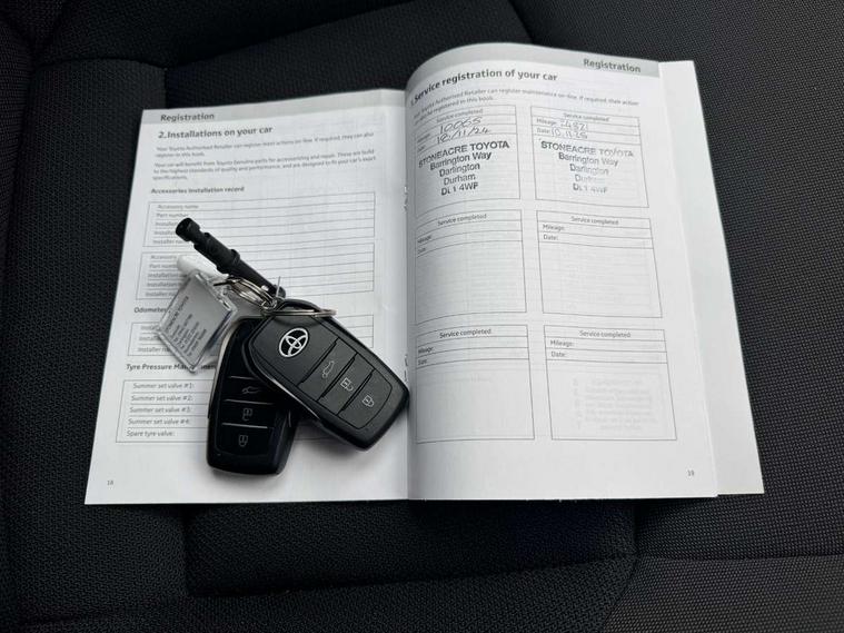 12.3" Digital Combimeter, 12.3" multimedia display screen, 4 rear parking sensors, Acceleration suppression at low speed, Adjustable speed limiter, Blind spot monitor, Bluetooth connectivity, Built-in and cloud navigation, Colour multi information display, Digital speedometer, Digital tachometer, eCall emergency call system, Electric power steering, Emergency driving stop system, Emergency steering assist, Front parking sensors with auto braking, Hybrid system indicator, I/P center cluster X, Instrument finish panel, Intelligent adaptive cruise control, Intelligent parking sensors (objects and vehicle), Lane Departure Alert (LDA) switch on steering wheel, Lane departure alert with steering control, Lane trace assist, Memory on speed limiter, MyT connected services, Power tailgate, Pre collision system with intersection detection, Proactive driving assist (PDA), Push button tailgate release, Rear cross traffic alert, Remote boot door release in cabin, Reversing camera, Reversing camera display in audio screen, Road sign assist - RSA, Safe exit assist, Smart entry and push button start, Smart voice assist, Start and stop, Static guide lines on reversing camera, Toyota Smart Connect multimedia system with wireless Smartphone integration incl Apple CarPlay, Voice recognition, Wireless phone charger, Electric accelerator pedal, Front and rear stabilizers, Vehicle Stability Control (VSC), 6 speakers, Aux-in connector, DAB Radio (Digital Audio Broadcasting), Front USB Type-C connector, Rear USB Type-C connector, Road events, USB connector integrated with radio and CD player, Anti-jam protection on power windows, Auto dimming rear view mirror, Auto high beam, Auto up and down function on all power windows, Auto wipers, Automatic headlights, Automatic headlights cut-off, Automatic rear flashing hazard lights, Automatically retractable door mirrors, B - Pillar in Black, Black centre air vent, Black painted insert on boot door, Black side air vents, Black wheel arch mouldings, Body colour door handles, Body coloured front bumper, Body coloured rear spoiler, Body coloured roof, Clear headlights design, Door scuff plates, Electric heated door mirrors, Emergency brake-light signal (EBS), exhaust tail pipe and diffuser, Flush front and rear door handles, Follow me home headlights, Front and rear power windows, Fuel caution label, Gloss black door belt moulding, Grained front side grille, Grained lower front grille, Grained rear bumper extension, Gunmetal surround on lower front grille, Headlight cut off reminder, LED daytime running lights, LED fog lights, LED High mounted stop light, LED rear brake lights, LED rear combination lights, LED reverse light, Manual headlight levelling, Noise reduction layer on windscreen, Power adjustable door mirrors, Pre wiring for towing hook, Privacy glass, Puddle lights, Rain sensor, Rear bumper with gunmetal insert, Rear fog lamps, Rear side wing doors, Rear tailgate, Rear window defogger, Rear window wiper, Reflective LED headlights, RHD aiming, Satin chrome centre air vent surrounds, Satin chrome insert on centre air vents, Satin chrome insert on side air vents, Satin chrome side air vent surrounds, Silver large centre cap surrounds, Standard Front Side Grille, Standard roof, Turning signal integrated in door mirrors (LED), UV-filter on driver and passenger windows, UV-filter on rear windows, Variable front intermittent wipers, Wing liner front with sil rear without sil, 12v power outlet - front, 2 rear coat hooks, 3 bench rear seats in 2nd row, 3 rear headrests, 3 spoke synthetic leather steering wheel, 60/40 split folding 2nd row rear seats, Adjustable rear headrests, Ambient lighting on front doors, Assist grips front and centre pillar, Audio and telephone switches on steering wheel, Boot light, Clean air filter, Cloth upholstery with grey stitching, Cover front console box, Dark grey interior door handles, Door Edge Protection Film, Driver and front passenger personal light, Driver and front passenger Whiplash Injury Lessening seats, Dual zone automatic air conditioning, Fabric door trim, Floor mats - border/stitching, Front console box, Front cupholders, Front door pockets, Front headrests, Front room light, Front sports seats, Glovebox with internal light, Hard tonneau cover, Heated driver and front passenger seats, Hooks for luggage holding net, Hybrid key cover, Illuminated entry system, ISOFIX child restraint system, LED Overhead Console light, Light on driver sun visor, Light on passenger sun visor, Luggage floor board with protection mat, Manual telescopic steering wheel, Manual tilt steering wheel, Manually height adjustable driver seat, Manually height adjustable front passenger seat, Manually reclining driver seat, Manually reclining front passenger seat, Manually sliding driver seat, Manually sliding front passenger seat, Mat Fitment, Microphone on front personal light, Mirror on driver sun visor, Mirror on passenger sun visor, Multimedia switches on steering wheel, Pollen air filter with deodorising odour eliminator, Power adjustable lumbar support on driver seat, Rear door cup holder, Rear door pockets, Rear passenger personal lights, Remote air conditioning, Single compartment glovebox, Single front passenger seat, Slow opening on lower glovebox, Synthetic leather gear shift knob, Voice recognition switch on steering wheel, 3x3 point rear seat belts, ABS+EBD+Brake assist, Driver and passenger side airbag, Driver knee airbag, Electronic parking brake, Front and rear seatbelt reminder, Front passenger airbag on/off switch, Front to front oncoming car and motorbike daytime detection, Hill start assist control (HAC), Pre collision system with pedestrian, cyclist and motorbike day detection, Pre-tensioners and force limiters, Rear door child safety locks, Rear seat reminder alert, Supplemental Restraint System (SRS) 8 airbags: Driver & passenger's airbags, dual side curtain airbags, side impact airbags, front centre airbag, Toyota safety sense with ove
