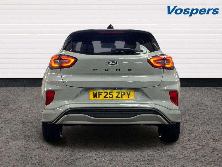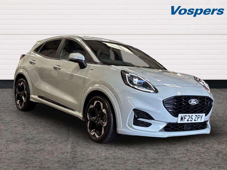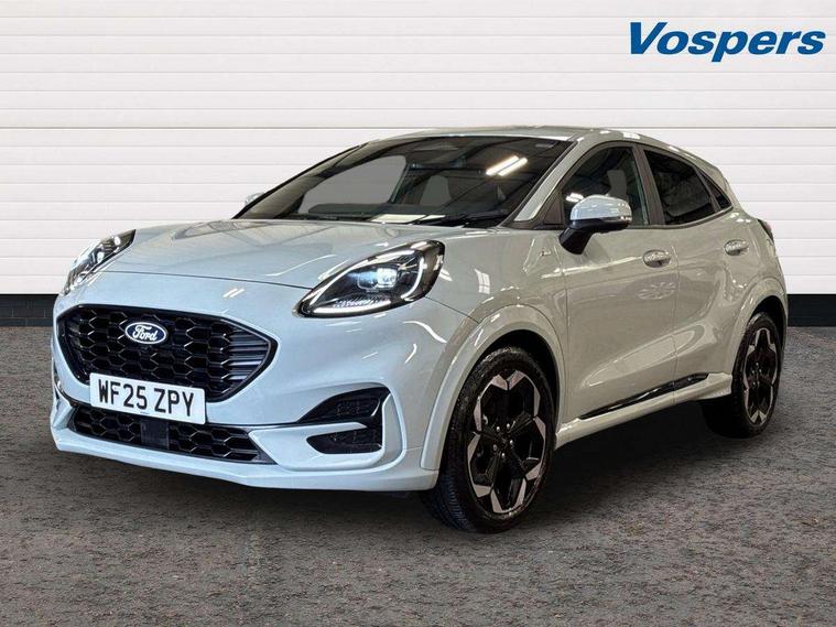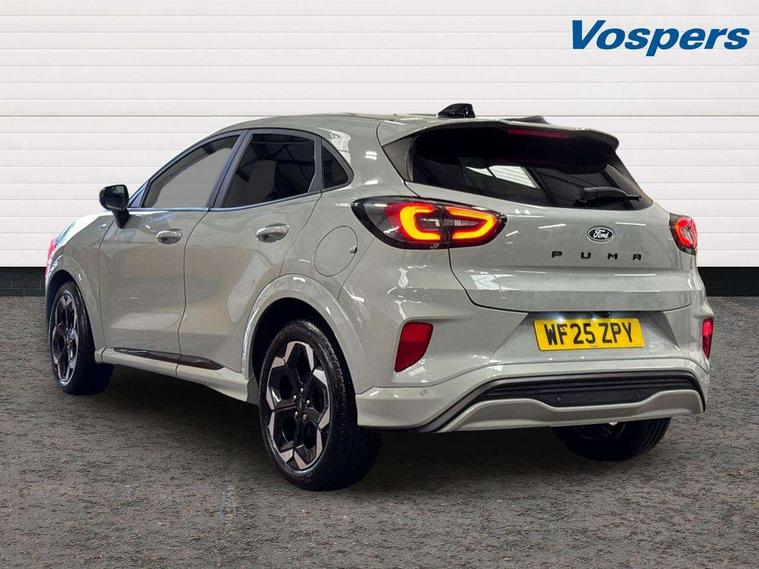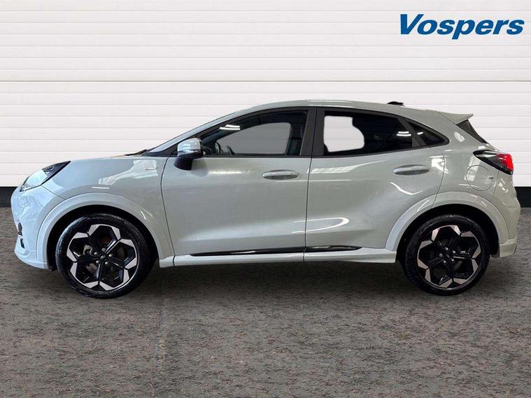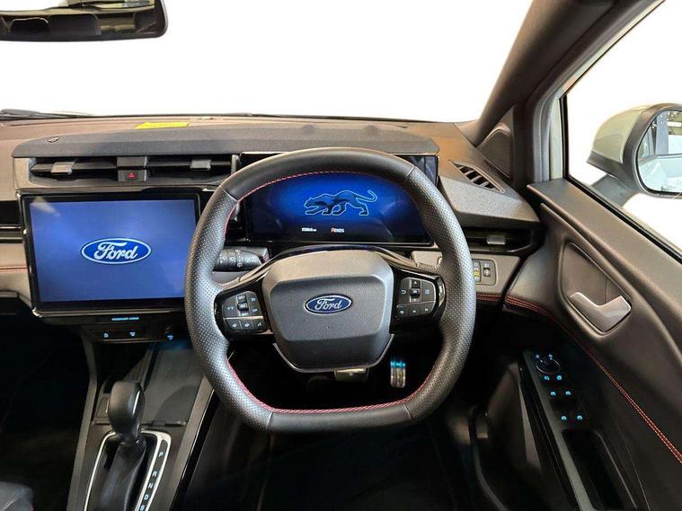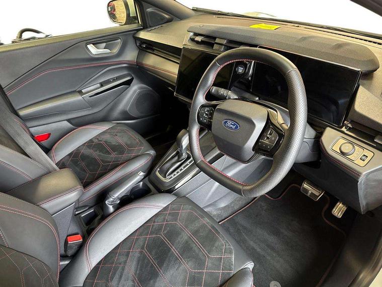 Driver impairment monitor, Emergency call service, Ford easy fuel, Full digital 12.8" instrument cluster, Lane keeping aid with lane departure warning, Power assist steering, Selectable drive modes(Normal, Eco, Sport, Slippery and Trail), Speed sign recognition, Wireless charging, Sport suspension, 12" landscape touchscreen display with wireless apple car play and android auto premium B&O audio system with 10 speakers, Ford pass connect and emergency assistance, Ford SYNC4 with connected navigation, Automatic headlights with rain sensing wipers and auto high beam, Front fog lamps, LED daytime running lights, LED rear lamps, LED third brake light, Power foldable heated door mirrors with puddle lamps and puma logo protection, Quickclear heated windscreen, Rear privacy glass, Rear side wing doors, Rear wiper, ST-Line X body styling kit, 3 seat bench in 2nd row, 4 way lumbar support for passenger seat, Centre console with armrest and stowage, Electronic automatic temperature control (EATC), Ford megabox extended bootspace, Front and rear head restraints, Front floor mats, Manual 4 way driver seat adjust with lumbar adjustment, Single front passenger seat, ST-Line X Premium synthetic leather upholstery, Comfort pack with power lift tailgate - Puma, 3 rear seatbelts, Child safety lock, Electronic stability control (ESC) and hill start assist, Pre-collision assist with autonomous emergency braking, pedestrian/cyclist detection & post-collision braking, Tyre pressure monitoring system (TPMS), Thatcham alarm,