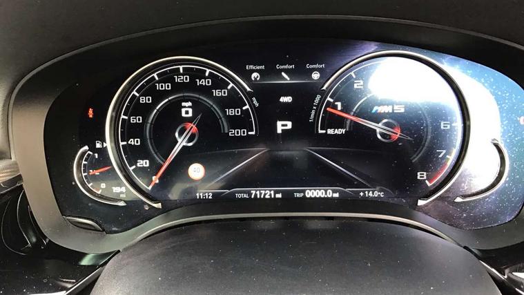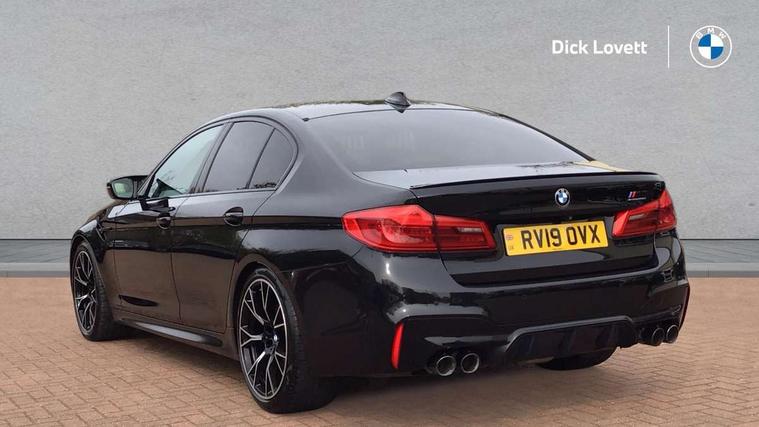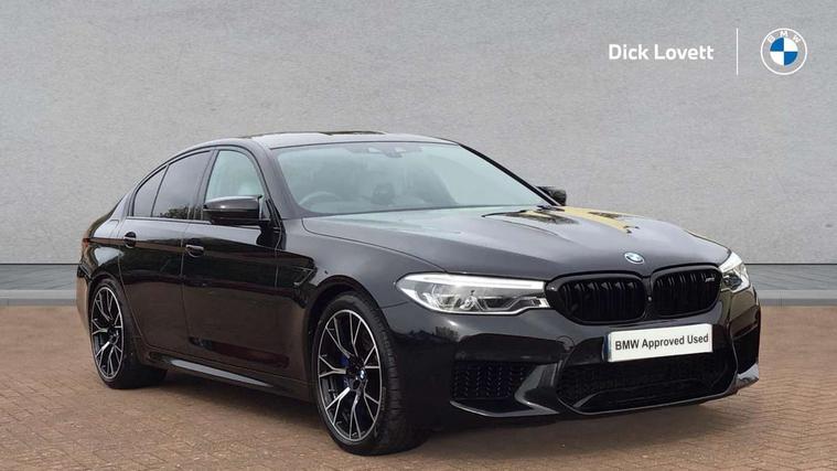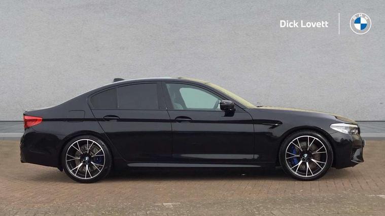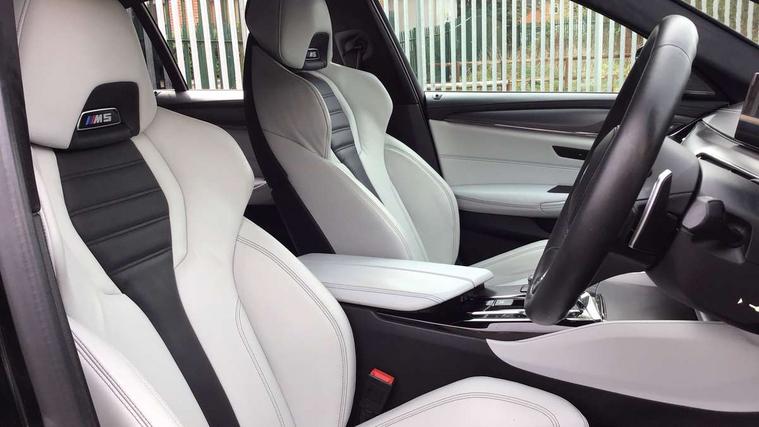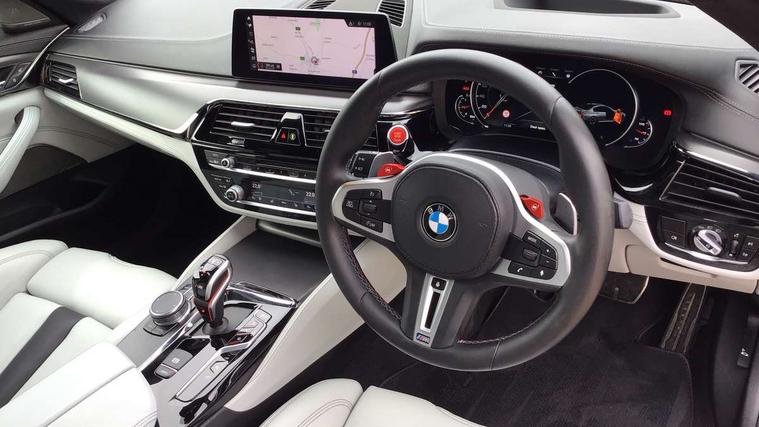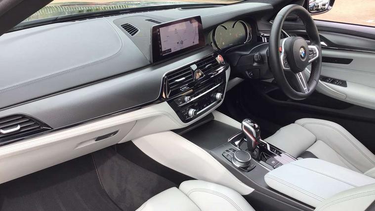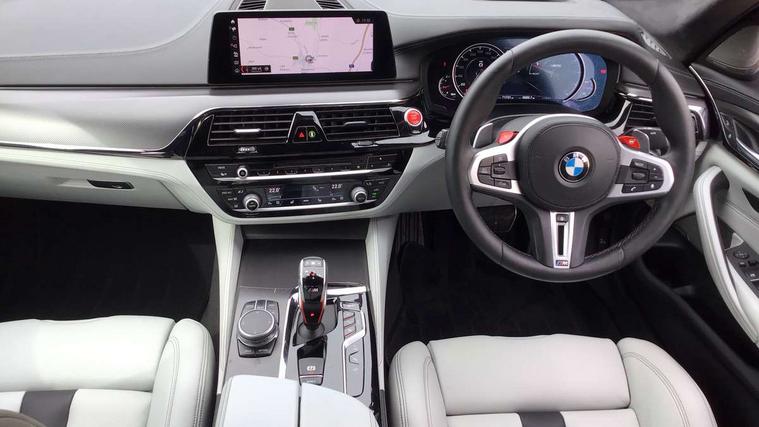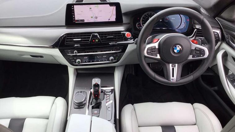 20GB Hard drive, Automatic bootlid operation, BMW Online services, BMW remote services, BMW Teleservices, Brake force display, City brake control, Comfort access system with smart opener, Digital cockpit, Enhanced bluetooth with wireless charging, Front/rear Parking distance control, Head up Display, iDrive controller and display with 10.2" colour display monitor, Lane departure and rear collision warning system, Navigation System Professional Multimedia, On board computer, On-board diagnosis - OBD, Outside temperature display, Park assist plus, Personal Profile, Real time traffic information, Rear cross traffic alert, Reversing camera, Service interval indicator, Servotronic PAS, Speed limiter, Voice control system, Wifi hotspot preparation, Adaptive drive with variable damper control, Anti-roll bars, Petrol Particulate Filter, BMW professional radio/DVD/MP3, DAB Digital radio, Gesture control for infotainment system, USB socket, Anti-corrosion treatment, Auto dimming door mirrors, Auto dimming rear view mirror, Body colour door handles, Body coloured bumpers, Body coloured side sills, Dynamic brake lights, Electric folding and heated door mirrors, Electric front and rear windows with fingertip open/close + anti-trap all round, Follow me home headlights, Four chrome exhaust tailpipes, Heated windscreen washer jets, High beam assistant, High gloss black door mirrors, High gloss black kidney grille, High gloss black M side strakes, High gloss black rear apron, Icon Adaptive LED headlights, Illuminated door handles, Individual door sill finishers, LED daytime running lights, M rear spoiler, M side gills with M5 logo, M Sport exhaust system, Rain sensor with auto light activation system, 12V power point front, 4 zone control automatic air conditioning, Additional 12V sockets in rear and luggage compartment + twin USB charging sockets, Alcantara headlining in anthracite, Ambient interior lighting, Anthracite Velour floor mats, Battery in luggage with jump start facility, Electric adjustable steering column, Front centre armrest with storage compartment, Front cupholders x 2, Front footwell lights, Front reading lights, Front/rear armrests within door panels, Gearshift paddles, Heated front seats, Illuminated glovebox with lock, Isofix rear child seat preparation, M leather steering wheel, M Sport multi-function front seats with electric lumbar support and driver memory, Multi-function controls for steering wheel, Rear centre armrest with 2 cupholders + storage, Rear footwell lights, Rear headrests, ABS/EBD, Automatic Stability Control (ASC), BMW emergency call, Brake assist function, Brake energy regeneration, Cornering brake control (CBC), Crash Sensor - activates hazard/interior lighting + unlocks doors, Door reinforcements, Driver/front passenger side airbags, Driver/Passenger airbags (Impact dependent), DSC - Dynamic Stability Control, DSC+, Dual horn, Dynamic brake control, Dynamic Traction Control - DTC, Electromechanical parking brake, Front and rear head airbags, Front head restraints with anti-whiplash, Front passenger airbag deactivation, Fuel cut off safety device, Hill start assist, Inertia reel front seatbelts+pretensioners, M sport seatbelt, Motor Slip Regulation (MSR) - Engine Drag Torque Control, Side impact protection, Three inertia reel rear seatbelts, Tyre pressure monitoring system, Warning triangle and first aid kit, Automatic drive away locking facility, Engine immobiliser, Locking wheel bolts, Remote central locking, Remote control Thatcham category 1 alarm, 20" M Y-spoke light alloy wheels with mixed tyres in bicolour finish - style 789, Tyre mobility system,