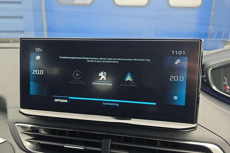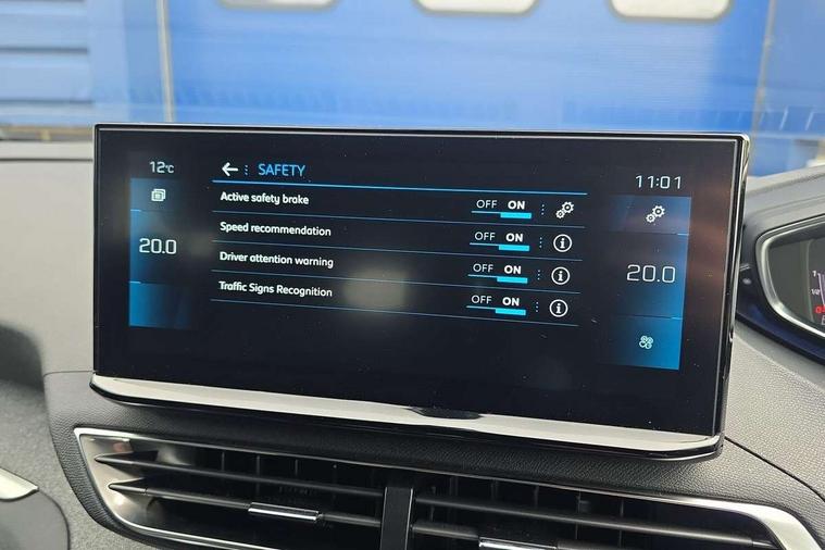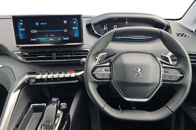 10" High Definition Capacitive Touchscreen, 180 degree colour reversing camera, 3D connected navigation + voice control, Apple car play and Android auto, Bluetooth telephone connection, Cruise control and Speed Limiter with intelligent speed adaption, Drive mode selector (Eco, Normal and Power), Driving timer alert system, Emergency services call system, Extended traffic sign recognition, Exterior temperature indicator with ice warning, Lane departure warning system, Multi function trip computer, Peugeot i-cockpit with configurable 12.3" headup digital instrumental panel and compact sports steering wheel, Speed limit recognition and recommendation, Voice recognition for radio and telephone, Dynamic stability control and electronic anti-skid system, 6 speakers radio with mp3 compatible, Bi Tuner radio including DAB, USB socket, Aluminium front door sills, Aluminium roof rails, Automatic activation of hazard warning lights, Black diamond door mirror covers, Black diamond roof, Black front wing trim with chrome detail, Black rubber side window trim, Body colour door handles, Body coloured rear spoiler, Body protectors in black, Chrome rear bumper scuff plate, Classic frameless design in front radiator grille, Dark tinted rear side and tailgate windows, Door mirrors with auto dipping function in reverse gear, Eco LED headlights, Electric folding door mirrors with exterior courtesy LED lighting, Electrically heated door mirrors, Front and rear door and sill protectors with polished stainless steel insert, Front windscreen wiper with magic wash cleaning system, Gloss black B and C pillar and aerodynamic deflector trim, Gloss black rear cluster connecting strip, Headlights left on audible warning, Heated rear windscreen with integrated antenna, LED daytime running lights in fang style, LED front indicator, LED rear lights including reversing lights, scrolling indicators and PEUGEOT '3Claw Effect' light signature (with daylight function), LED rear number plate lighting, LED side indicator lights integrated into door mirrors, LED third brake light, One touch electric front/rear windows with pinch protection, Rear side wing doors, Rear windscreen wiper with auto activation when reversing, Silver front lower bumper, Stainless steel roof arches, 2 cupholders in front centre console, 2 separate seats in 3rd row, 3 bench rear seats in 2nd row, 3 x 12V power sockets, 4 Grab handles retractable and damped, Aluminium pedals, Automatic and dual zone diffusion air conditioning system, Blue ambient lighting for connecting zone, Blue ambient lighting to front door panels, Blue ambient lighting to head up instrument panel, Brumeo fabric trimmed door armrests, Central front armrest with butterfly wing opening, Tramontane double stitching and illuminated storage compartment, Driver seat lumbar adjustment, Driver seat manual adjustment (longitudinal and back rest angle), Electric power steering with reach and rake adjustable steering column, Flocked glovebox interior, Fold flat front passenger seat with picnic table, Footwell lighting, Front ambient lighting, Front interior light with reading spotlights (x2), row 2 interior light with reading spotlights (x2), Front passenger seat manual adjustment (longitudinal and back rest angle), Gear shift indicator, Height adjustable driver seat, Height adjustable passenger seat, Illuminated glovebox, Illuminated vanity mirror, Isofix child seat fittings x 3 in the second row, Leather steering wheel, LED interior lighting, Map pocket on front seat backs, Rear ventilation system, Retractable parcel shelf, Roof lining - Salin light grey, Satin chrome digital instrument panel and touchscreen trim, Satin chrome front door panel recess trim, Satin chrome interior door handles, Satin chrome scorpion's tail and toggle switch trim, Seatbelt not fastened audible and visual alert for front seats, Seatbelt unfastened on the move audible and visual alert for front and rear seats, Single front passenger seat, Third row seats (can be stored under bootfloor or removed completely), Twin rear coat hooks, Children's pack - 5008, Safety plus pack - 5008, Visibility pack - 5008, ABS + EBD + EBA, Adaptive driver and front passenger airbags including passenger airbag deactivation function, Electronic parking brake, ESP and ASR traction control with deactivation switch, Five 3 point rear safety belts, Front and rear curtain airbags, Front optimised safety headrests and rear retractable headrests (x3), height adjustable, Front side airbags, Front three point retractable seatbelts height adjustable with pre tensioners and force limiters, Front ventilated disc brakes, Hill start assist, Manual child lock in rear doors, Rear disc brakes, Rear three-point retractable seatbelts (x3) with pre-tensioners and force limiters in the outer rear seats, Two tone horn, Automatic door locking when moving off, Child lock control of rear doors and windows, Electronic code immobiliser, key operated exterior door lock from the left hand door, Keyless start, Perimetric and volumetric alarm with lift and tilt sensor, Peugeot Open and Go System, Remote control central locking with two plip keys, Brumeo fabric interior trim, Satin chrome dash trim,