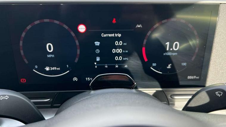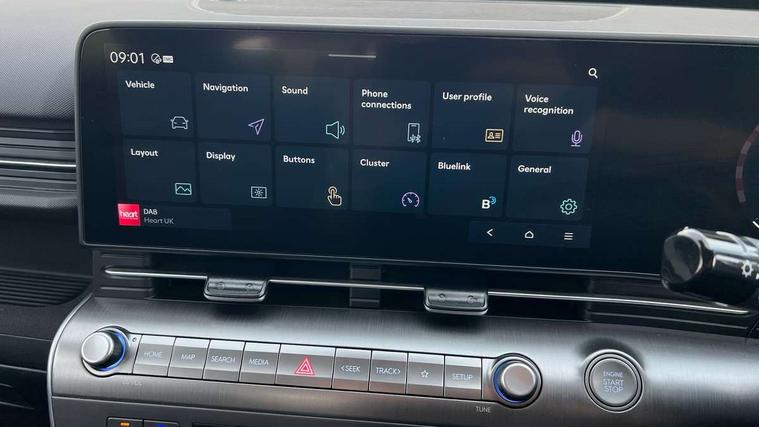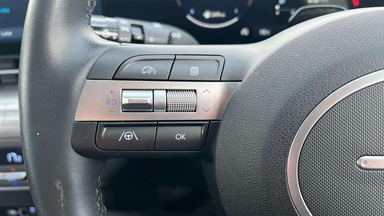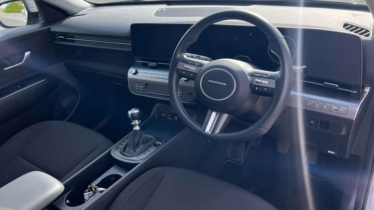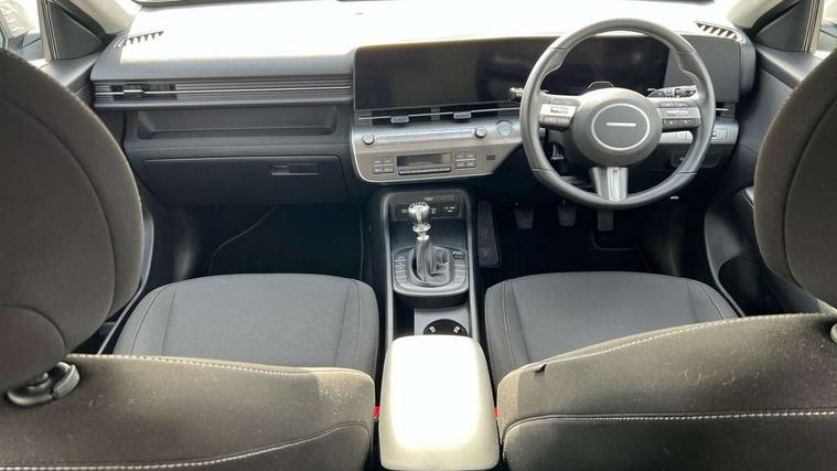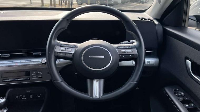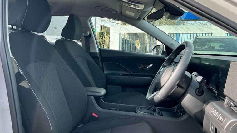 12.3" touchscreen centre console display satellite navigation with bluelink, live services and mapcare, Bluetooth connectivity with voice recognition, Cruise control, Digital clock, Driver status monitor (DSM), Driver supervision instrument cluster with 12.3" LCD display, eCall emergency call system, Feature on demand - Enabled, Forward collision avoidance assist (FCA 1.5) - Car, pededstrian, cycle and junction turning, Front parking sensor, Intelligent speed limit assist, Lane follow assist, Lane keep assist, Leading vehicle departure alert (LVDA), Parking system with rear camera and guidance system, PAS, Rear parking sensor, Roadside assistance, Windscreen washer fluid sensor and warning indicator, Wireless Smartphone Integration includes Apple CarPlay and Android auto, 2 front USB C and 2 rear USB C charging points, DAB Digital radio, Speakers - Front, rear and tweeters, Steering wheel audio, phone and cruise controls, Auto dimming rear view mirror, Automatic headlights with dusk sensor, Automatic windscreen wipers with rain sensor, Black painted wheel arch inserts, Body colour bumpers, Body colour exterior door handles, Body coloured door mirrors, Door mirror LED indicator lights, Electric front windows with anti-trap mechanism and one touch control, Electric rear windows, Electrically adjustable and heated door mirrors, Full LED MFR headlights, LED daytime running lights, LED upper and lower rear lights, Power folding door mirrors, Rear roof spoiler with integrated LED brake light, Rear side wing doors, Rear skid plate - silver, Rear wiper, Roof rails, Tinted glass in front and rear doors, Windscreen auto defog function, 12V power outlet in front console, 2 zone climate control, 3 seat bench in 2nd row, 60/40 split folding rear seat, Adjustable head restraints, Cloth upholstery, Driver and passenger front seat pockets, Driver's seat lumbar support, Driver/passenger manual seat height adjustment, Driver/passenger sunvisors and illuminated vanity mirrors, Floor mats, Height/reach adjustable steering column, Isofix rear child seat fastenings, Leather wrapped steering wheel and gear knob, LED centre interior light, LED front interior light, Luggage compartment LED lighting, Luggage shelf, Metal paint effect interior door handles, Parcel shelf, Rear centre armrest, Rear centre armrest with cupholders, Rear centre console with air vents, Single front passenger seat, Vertical adjustment rear head restraints, Trailer wiring package - Kona, Airbag - front, front side, curtain and centre front airbag, Anti-lock brake system (ABS), Childproof rear door locks, Downhill brake control, EBD + Brake Assist, Electric parking brake, Electronic stability control, Fasten seatbelt reminder, Fixed 3 point for second row centre passenger seatbelt, Front seatbelt pretensioners, Height adjustable front seatbelts, Hill start assist control (HAC), Passenger airbag deactivate switch, Rear seat alert, Traction control, Tyre pressure monitoring system, Alarm/immobiliser, Deadlocks, Folding key, Locking wheel nuts, Remote central locking, Smart key with keyless entry and start/stop button, Five year annual vehicle health checks, 17" Alloy wheels, Temporary mobility kit (TMK),