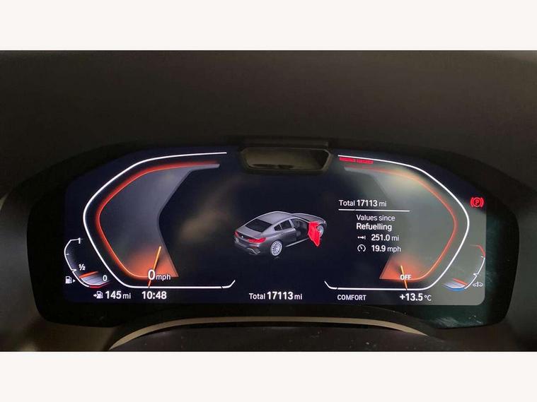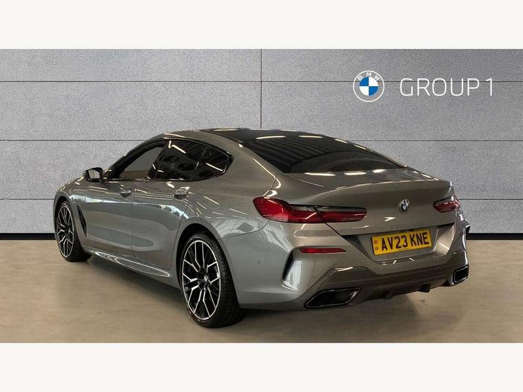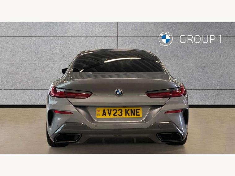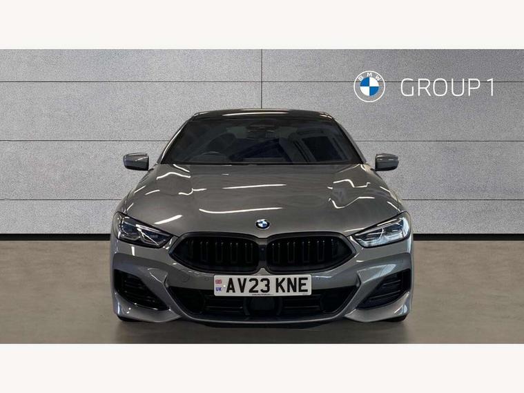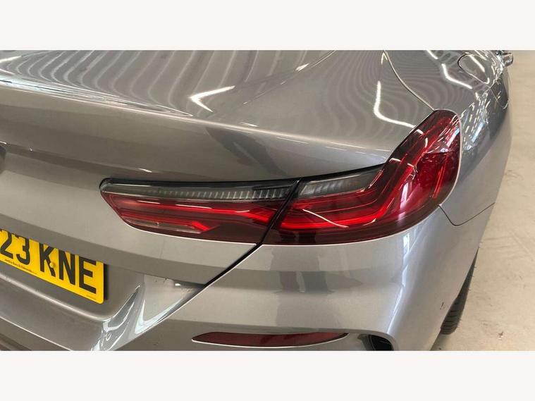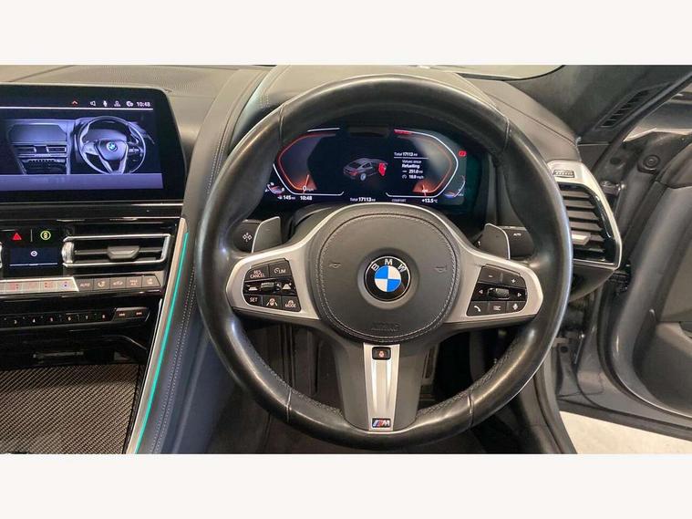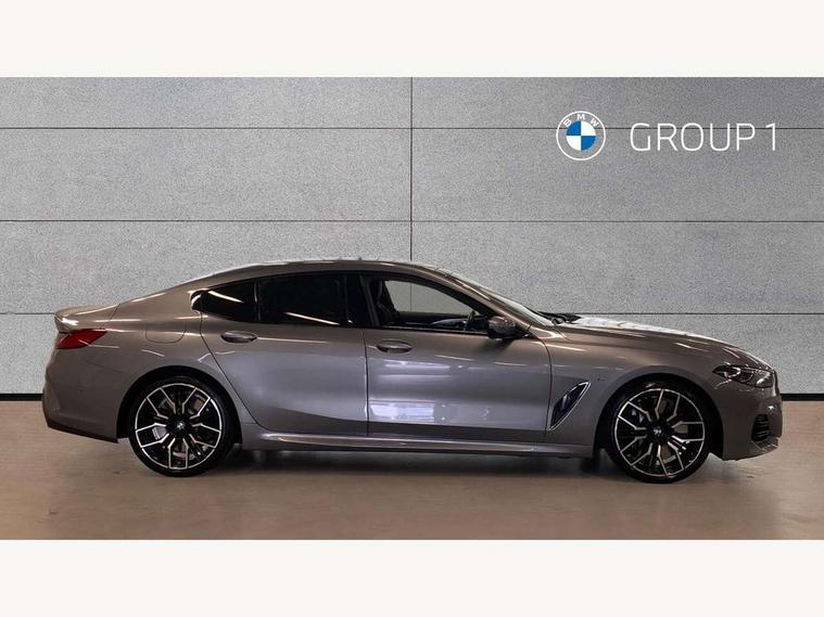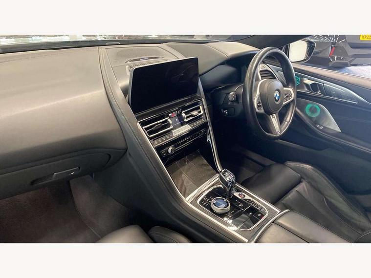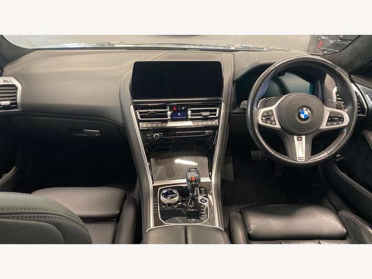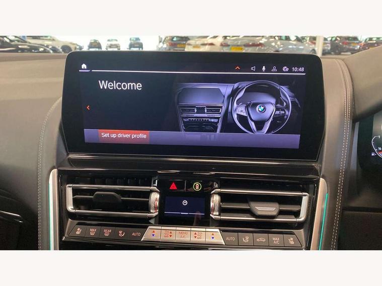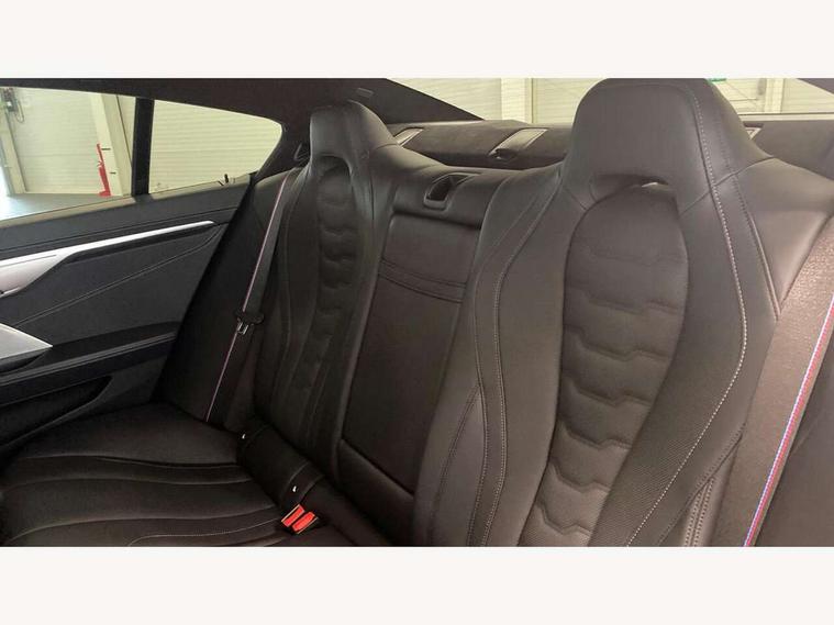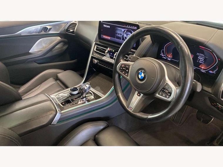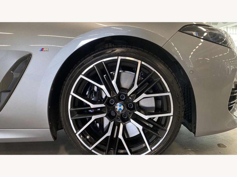 Automatic tailgate operation, remote opening with key, closing by tailgate button or remote control including tailgate in LED technology, Bluetooth hands free facility with USB audio interface, voice control and enhanced bluetooth + Wireless charging, BMW ConnectedDrive online services, BMW legal emergency call, BMW Teleservices, Brake pad wear indicator, Check control system, Condition based service, Drive experience control with Sport, Comfort, Eco Pro and Adaptive modes, Electric bootlid, Head up Display, iDrive controller with shortcut buttons, Instrument and upper door panel in walknappa leather, Integrated owners handbook, Light on warning, Oil sensor for level and grade, On board computer, Outside temperature display, Run flat indicator, Service interval indicator, Servotronic system, Speed limiter, Wi-Fi hotspot, Adaptive M suspension, Double wishbone front axle, Dynamic Damper Control, Eight speed sport automatic transmission, M Sport differential, Petrol Particulate Filter, Sport exhaust system, DAB Digital radio, Favourite buttons, Air breather inlay in pearl chrome, frame in black high gloss, Automatic windscreen wipers and automatic headlight, Carbon core, Climate comfort windscreen, Daytime driving lights front and rear active, Dynamic brake lights, Exterior mirrors - Floating design mirror, exterior mirror housing upper in vehicle colour, electric adjust/heated, aspherical, electric fold in function, Follow me home headlight function, Frameless interior mirror, Front and rear bumper system with replaceable deformation elements, Front electric windows, Front ornamental grille with kidney grille bars, Heat protection, sun protection glazing, Heated rear window, glass, Heated windscreen washer jets, High beam assistant, Illuminated door handles, Illuminated radiator grille iconic glow, LED rear lights, M emblem on front side panel in light chrome, Model logo on right tailgate, Radiator grille frame in pearl chrome, Radiator grille struts in aluminium matt, Rain sensor and automatic driving lights control, Rear boot, Rear side wing doors, sDrive designation on left tailgate, Sun protection glass, Thermally insulated windscreen, Third LED technology brake light in rear window, Welcome lights in interior and door handle area, Window frame and mirror base in black high gloss, 2 cup holders in front, 2 rear head restraints, 2 X front 12v power sockets, 3 spoke M sport leather multifunction steering wheel with shift paddle, 4 zone control automatic air conditioning, 5 seats, 50/50 split folding rear seat, Ambient light with dynamic interior light, BMW ID, Front and rear seat heating, Front centre armrest with light, 12V socket and USB and storage compartment, Front door pockets, Front entry lights doors, Front reading lights, Front sun visors with ticket holder and illuminated mirror, Interior lighting - Interior light front centre above interior mirror, luggage compartment light, automatic interior light system soft on/soft off, Lashing eyelets, Lockable glove compartment with light, Microfilter and active carbon filter, Steering column with adjustable height and length and activation via control on the steering column, Through loading function, BMW Live cockpit professional pack - 8 Series, Connected professional pack - 8 Series, Exterior items pack - 8 Series, M sport exterier styling aerodynamics pack - 8 Series, 18" M Sport braking system with blue painted brake calipers with M designation, 3x3 point rear seatbelts, ABS/EBD, Active protection, Airbags - Driver and front passenger airbag with seat occupancy detection, knee, side and front passenger seat airbag deactivation, Brake discs, compound structure, Child locks on rear doors, Cornering brake control (CBC), Crash sensor activating central locking release, hazard warning lights, fuel cut off, interior lighting, safety battery terminal clamp and airbags, DSC - Dynamic Stability Control, Dynamic brake control, Dynamic Traction Control - DTC, Electromechanical parking brake with automatic drive away release and auto hold function, Front three point with pyrotechnical belt latch tensioner seat belts, belt force limiter and belt stopper, Head airbags for 1st and 2nd seat row, Hill start assist, Integrated brake system, ISOFIX child seat mounting for the two outer rear seats, Rear three point with pyrotechnical belt latch tensioner seat belts and belt force limiter, Side impact protection, Tyre pressure monitoring system (TPMS), Warning triangle and first aid kit, Alarm system (Thatcham 1) with electronic engine immobiliser, Centre lock switch, Closing system with central locking, Comfort access system, Keyless entry with start/stop button, Locking wheel bolts, Vehicle key with exclusive M designation,