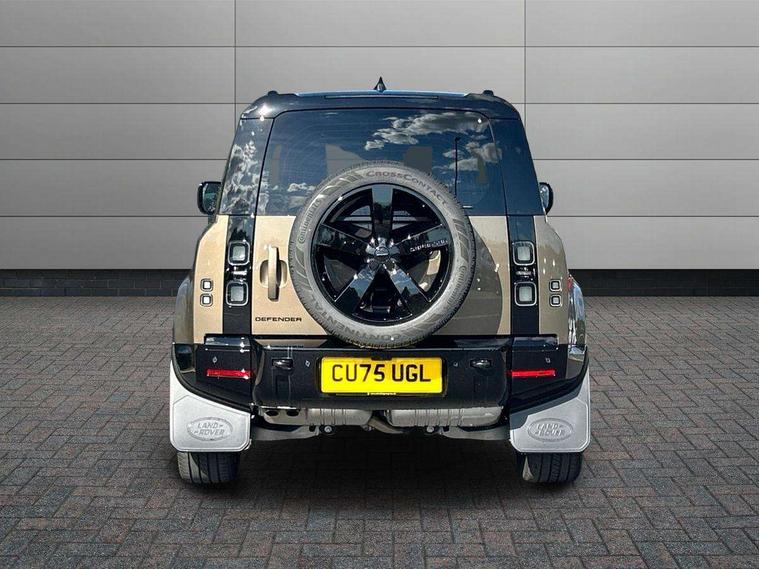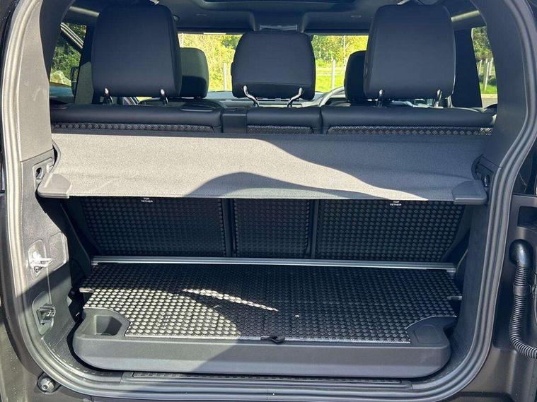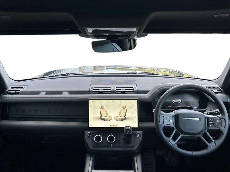 1 x USB-C (power only) & 1 x USB-C (power & data) in Row 1, 2 x USB-C in Row 2, 11.4" touchscreen, 360 degree parking aid, 3D Surround Camera with 360 View, 180 Rear View, Front Traffic Detection, Forward Vehicle Guidance, Tow Hitch Assist and clear sight Ground View, Adaptive cruise control, Android Auto, Apple CarPlay, Blind spot assist, Bluetooth system, Brake pad wear indicator, Clear exit monitor, Connected navigation pro, Driver attention monitoring system, Electric power assisted steering (EPAS), Interactive driver display, Lane keep assist, Push button start, Rear collision monitor, Rear traffic monitor, Traffic sign recognition with adaptive speed limiter, Trip computer, Wireless device charging, 8 speed automatic transmission, All wheel drive system, Twin speed transfer box, DAB Radio (Digital Audio Broadcasting), Meridian 400w sound audio system with 11 speakers and subwoofer, Pivi pro connected, Automatic headlight levelling, Automatic headlights, Black exposed rear recovery eyes, Body coloured bonnet, Darkened LED tail lights, Electric heated/power fold door mirrors with approach lights and auto dimming driver side, Electric windows with one touch open/close and anti-trap, Follow me home lighting, Front fog lights, Heated rear window with timer, Heated windscreen, LED 3rd brake light, LED tail lights, Panoramic rear side glass, Privacy glass, Puddle lights, Rain sensing windscreen wipers, Rear fog lights, Rear wiper, Side hinged tailgate, Standard tail door, Trailer stability assist, X-Dynamic badge, 12V power socket in loadspace, 3 seat bench in 2nd row, Alpine lights, Configurable cabin lighting, Durable rubber cabin flooring, Durable rubber loadspace flooring, Ebony carpet mats, Flat load space floor tray, Footwell lights, Front head restraints, Loadspace cover, Loadspace Hook, Multifunction steering wheel, Overhead stowage for sunglasses, Rear headrests, Rear ISOFIX, Rear reading lights, Single front passenger seat, Standard seat configuration, Storage glovebox, Sunvisors with illuminated vanity mirrors, Twin front cupholders, Non-smoker package, Online pack with data plan - Defender, 5 x 3 point seatbelts, ABS, Brake hold function, Cornering brake control (CBC), Customer configurable autolock, Driver and passenger airbags, DSC - Dynamic Stability Control, EBD - Electronic brakeforce distribution, Electric parking brake (EPB), Emergency brake assist, Emergency braking, ESP + traction control, Front airbags with passenger seat occupant detector, HDC - Hill descent control, Hill launch assist, Low traction launch, Remote for (e-Call, Optimised assistance call, InControl app, Climate, beep and flash and door), RSC - Roll stability control, Seat belt reminder, TPMS (Tyre pressure monitoring system), Alarm, Immobiliser, Intrusion sensor, Keyless entry, Locking wheel nuts, Secure tracker pro,