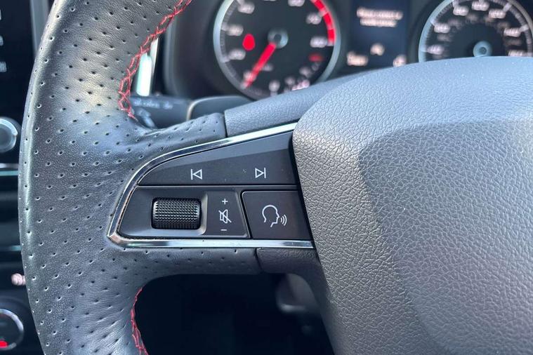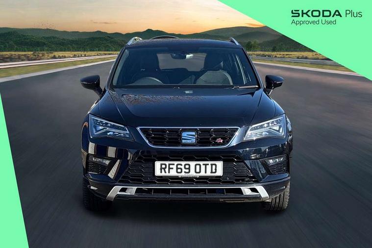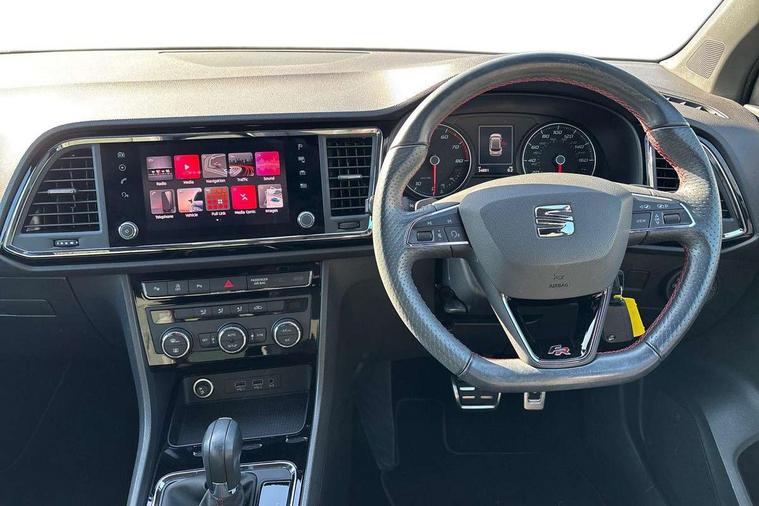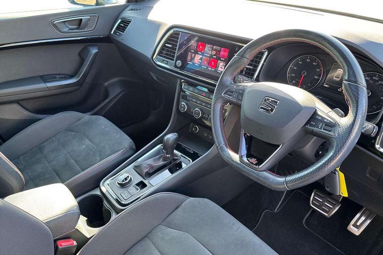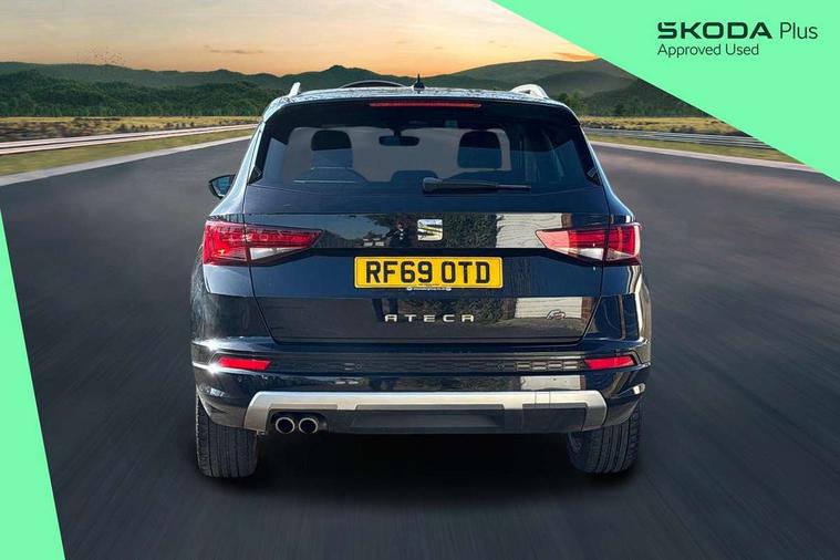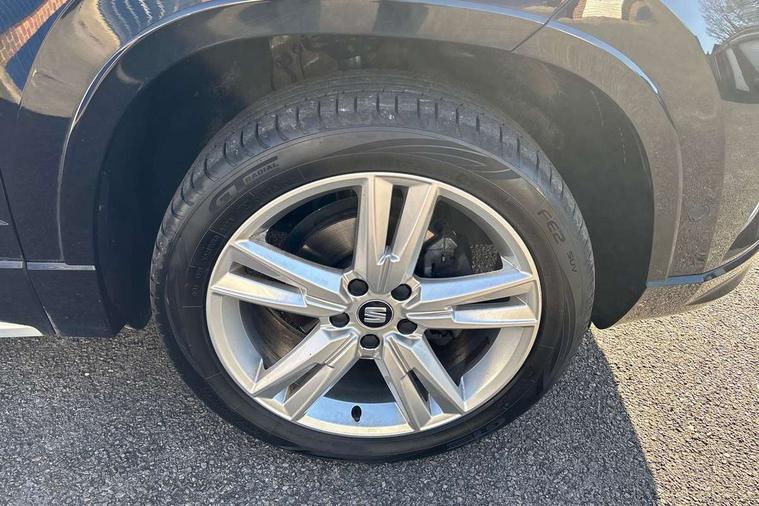 'Lights On' Reminder warning buzzer, 3.5" driver's display, Cruise control, Digital clock, Driver alert system, Front assist city emergency braking and pedestrian protection, Full Link Smartphone Integration with Mirror Link, Apple Car Play, Google Android Auto, Low fuel warning light, Multi function display, Outside temperature gauge, Power assist steering, Remote fuel flap release, RPM counter, Satellite navigation system, SEAT drive profile with driving experience button, SEAT logo boot release, Self parking functionality (includes front and rear parking sensors), Trip computer, Comfort suspension, XDS electronic differential lock, SEAT USB media cable, Steering wheel mounted audio/phone controls, Aluminium front door sills, Armrest with air outlet in rear, Auto dimming rear view mirror, Auto headlights with automatic coming and leaving home function, Body colour bumpers, Body colour door handles, Body colour door mirrors, Body coloured wheel arches, Chrome front grille frame, Chrome roof rails, Chrome side window trim, Dark tinted rear windows, Door mirrors with welcome light silhouette, Electric adjustable/heated/folding door mirrors, Frameless interior mirror, Front and rear electric windows, Front grille in glossy black, Full LED headlights, Illuminated aluminium front door sill with trim logo, LED daytime running lights, LED front fog lights, Rear fog lights, Rear LED tail lights, Rear spoiler, Rear wash/wipe, Twin chromed exhaust pipes, Visible dual exhaust pipes, 12V socket in front, 4 Lashing eyes in boot, 60/40 split folding rear seat, Adjustable front armrest with storage compartment, Aluminium pedals, Ambient spot lighting and front footwell illumination, Black roof lining, Driver and passenger seats, height-adjustable, with lumbar adjustment and height-adjustable headrests, Driver and passenger sun visor, covered and illuminated mirror, driver sun visor with card holder, Dual zone climate control, Front and rear head restraints, Front courtesy lights, Front cupholders, Front reading lights, Front seat back storage pockets, Gear shift indicator, Illuminated boot, Illuminated glovebox, Instrument lighting with brightness control, ISOFIX points in outer rear seats with top tether anchorage points, Leather steering wheel and gear knob, Microsuede upholstery with front sports seats, Multicoloured ambient lighting with LED interior illumination, Rear armrest and easy back seat release mechanism from boot, Rear reading lights, Steering wheel gearshift paddles, Storage box under drivers seat, Convenience pack - Ateca, Navigation system pack - Ateca, 3x3 point rear seatbelts, ABS, Automatic post collision braking, Driver/Front Passenger airbags, Drivers knee airbag, Electronic parking brake with auto hold, Electronic stability control, ESP+EBA, Front and rear seatbelt reminder, Front passenger airbag deactivation, Front side airbags, Hill hold control, Tiredness recognition system, Traction control, Twin curtain airbags, Tyre pressure monitoring system, 2 folding remote keys with window open/close function, Immobiliser, Locking wheel bolts, Remote central locking, Volumetric alarm with back up horn, Chrome interior detailing, 18" Performance alloy wheels,
