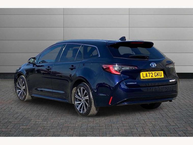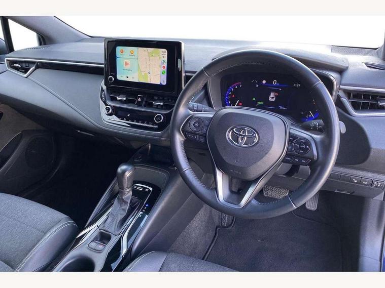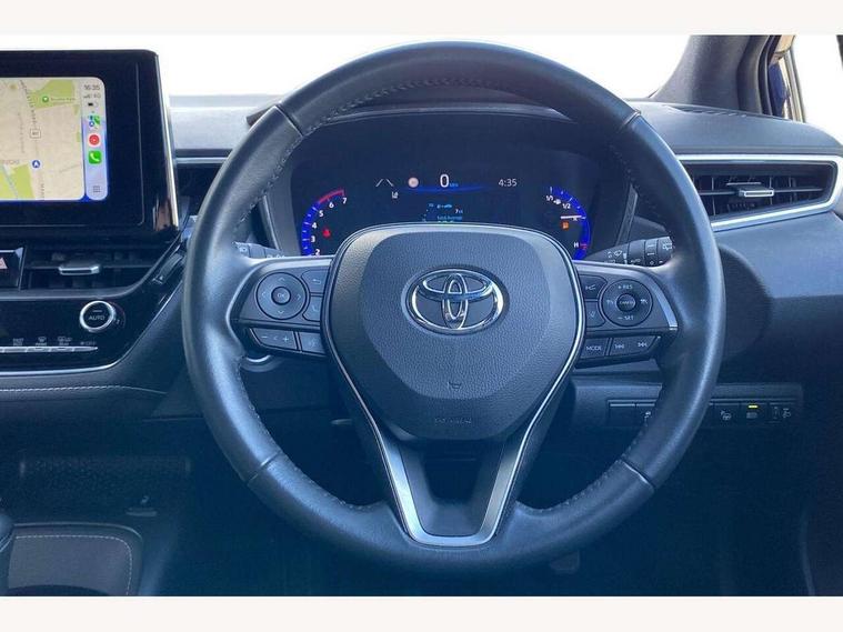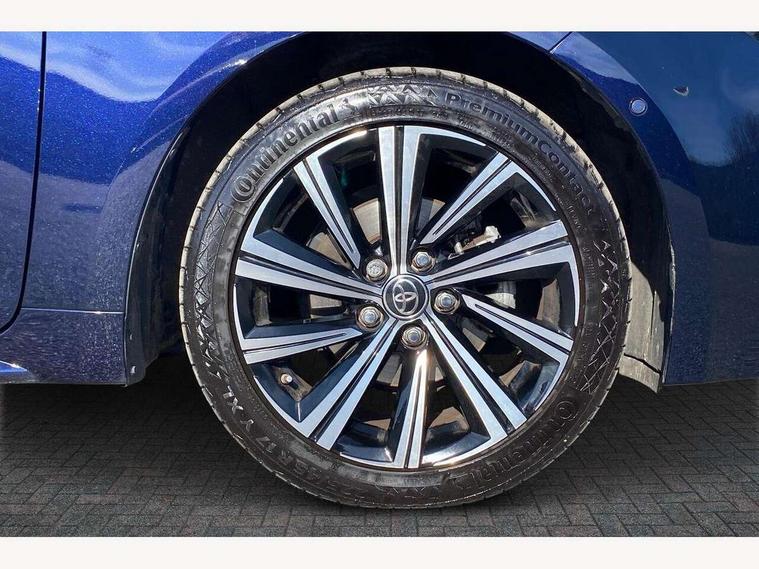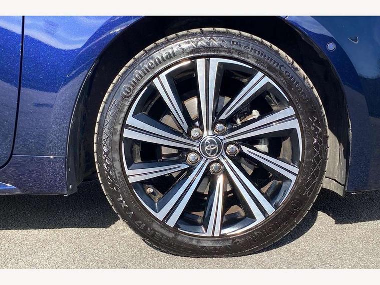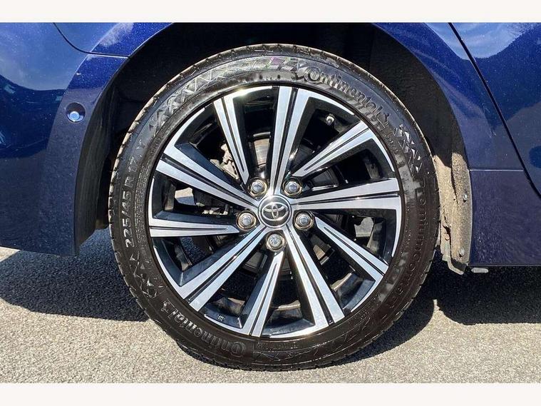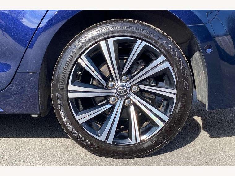 7" Multi information display screen, Bluetooth telephone connectivity, Connected car functionality upgrade, tracker, remote status and e-care, Door trim and centre console material, Dynamic radar cruise control (with RSA) including switch on steering wheel, E-call, Electrically assisted power steering, EV drive indicator, Intelligent park assist, Lane Departure Alert (LDA) switch on steering wheel, Memory on adjustable speed limiter, Push button start, Reversing camera, Smartphone integration with Apple CarPlay and Android auto, Gasoline particulate filter, Vehicle Stability Control (VSC), 6 speakers, 8" Touchscreen with MM19 Multimedia system and voice recognition, AM/FM radio, DAB Digital radio, Toyota touch 2 with go navigation system, USB and Aux in connectors + 12V front outlet, USB charging port in centre storage box, Aluminium roof rails, Anti-jam protection on power windows, Auto dimming inside rear view mirror, Auto up and down function on all power windows, Automatic folding mirrors, Automatic headlights with high beam assist, Black metallic surround on lower front grille, Black toyota logo in front, Body colour rear spoiler, Body coloured bumpers, Body coloured door mirrors, Body coloured outside door handles, Follow me home headlights, LED daytime running lights, LED front fog lights, LED Headlights, LED High mounted stop light, LED rear combi lights with LED lightguide, Noise reduction layer on front windows, Power adjustable heated door mirrors, Power front windows, Power rear windows, Privacy glass, Rain sensing wipers, Rear side wing doors, Rear window defogger, Rear window wiper, Reverse tilting door mirrors, Shark fin antenna, Time adjustment on intermittent wiper, Turning signal integrated indicators in door mirrors, Unique lower skirt, Unique side rocker with black insert, UV-filter on driver and passenger windows, 12v power outlet - luggage side, 3 rear headrests, 3 seat bench in 2nd row, 3 spoke leather steering wheel + gear knob, 60/40 split folding rear seat, Adjustable speed limiter switch on steering wheel, Audio, multimedia and telephone switches on steering wheel, Blue ambient interior illumination to centre tray, front cup holders and front door trim, Boot light, Boot underfloor storage, Clean air filter, Driver and front passenger personal light, Driver and passenger assist grip, Driver and passenger sun visor with mirror and light, Dual sided deck board in boot, Dual zone automatic air conditioning with ECO mode switch, Fabric/synthetic leather upholstery, Front and rear cup and bottle holders, Front and rear door pockets, Front head restraints, Front passenger seat, Heated driver and front passenger seats, Illuminated entry system in room lamp, ISOFIX seat fixing (2 fixings on rear outer seats), Leather gear shift with satin chrome on gear shift console, Leather style armrests, Manual height adjustable for driver and front passenger seat, Passenger seat back pocket, Pollen filter, Power adjustable lumbar support on driver seat, Power window switches with satin chrome inserts, Rear armrest with 2 cupholders, Rear passenger air vents, Rear passenger coat hooks (2), Rear passenger personal lights, Retractable tonneau cover with luggage partition net, Satin chrome inside door handles, Shopping bag hooks in luggage compartment, Side storage in boot, Sliding armrest on centre console box, Slow opening glovebox with lights, Tilt/telescopic steering column, Tonneau cover with under floor storage, Voice recognition switch on steering wheel, Whiplash Injury Lessening (WIL) feature (active headrest) for seats, Parking pack - Corolla, Toyota safety sense 2 pack - Corolla, 3x3 point rear seatbelts, Adjustable driver and front passenger seat belt extender to top anchor point, Anti lock braking system + Electronic brake force distribution, Brake assist function, Child locks on rear doors, Downhill Assist Control (DAC), Electronic parking brake, Emergency brake light signal (EBS), Front passenger airbag on/off switch, Front seatbelt reminder, HAC - Hill start assist control, Rear seat belt reminder, Seatbelt pretensioners and force limiters, Supplemental restraint system (SRS) 7 airbags - dual driver, dual side curtain, side impact and driver knee airbags, Traction control, Tyre pressure warning system, Acoustic vehicle alert system (AVAS), Alarm with motion sensor and immobilizer, Remote central locking + deadlocks, Smart entry, Satin chrome dash trim, Soft touch texture on upper dashboard, Stitching on lower dashboard, Tyre repair kit, Unique wheel finish with red wheel cap,