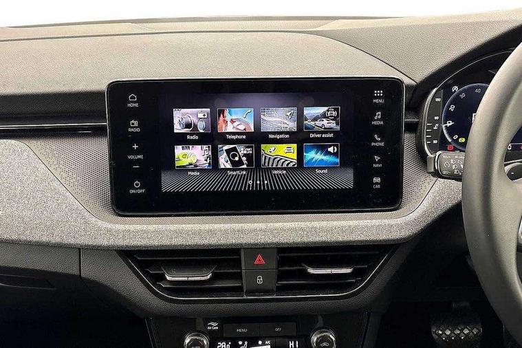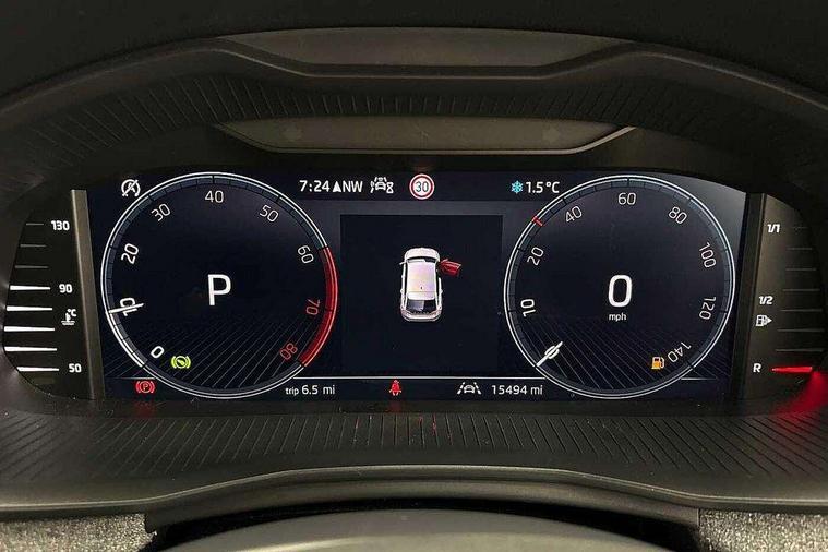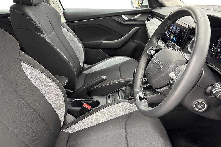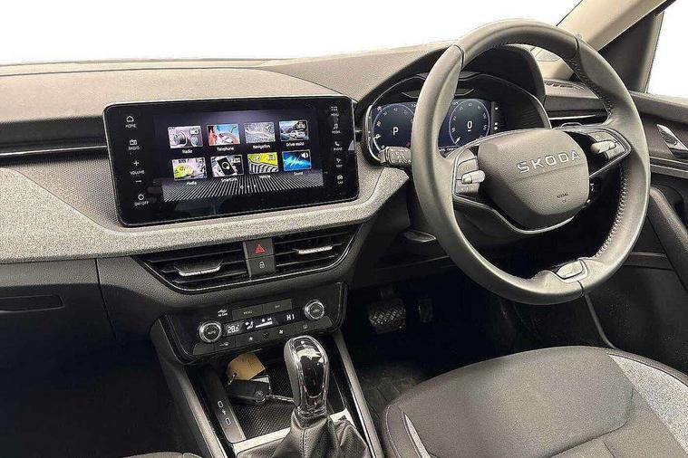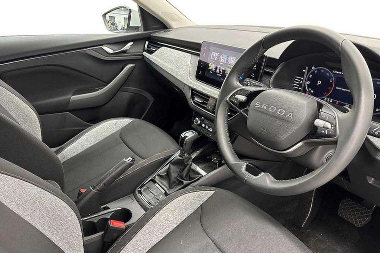 Advanced driver attention and drowsiness monitor, Bluetooth, e-Call (emergency call), Front assist system, PAS, Rear parking sensors, Rear view camera, Speed limiter, Tailgate, Traffic sign recognition, Virtual Cockpit - 10.25" digital display, Voice control system, Wireless smartlink, 4 USB C ports, 8 Speakers, 9.2" Skoda navigation display, DAB radio, Auto dimming rear view mirror, Automatic headlamp activation with Coming home and Leaving home feature, Automatic high/low beam, Body colour bumpers, Body colour door mirrors and handles, Chrome moulding around grille, Front and rear electric windows, Full LED headlights, Heated rear window, LED 3rd brake light, LED brake lights, LED daytime running lights, LED front turning lights, LED high beam, LED low beam, LED taillights, Rear LED fog light, Rear side wing doors, Rear wiper, Tinted windows, Unique dark chrome design logo on alloy wheels, 12V socket in luggage compartment, 3 seat bench in 2nd row, Black / Grey armrest stitching, Black hotstamping, Cargo elements, Chrome inner door handles, Door inserts in satin black, Driver and passenger sun visors with vanity mirror, Dual zone climate control, Front and rear roof lights, Front centre armrest, Front head restraints, Glasses storage in roof liner, Height adjustable driver seat, Height adjustable passenger seat, Ice scraper, Illuminated glove compartment, Inner circulation control with pollen filter, ISOFIX for front passenger seat, Isofix preparation for back seats, Leather gearknob and handbrake lever, Loft cloth upholstery, Luggage net under rear parcel shelf, Manual lumbar support for front seats, Net package and top tether hooks in boot space, Pearl grey ceiling, Pocket on the back of both front seats, incl. mobile phone pockets, Single front passenger seat, Skoda lettering on steering wheel, Textile floor mats, Third rear headrest, Ticket holder, Top tether for front passenger seat, Umbrella in driver's door, 3x3 point rear seatbelts, ABS, Child locks, Curtain airbags and front side airbags, Disc brakes, Driver and front passenger airbags, ESP, Hill hold control, Manual leather parking brake, One tone horn, Passenger airbag switch off function, Seatbelt reminder for driver and front passenger, Tyre pressure monitoring system, Anti theft alarm system with interior monitoring, backup horn and towing protection, Anti-theft wheel bolts, Remote central locking with 2 remote folding keys, SAFE function for remote central locking, Decord pad, door inserts Kota uni,