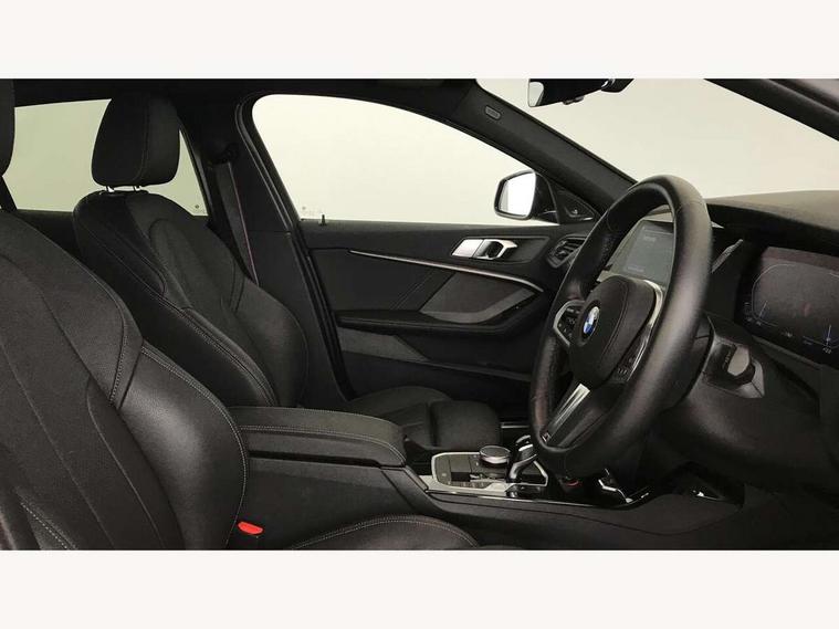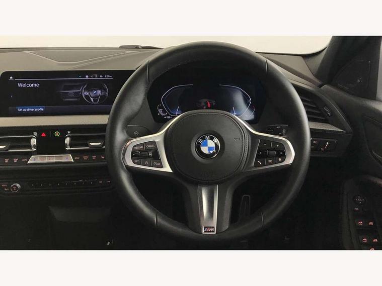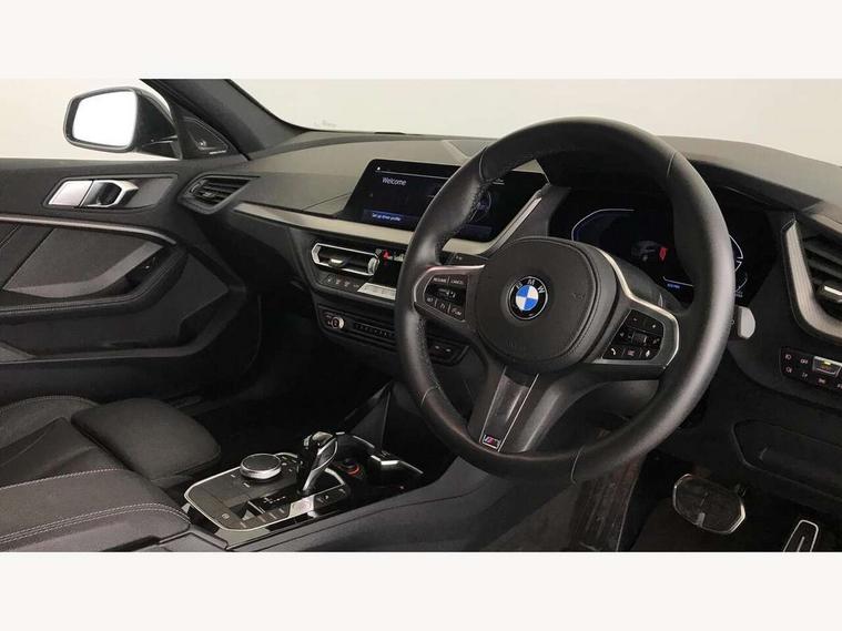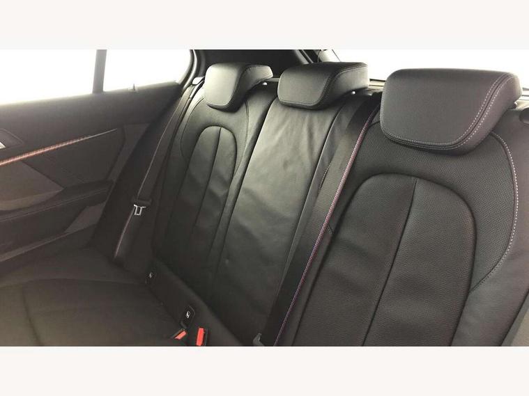 Active guard plus, Attentiveness assist, BMW Online services, BMW Teleservices, Check Control warning system for monitoring of lights and door/luggage compartment open warning, Connected eDrive Services, Eco pro mode, Integrated owners handbook, Oil sensor for level and grade, On board computer, Optimum shift indicator, Personal Profile, Pull away assistant, Speed limiter, Aluminium lightweight construction, Anti roll bar front and rear, Balancer shaft, Double VANOS, Drive Performance Control, Electronic differential lock, High precision injection, M sport suspension, Petrol Particulate Filter, VALVETRONIC engine management, Bluetooth audio streaming, DAB Digital radio, Auto dimming rear view mirror, Automatic headlight beam throw control, Automatic windscreen wipers and automatic headlight, Body colour door handles, Body colour mirror caps, Chrome 'M' logo side designation, Chrome exhaust tailpipe in single, round (Exhaust tailpipe, stainless steel - single, round), Chrome kidney grille frame with Satin Aluminium struts, Direction indicator side lights in exterior mirrors, Electric folding and anti dazzle exterior mirrors, Fading support, Follow me home headlights, Front and rear bumper system with replaceable deformation elements, Front and rear electric windows with open and close fingertip control, anti trap facility and comfort closing, Front door sill finishers in black plastic with M designation in metallic look, Green tinted heat protection glazing, Heated, electrically adjustable exterior mirror aspheric on driver side, convex on passenger side, High gloss shadowline window frame, Recess cover mirror frames and B/C pillar embelisher trim, High level third brake light, LED daytime running lights, LED eyebrow turn indicators, LED front fog lights, Lightweight engineering, Matt black air guide grilles, Model designation on right side of tailgate, Nearside reverse light in rear light cluster, Preparation for high beam assistant, Rain sensor including auto headlights activation, Rear fog lights, Rear window wiper, Shark fin antenna, Visible VIN plate, Welcome lighting, 12V power socket in centre console, 3 rear seat head restraints, 3 spoke M sports design leather steering wheel finished in nappa leather with specific M badge, Anthracite headlining, Anthracite Velour floor mats, Child seat ISOFIX attachment for two outer rear seats and front passenger seat with anchorage points, Conditioned based service, Dakota leather upholstery with perforation and contrast stitching, Driver and front passenger seat heating, Folding rear clothes hook, Four grab handles integrated in roof lining, Front and rear door pockets, Front and rear door pockets with bottle holders, Front and rear side armrest integrated into door trim, Front Armrest foldable with integrated storage compartment, Front sports seats with electric side bolster adjustment, Glove compartment, Height adjustable front head restraints, Manual adjust steering wheel, Multi-function controls for steering wheel, Storage compartment in centre console, Sun visors with vanity mirrors and insert tab, Two zone automatic air conditioning, Additional interior lighting pack - 1 Series, Connected pack professional - 1 Series, Extended storage pack - 1 Series, Interior lights pack - 1 Series, Luggage compartment pack - 1 Series, M Sport exterior styling aerodynamics pack - 1 Series, 2 tone horn, 3 point seatbelts on all seats, front pyrotechnic belt tensioners, stopper and belt force limiters, rear coded belt buckles, Airbags - front driver/passenger, front & rear curtain, front side, Anti lock braking system (ABS) with brake assist, BMW emergency call, Brake drying, Braking readiness, Crash sensor activating central locking release, hazard warning lights, fuel cut off, interior lighting + activation of safety battery terminal clamp, Driver and front passenger seat belt security check, Dynamic stability control + (DSC+), Dynamic Traction Control - DTC, Electrically operated hand brake, Front and rear disc brakes, Front passenger manual airbag deactivation, Seatbelt warning, Side impact protection, Tyre pressure monitoring system, Warning triangle and first aid kit, Automatic drive away locking facility, Central locking switch for all doors, fuel filler cap and luggage compartment, Deadlocking function system to all doors, Locking wheel bolts, Remote control with integrated key with High-gloss Black inlay and M designation and 1 button for open/ close lock, window, open luggage compartment, Start/stop button with comfort go keyless engine start and auto start stop deactivation button, Thatcham Cat.1 alarm and immobiliser, Contrast stitching on instrument panel, Reduced rolling resistance tyres,