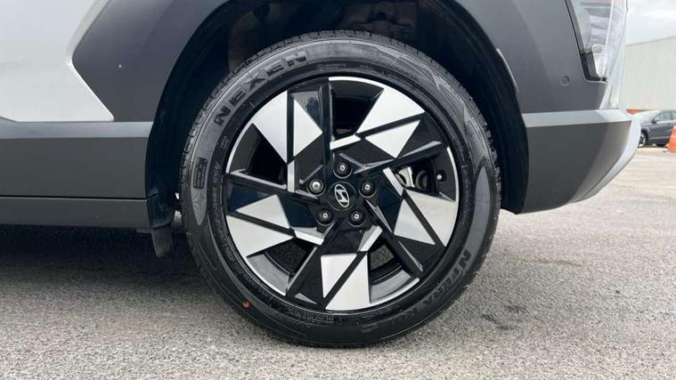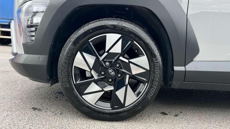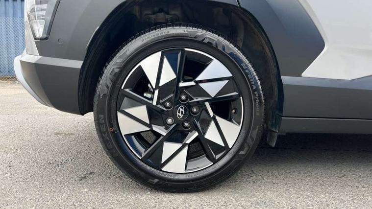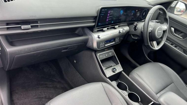 12.25" digital instrument cluster, 12.3" touchscreen centre console display satellite navigation with bluelink, live services and mapcare, Blind spot collision avoidance assist, Blind spot view monitor, Bluetooth connectivity with voice recognition, Driver status monitor (DSM), Driver supervision instrument cluster with 12.3" LCD display, eCall emergency call system, Feature on demand - Enabled, Forward collision avoidance assist (FCA 1.5) - Car, pededstrian, cycle and junction turning, Front parking sensor, HDA - Highway Drive Assist Level 1.5, Height adjustable power tailgate, Intelligent speed limit assist, Lane follow assist, Lane keep assist, Leading vehicle departure alert (LVDA), Parking Collision Avoidance Assist-Reverse (PCA-R), Parking distance warning - side, Parking system with rear camera and guidance system, PAS, Rear cross traffic collision avoidance (RCCA), Rear parking sensor, Rear view camera with dynamic guidelines, Roadside assistance, Safe exit warning (SEW), Smart cruise control with stop and go functionality, Surround view monitor, Wireless phone charging pad, Wireless Smartphone Integration includes Apple CarPlay and Android auto, 2 front USB C and 2 rear USB C charging points, Bose Premium Audio system with 7 premium speakers + subwoofer, DAB Digital radio, Steering wheel audio, phone and cruise controls, Auto dimming rear view mirror, Automatic headlights with dusk sensor, Automatic windscreen wipers with rain sensor, Black painted wheel arch inserts, Body colour exterior door handles, Body coloured door mirrors, Door mirror LED indicator lights, Electric front windows with anti-trap mechanism and one touch control, Electric rear windows, Electric sunroof, Electrically adjustable and heated door mirrors, Horizon centre LED DRL, LED projector headlights, LED taillights, LED upper and lower rear lights, Power folding door mirrors, Privacy glass - Rear windows and tailgate, Rain sensor, Rear roof spoiler with integrated LED brake light, Rear side wing doors, Rear skid plate - silver, Rear wiper, Roof rails, Solar glass with front door glass and windscreen, Tinted glass in front and rear doors, Windscreen auto defog function, 12V power outlet in front console, 2 zone climate control, 3 seat bench in 2nd row, 40/20/40 split folding rear seat, Adjustable head restraints, Ambient lighting, Driver and passenger front seat pockets, Driver's seat electric adjustments, Driver's seat lumbar support, Driver/passenger sunvisors and illuminated vanity mirrors, Floor mats, Front passenger's seat electric adjustments, Heated front seats, Heated rear seats, Heated steering wheel, Height/reach adjustable steering column, Leather steering wheel, Leather upholstery, LED centre interior light, LED front interior light, Luggage compartment LED lighting, Luggage net, Luggage shelf, Metal paint effect interior door handles, Rear centre armrest with cupholders, Shift by wire SBW, Single front passenger seat, Ventilated front seats, Vertical adjustment rear head restraints, Trailer wiring package - Kona, Airbag - front, front side, curtain and centre front airbag, Anti-lock brake system (ABS), Childproof rear door locks, Downhill brake control, Electric parking brake, Electronic stability control, Fixed 3 point for second row centre passenger seatbelt, Hill start assist control (HAC), Rear seat alert, Tyre pressure monitoring system, Alarm/immobiliser, Rear occupant alert, Remote central locking, Smart key with keyless entry and start/stop button, Five year annual vehicle health checks, 18" Alloy wheels, Temporary mobility kit (TMK),