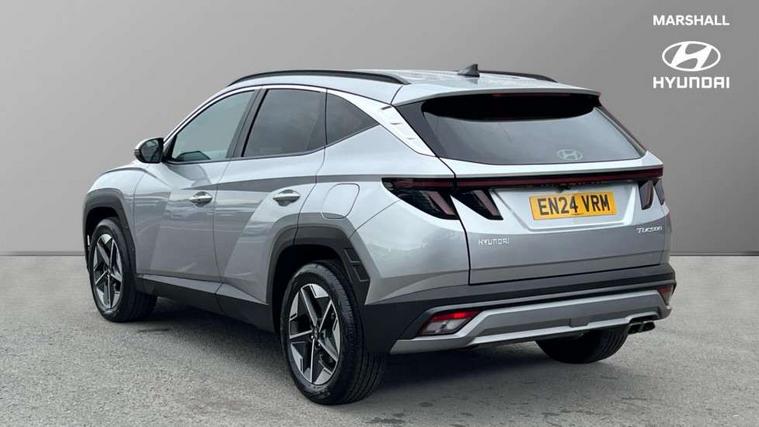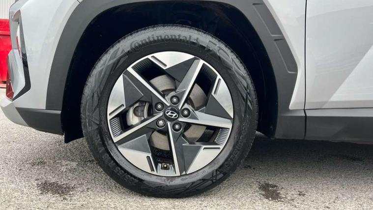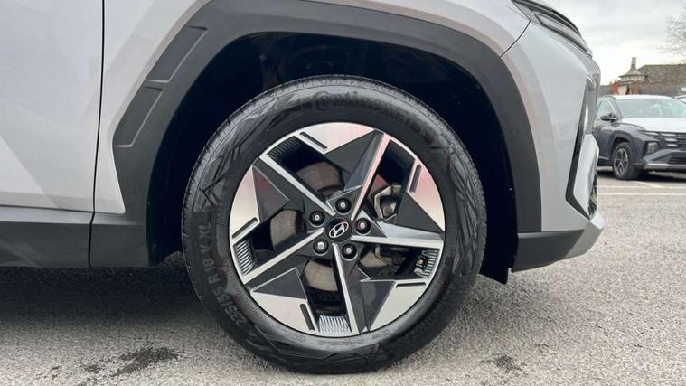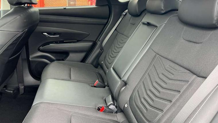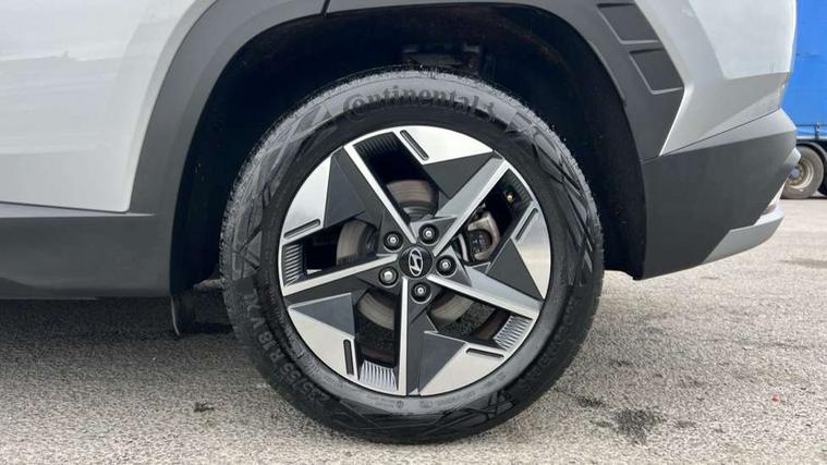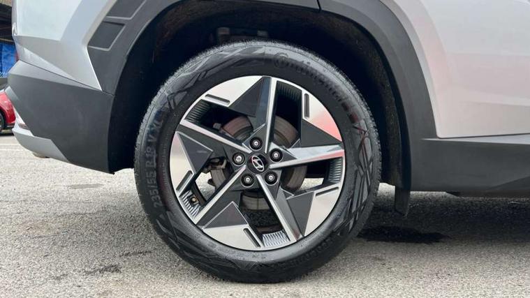 12.3" LCD display with driver's supervision instrument cluster, 12.3" widescreen navigation with bluelink and mapcare, Bluetooth system, Cruise control, Digital clock, Drive mode selector, Driver attention warning, E-call, Emergency stop signalling system, Forward Collision Avoidance Assist (FCA) - Car, Pedestrian and Cycle, Forward Collision Avoidance Assist Junction Turning (FCAJX), Front and rear parking sensors, Hyundai road side assistance, Intelligent speed limit assist, Lane follow assist, Lane keep assist, Over the air updates(OTA), PAS, Rear camera and guidance parking system, Rev counter, Smart power tailgate, Tailgate open warning light, Trip computer, Trip odometer, Voice recognition, Water temperature gauge, Windscreen washer fluid sensor and warning indicator, Wireless Apple CarPlay/Android Auto, Wireless phone charging pad, 2 front and 2 rear USB-C ports, DAB Digital radio, Krell premium audio system with 8 speakers and subwoofer, Steering wheel mounted audio/phone controls, Adjustable intermittent front windscreen wipers with aero wiper blade, Auto dimming rear view mirror, Automatic defog system, Automatic headlights with dusk sensor, Automatic windscreen wipers with rain sensor, Black wheel arches, Body colour bumpers, Body colour door mirrors with integrated indicators, Body colour exterior door handles, Electrically adjustable, heated and power folding door mirrors, Follow me home headlights, Front and rear electric windows with anti-trap mechanism and one touch control, Front fog lights, LED daytime running lights, LED Headlights, LED rear lights, Positioning Lights - LED, Privacy glass - Rear windows and tailgate, Rear side wing doors, Rear wash/wipe with intermittent wipe setting, Roof rails, Soft touch rear door paneling, Tinted glass with windscreen shade band, Trailer stability assist, 12V power outlets in front console and luggage compartment, 3 seat bench in 2nd row, 40/20/40 split folding rear seat, 64 colours interior ambient lighting, Adjustable head restraints (Up and down), Cupholders in rear armrest, Door courtesy lights, Driver and passenger sunvisors with illuminated LED vanity mirrors, Driver's seat electric adjustments, Dual zone climate control, Front and rear door pockets, Front armrest with storage box, Front centre console and door bottle holders, Front passenger's seat electric adjustments, Heated front seats, Heated rear seats, Heated steering wheel, Height/reach adjustable steering column, Illuminated/air conditioned glove compartment, ISOFIX child seat anchorage points attached on outer rear seats, Leather wrapped steering wheel and gear knob, LED interior lighting, Luggage compartment lighting, Luggage cover, Luggage hooks, Luggage net, Map and reading lights, Premium cloth/leather upholstery, Rear seat remote folding function, Rear side window sunblind, Reclining rear seats, Retractable load cover, Single front passenger seat, Sunglasses holder, Touch sensitive climate controls with temperature dials, TUCSON branded metal door scuff plate, Underfloor boot compartment, Trailer wiring package - Tucson, 3x3 point rear seatbelts, Active bonnet, Airbag - Front, front side, curtain and centre front airbags, Anti-lock brake system (ABS), Brake assist function, Childproof rear door locks, Curtain airbag roll over sensor, Downhill brake control, Electric parking brake, Electronic stability control, Front and rear seatbelt reminder, Front passenger airbag deactivation switch, Front seatbelt pretensioners, Hill start assist control (HAC), Multi-Collision braking, Outer rear seatbelt height adjustment, Seatbelt height adjustment for front seats, Traction control, Tyre pressure monitoring system with individual tyre pressure display - TPMS, Vehicle stability management, Deadlocks, Immobiliser, Locking wheel nuts, Remote control central locking, Smart key with keyless entry and engine start/stop button, Speed sensitive auto door locking, Thatcham category 1 alarm, 18" Alloy wheels, Tyre repair kit,