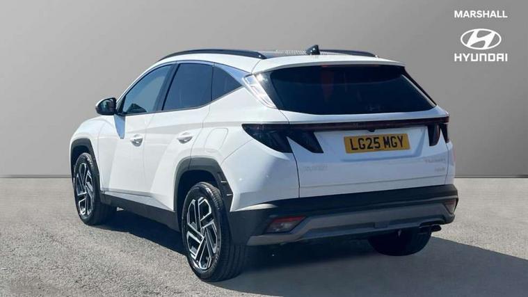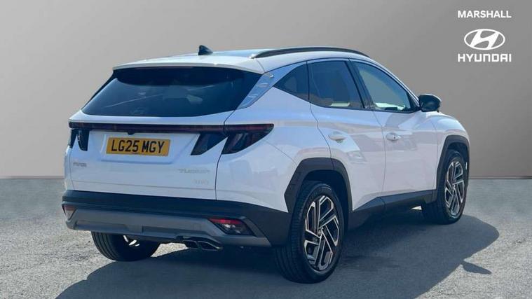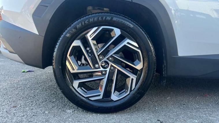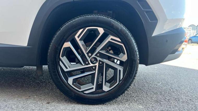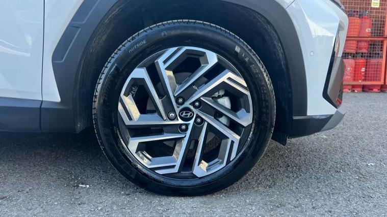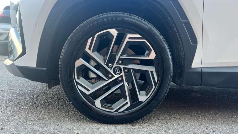 12.3" LCD display with driver's supervision instrument cluster, 12.3" widescreen navigation with bluelink and mapcare, Blind spot view monitor, Bluetooth system, Cruise control - smart adaptive speed control with stop and go function, Digital clock, Drive mode selector, Driver attention warning, E-call, Emergency stop signalling system, Forward Collision Avoidance Assist (FCA) - Car, Pedestrian and Cycle, Forward Collision Avoidance Assist Junction Turning (FCAJX), Front and rear parking sensors, Front, rear and side parking distance warning, Highway Driving Assist (HDA), Hyundai road side assistance, Intelligent speed limit assist, Lane follow assist, Lane keep assist, Over the air updates(OTA), Parking collision avoidance assist (PCA), PAS, Rear camera and guidance parking system, Rev counter, Smart power tailgate, Surround view monitor, Tailgate open warning light, Trip computer, Trip odometer, Voice recognition, Water temperature gauge, Windscreen washer fluid sensor and warning indicator, Wireless Apple CarPlay/Android Auto, Wireless phone charging pad, 2 front and 2 rear USB-C ports, DAB Digital radio, Krell premium audio system with 8 speakers and subwoofer, Steering wheel mounted audio/phone controls, Adjustable intermittent front windscreen wipers with aero wiper blade, Auto dimming rear view mirror, Automatic defog system, Automatic headlights with dusk sensor, Automatic windscreen wipers with rain sensor, Black wheel arches, Body colour bumpers, Body colour door mirrors with integrated indicators, Body colour exterior door handles, Electric tilt/slide panoramic sunroof, Electrically adjustable, heated and power folding door mirrors, Follow me home headlights, Front and rear electric windows with anti-trap mechanism and one touch control, Front fog lights, LED 3rd brake light, LED daytime running lights, LED rear lights, Matrix LED headlights, Positioning Lights - LED, Privacy glass - Rear windows and tailgate, Rear side wing doors, Rear wash/wipe with intermittent wipe setting, Roof rails, Tinted glass with windscreen shade band, Trailer stability assist, 12V power outlets in front console and luggage compartment, 3 seat bench in 2nd row, 40/20/40 split folding rear seat, 64 colours interior ambient lighting, Adjustable head restraints (Up and down), Cupholders in rear armrest, Door courtesy lights, Driver and passenger sunvisors with illuminated LED vanity mirrors, Driver's seat electric adjustments, Driver's seat memory, Front and rear door pockets, Front armrest with storage box, Front centre console and door bottle holders, Front passenger's seat electric adjustments, Heated front seats, Heated rear seats, Heated steering wheel, Height/reach adjustable steering column, Illuminated/air conditioned glove compartment, ISOFIX child seat anchorage points attached on outer rear seats, Leather upholstery, Leather wrapped steering wheel and gear knob, Luggage compartment lighting, Luggage cover, Luggage hooks, Luggage net, Map and reading lights, Rear seat remote folding function, Rear side window sunblind, Reclining rear seats, Retractable load cover, Single front passenger seat, Sunglasses holder, Three zone climate control, Touch sensitive climate controls with temperature dials, TUCSON branded metal door scuff plate, Underfloor boot compartment, Ventilated front seats, Trailer wiring package - Tucson, 3x3 point rear seatbelts, Active bonnet, Airbag - Front, front side, curtain and centre front airbags, Anti-lock brake system (ABS), Brake assist function, Childproof rear door locks, Curtain airbag roll over sensor, Downhill brake control, Electric parking brake, Electronic stability control, Front and rear seatbelt reminder, Front passenger airbag deactivation switch, Front seatbelt pretensioners, Hill start assist control (HAC), Multi-Collision braking, Outer rear seatbelt height adjustment, Seatbelt height adjustment for front seats, Traction control, Tyre pressure monitoring system with individual tyre pressure display - TPMS, Vehicle stability management, Deadlocks, Immobiliser, Locking wheel nuts, Remote control central locking, Smart key with keyless entry and engine start/stop button, Speed sensitive auto door locking, Thatcham category 1 alarm, 19" Alloy wheels, Tyre repair kit,