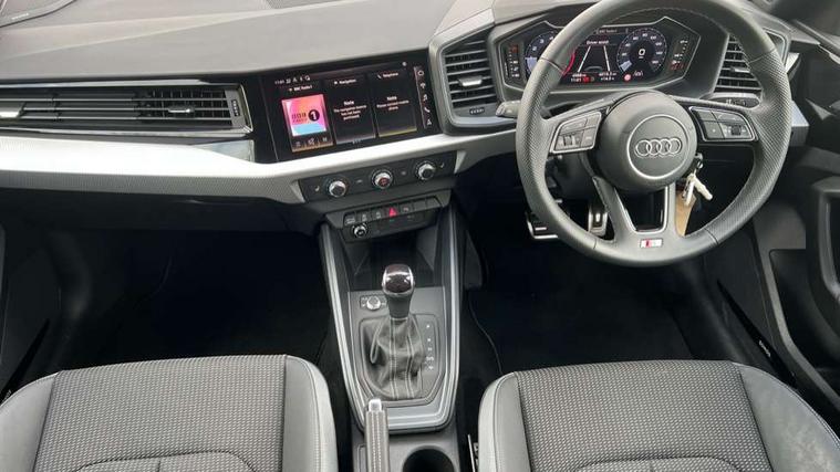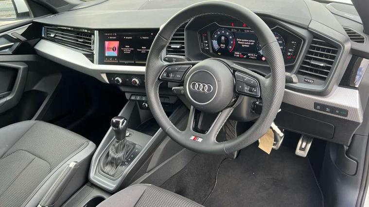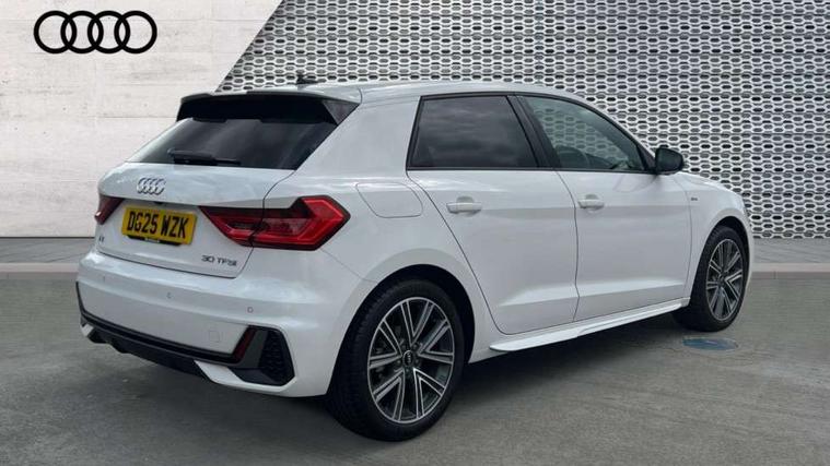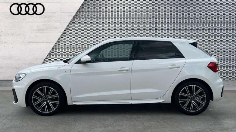 10.25" Digital instrument cluster display classis style instrument dials + speed, odometer, time, outside temperature, telephone menu + fuel level warning, Advanced driver attention and drowsiness monitor, Audi connect emergency call and service, Audi drive select, Audi remote connect and control, Audi smartphone interface, Bluetooth interface, Camera based traffic sign recognition, Cruise control, Driver's information system, Electromechanical power steering, Lane departure warning system, Rear parking sensor, Service interval indicator, Speed limiter, Start stop system with recuperation, Voice control system, Washer fluid level indicator, Sports suspension, 2 x USB type C connection points, 6 loudspeakers, DAB Digital radio, MMI radio plus with 10.1" colour MMI display screen and MMI touch, Auto dimming rear view mirror, Body coloured door mirrors, Door sill trims with aluminium inlays and S line logo in front, Electric front and rear windows, Electrically adjustable, heated, folding door mirrors with integrated LED side indicator, Front side air inlets in grained matt black and C frame in anthracite black, Headlight cleaning system, Heat insulating glass windscreen and side windows, Heated rear windscreen, High level LED brake light, LED daytime running lights, LED headlights with range control LED rear lights + dynamic rear indicators, Light and rain sensors, Privacy glass, Radiator grille and rear diffuser in matt anthracite black, Radiator protective grille frame in matt aluminium silver, Rear fog lights, Rear side wing doors, Rear wiper, S line badges on front wings, Side front spoiler lips in grained matt black, 12V socket in centre console with two cup holders, 3 rear seats with headrests, 3 seat bench in 2nd row, 3 spoke leather multi-function plus steering wheel features S badging and grips in perforated leather with contrast stitching, 40:60 Split folding rear seat or fully collapsed, Black cloth headlining, Front and rear velour black floor mats with contrast stitching in fine silver, Front head restraints, Front passenger seat, Height and reach adjustable steering wheel, Interior lighting includes roof module, front and rear reading lights and right luggage compartment lighting, ISOFIX child seat mounting for front passenger and outer rear seats including top tether attachment point of outer rear seats, Leather gear knob with aluminium trim, Leather handbrake grip, Manual air conditioning, Manual height adjustable for driver and front passenger seat, Manually adjustable lumbar support in front seats, Stainless steel pedals, Ambient lighting package - A1, Luggage compartment pack - A1, S line exterior styling pack - A1 Sportback, 3x3 point rear seatbelts, Audi pre-sense front with pedestrain and cyclist recognition, Brake assist function, Driver and front passenger airbag with front side and head airbags, Electronic Stability Control including ABS, EBD, ASR and EDL, Front passenger airbag deactivation switch, Hill hold assist, Manual rear child locks, Seatbelt height adjustment for front seats, Seatbelt monitoring, Tyre pressure loss indicator, Warning triangle and first aid kit, Anti theft alarm, Anti theft wheel bolts, Immobiliser, Remote control key with safelock, Aluminium trim for control switches, air vents and digital instrument cluster, Black dashboard, Silver grey inlays polygon structure in diamond paint finish, Structured grey accent surfaces insert of air vents, interior door handle recesses and centre console in quartz paint finish,