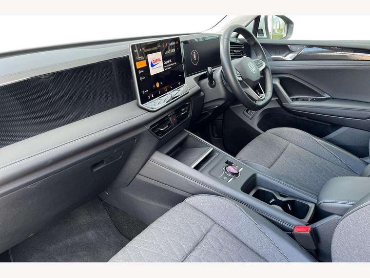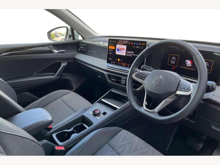 Adaptive cruise control (ACC), Advanced driver attention and drowsiness monitor, Bluetooth mobile phone interface, Car2X technology, Digital Cockpit Pro - 10.25" high resolution dash display screen with customisable menus and information, Dynamic road sign display, E-Sim card for online connectivity, eCall emergency call service, Front Assist - Autonomous emergency braking with pedestrian and cyclist monitoring, Lane change system, Side assist, Rear traffic alert and Exit warning system, Lane keeping system Lane Assist, Multifunction front facing camera, Oncoming vehicle braking when turning including swerve support, Park assistance plus with front and rear parking sensors, Power assisted steering with speed sensitive, Start/stop system with regenerative braking, Warning signal and warning light for front and rear seatbelts not fastened, Wireless App-Connect, Front wheel drive, Digital radio reception (DAB), Diversity antenna for FM reception, Ambient lighting with logo projection, Auto dimming interior rear view mirror, Automatic headlight control system, Body coloured bumpers and air intake with chrome trim, Body coloured door handles, Body-coloured exterior mirror housings, Coming/leaving home lighting function, Heat insulating glass in side and rear windows, Heat insulating windshield, Heated rear window, High level 3rd brake light, Illuminated door handle recesses, Illuminated lightline between headlamps, Rain sensor windscreen wipers, Rear fog light on one side, reversing light on both sides, Rear side wing doors, Rear wiper, 12V outlet in center console rear and in luggage compartment, 12V socket in centre console, 3 bench rear seats in 2nd row, Air care climatronic 3 zone air conditioning system with rear air conditioning control panel, Carpet mats, front and rear, Centre console with illuminated storage compartment with sliding cover and two drinks holders, Ceramique headlining, Door and side trim panel in foam film and woven fabric, Front centre armrest, ISOFIX anchors for child seats on outer rear seats and front passenger seat compatible with i-Size, Mechanical rear seat release, Power adjustable lumbar support in front, Rear bench seat, split folding, longitudinally movable and folding with load-through hatch and centre armrest, Safety optimised front head restraints, Single front passenger seat, Sun visors with illuminated vanity mirrors, Three rear head restraints, Variable luggage compartment floor, Comfort package with park assist plus and Safelock - Tiguan, Design package - Tiguan, 3 point seat belt for centre rear seats, 3 Point seat belts in front with pretensioners, 3 point seatbelts in outer rear with ECE label, Driver and front passenger airbag with front passenger airbag deactivation, Electronic parking brake with auto hold, Front and rear curtain airbags, Front and rear side airbags, Front centre airbag, Front disc brakes, Manual child proof rear door locks, Rear disc brakes, Two tone horn, Warning triangle, Anti theft wheel bolts, Soul instrument panel,
