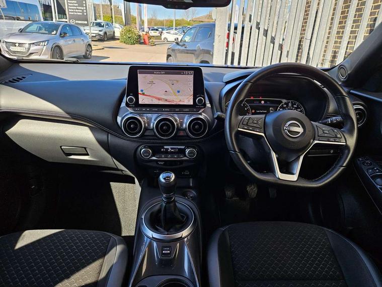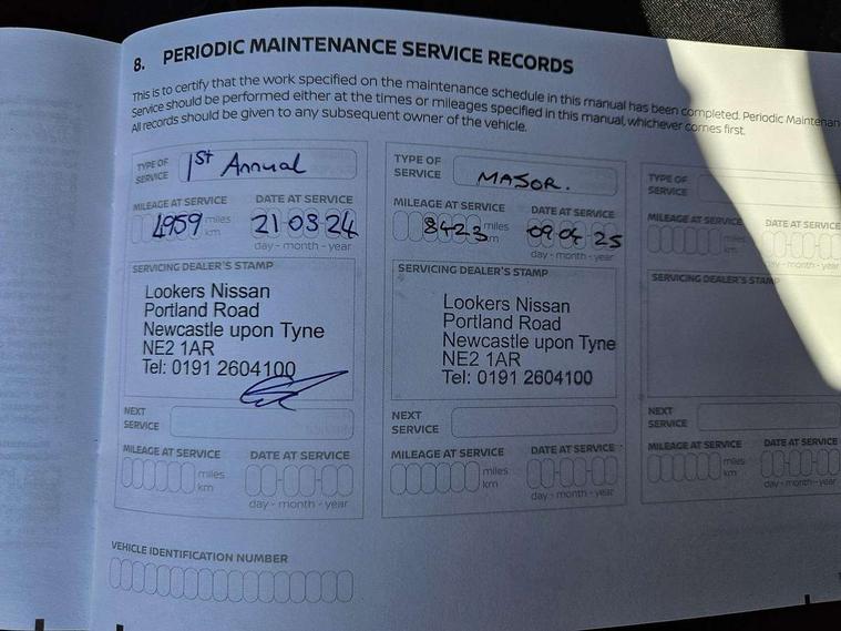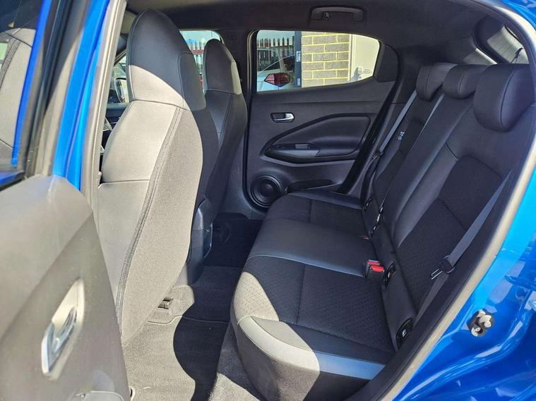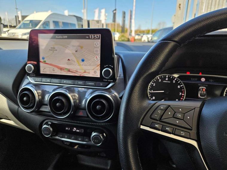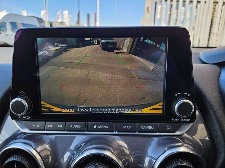 7" full colour TFT screen combimeter, Apple CarPlay and Google Android auto, Drive modes select (Eco, normal and sport), Emergency and breakdown call, Front parking sensor, Idle start/stop system, Intelligent lane intervention, Lane departure warning system, Nissan connect 8" touch screen entertainment system, Nissan connect nav with TomTom traffic, Nissan connect services and Wifi connection, Outside temperature sensor, Power Steering, Rear parking sensor, Traffic sign recognition, Trip computer, Voice recognition, Gasoline particulate filter, 6 speakers, Bluetooth system, USB, Aux-in and 12V socket, DAB Digital radio, Rear console USB port, 3rd brake light, Auto dimming interior rear view mirror, Auto headlights, Automatic hazard signal with emergency stop signal, Body colour bumpers, Body colour door handles, Electrically adjustable door mirrors with integrated indicators, Follow me home headlights, Front and rear electric window with one touch driver window, Heated and auto folding door mirrors, High beam assist, LED daytime running lights, LED headlamps, LED rear fog lamp, LED rear lamps, Rain sensor windscreen wipers, Rear privacy glass, Rear side wing doors, Rear spoiler, Rear wiper, Shark fin roof antenna in Pearl Black, Three blink turn signal, 3 height adjustable rear headrests, 3 seat bench in 2nd row, 60/40 split folding rear seat, Automatic climate control, Card holder on driver sunvisor, Cloth upholstery with black and metallic grey syntech leather inserts, Driver and passenger sliding and reclining seats, Driver side rear coat hanger, Driver/passenger sunvisors and vanity mirrors, Front and rear cabin lighting, Front armrest, Front door pockets with bottle holders, Front head restraints, Front/rear passenger grab handles, Grey synthetic leather kneepad, Height adjustable driver's seat, Internal chrome door handles, Leather gearshift knob, Leather steering wheel, Luggage board, Luggage space lighting, Monoform sporty seats, Multifunction steering wheel, Rear door bottle holders, Single front passenger seat, Telescopic steering wheel adjustment, Two cupholders in front centre console, Two rear isofix child seat anchorage points with top tether, Welcome light and console tray ambient lighting, ABS with EBD and brake assist, Active ride control, Active Trace Control, Driver and passenger airbags, Driver and passenger side airbags, Electric handbrake with auto hold function, Electronic Stability Programme (ESP), Front and rear curtain airbags, Height adjustable seatbelts, Hill start assist, Intelligent emergency braking with pedestrian and cyclist recognition, Rear door child safety locks, Seatbelt reminder for driver/front passenger and rear seats, Single tone horn, Three 3 point rear seatbelts, Traction control, Tyre pressure monitoring system, VDC Dynamic Vehicle Control, Ventilated rear brake discs, Alarm, Immobiliser, Intelligent key and start push button with walk away lock and approach unlock functions, Remote central locking,