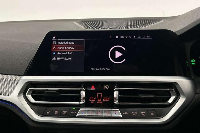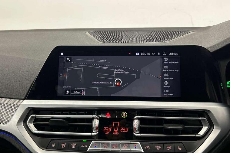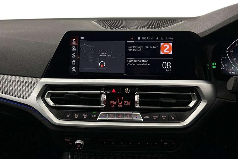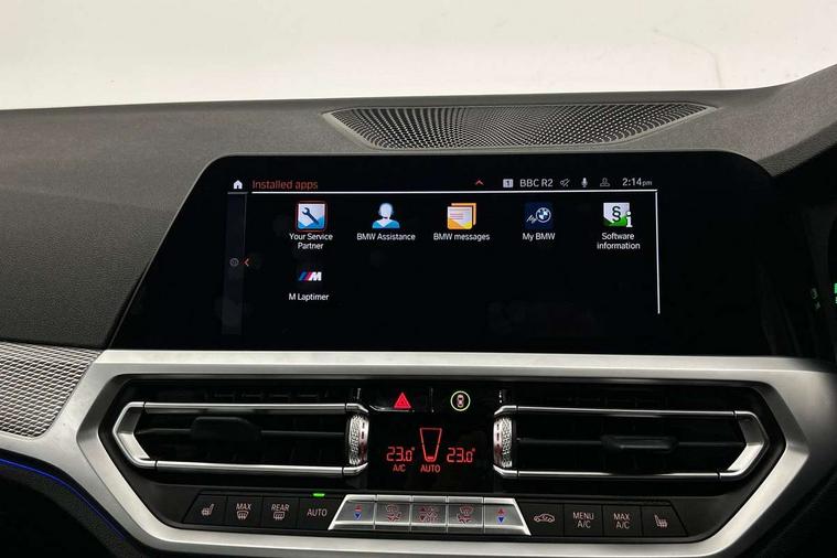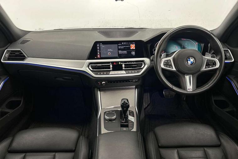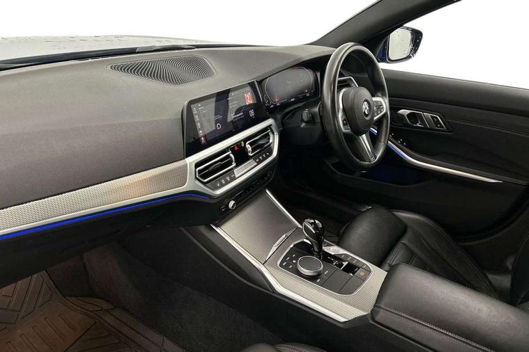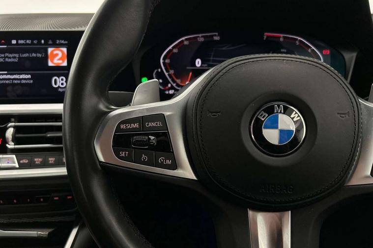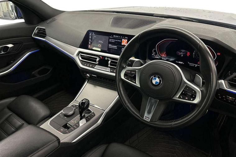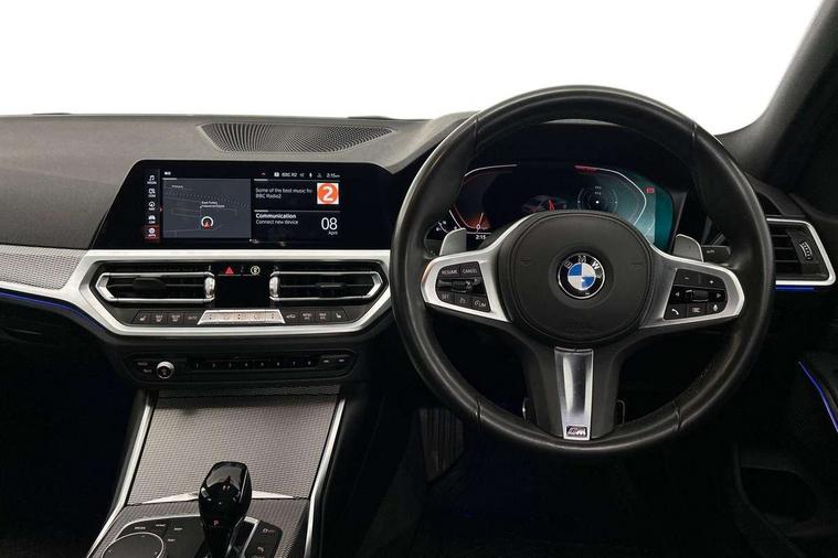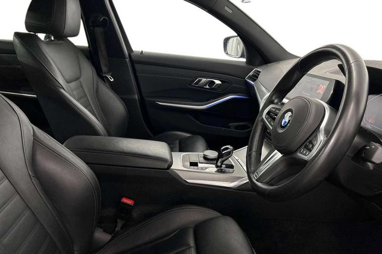 Active guard plus, Attentiveness assist, Auto start-stop, BMW ConnectedDrive online services, BMW iDrive controller on centre console, BMW Live Cockpit Professional sat nav system including 10.25" high resolution display and Intelligent Voice Assistant, BMW service history, BMW Teleservices, Brake pad wear indicator in front and rear, Check Control warning system for monitoring of lights and door/luggage compartment open warning, Condition based service, Electric power steering with Servotronic steering optimised at all speed ranges, Instrument cluster with speedometer with mph readout, tachometer, fuel gauge and oil temperature gauge, Integrated owners handbook, Oil sensor for level and grade, warning by check control system, On board computer - average speed+fuel consumption, service interval, clock/date, odometer/trip meter, outside temperature display and ice warning, Optimum shift indicator, Personal Profile - automatic lock when driving away selectable, Variable sport steering, Balanced 50/50 weight distribution, Battery cut-out switch, Drive performance control - ECO PRO, comfort and sport modes, Electronic differential lock control (EDLC), Larger capacity fuel tank, M sport suspension, Petrol Particulate Filter, Sport automatic transmission with steering-wheel mounted gearshift paddles and launch control, Stroke dependent dampers, DAB tuner, Electronic service booklet, Acoustic glazing, Active airstream chrome frame kidney grille with 8 high gloss black vertical slats, Automatic headlight beam throw control with load dependent regulating reaction, dynamic compensation of braking dive and acceleration squat, Black roof mouldings, Body colour - fuel filler flap, front and rear bumpers, door handles and mirror caps with integrated turn indicator + bottom segment in matt black, Dynamic brake lights, Electric windows - front and rear, with open/close fingertip control, anti-trap facility and comfort closing, Exhaust tailpipe - split left and right, Extended LED headlights, Exterior mirrors - electrically folding with anti-dazzle, Fading support, Front and rear bumper system with replaceable deformation elements, Front black door sill finishers with BMW designation, Green tinted heat protection glazing, High gloss shadow line exterior trim, Interior rear view electrochromatic mirror with automatic anti dazzle function, LED front fog lights, Lightweight engineering, M designation on front side panels, left and right, Matt black exterior B pillar, Model designation on right side of tailgate, Rain sensor with automatic headlight activation, Rear wiper, Shark fin antenna, Two part LED tailights in L-shape with components in smoked glass, brake light, LED turn indicator and rear fog light, Visible VIN plate, Welcome lights in interior and door handle area, Windscreen wipers with integrated washing jets, 12V power socket in front storage compartment, 2 front cupholder in centre console with clamping elements and matt black inlay, 3 rear seats with non folding headrests with 3 point seat belts, 3 zone automatic air conditioning, 4 pieces lashing eyelets in luggage compartment, 40:20:40 split folding rear seat with loading system, Ambient lighting with welcome carpet light, Anthracite headlining, Armrest integrated in front and rear door trim + front centre console armrest, Centred top Luggage compartment lights, Four grab handles integrated in roof lining, Front and rear door exit lighting (left / right), Front and rear door pockets, Front and rear reading lights, Front and rear velour floor mats, Front head restraints, Front sport seats, Heated driver and front passenger seats, Height adjustable mechanically and infinitely variable steering column, Illuminated armrest storage compartment, Illuminated glove compartment with separate small compartment, Interior lighting - front centre over interior mirror with soft light, rear centre and front and rear footwell lighting, M Sport multifunction leather steering wheel, Make-up mirror lights, Rear centre armrest with 2 cupholders, Rear centre console with storage compartment and ventilation grille, Sunvisors with vanity mirrors and ticket pocket, Toolkit located in luggage compartment, Connected pack professional - 3 Series Saloon/Touring, M Aerodynamics pack - 3 Series Saloon/Touring, 2 tone horn, BMW emergency call, Brake energy regeneration, Braking pre-tensioning, Child proof locking system in rear door, Child seat ISOFIX attachment rear outer seats, Coasting in idle in ECO PRO mode, Crash sensor activating of airbags, Unlocking doors, hazard warning lights, interior light, safety battery terminal, Driver and front passenger side airbags, integrated in the door side seat backrest bolsters for all seat variants, Driver/Front Passenger airbags, Dry braking, Dynamic brake control, Dynamic stability control + (DSC+) - Anti-lock Braking System (ABS) with brake assist and cornering brake control + Automatic Stability Control (ASC), Dynamic Traction Control - DTC, Electric parking brake including automatic hold function and automatic release of the parking brake when driving off, Front passenger manual airbag deactivation, Head airbags for all 4 outer seats, Hill start assist, Seat belt security check for driver and front passenger, Side impact protection, Three 3 point seat belts on all seats including front belt stopper, pyrotechnic belt tensioners and belt force limiters, Tyre pressure monitoring with three level warning strategy, Ventilated front and rear disc brakes, Warning triangle and first aid kit, Alarm system (Thatcham 1) with remote control and electronic engine immobiliser, Central locking switch for all doors, fuel filler cap and luggage compartment, Remote control with integrated key one button open/close vehicle and windows, sole opening of the luggage compartment lid and panic mode, Start/stop button with Comfort Go keyless engine start and auto Start/stop deactivation button, Vehicle key with M specific designation, Reduced rolling 