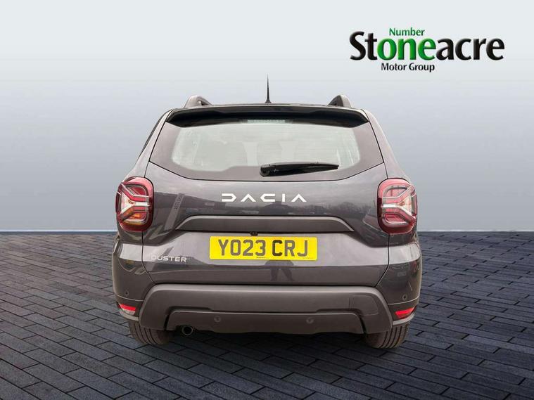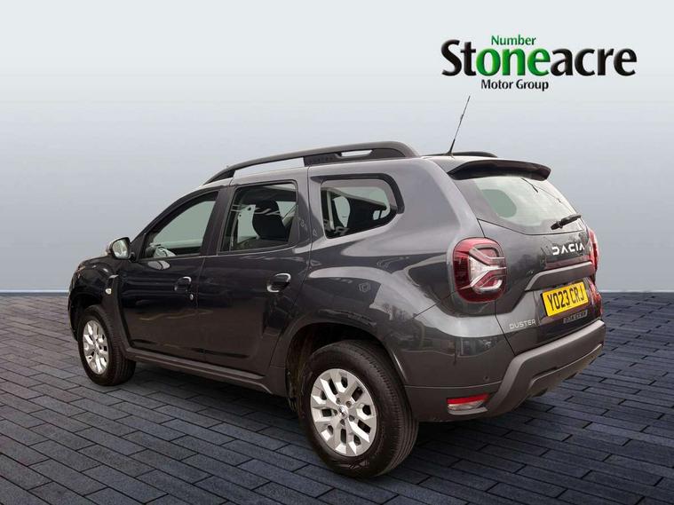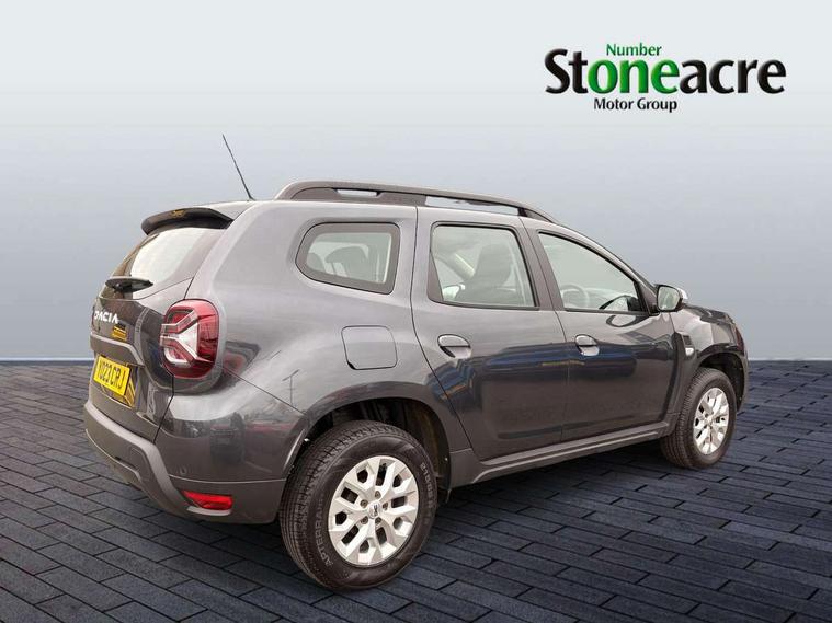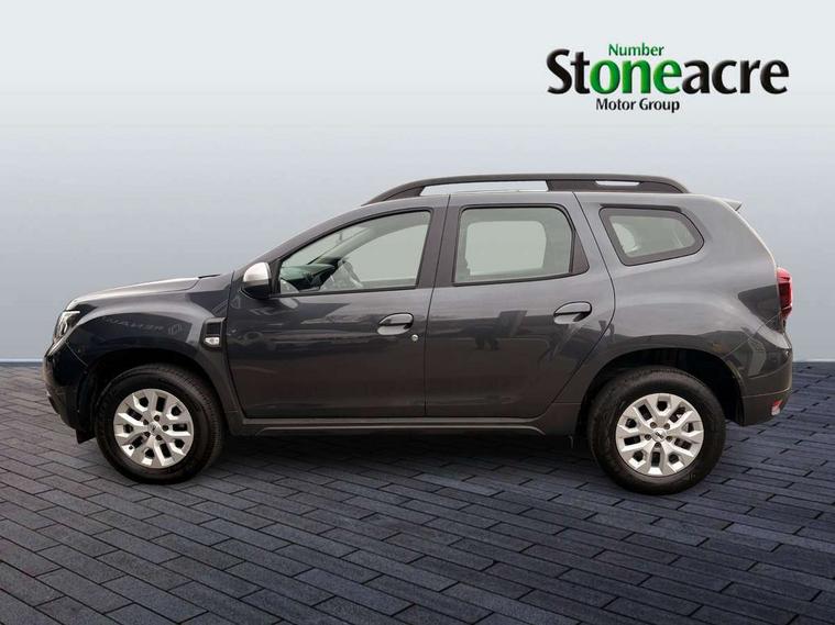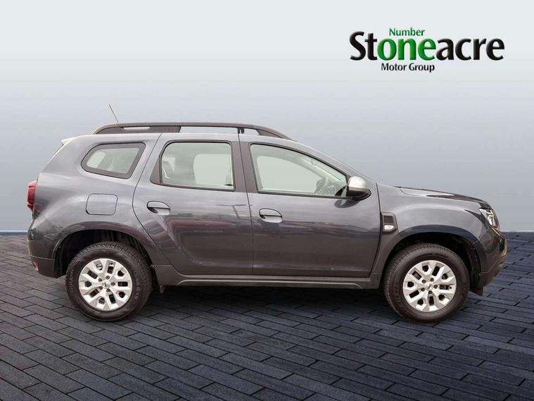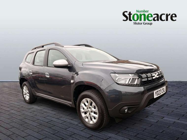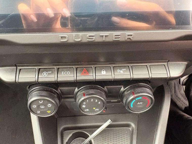 Cruise control and speed limiter, eCall emergency system, Eco mode, Electric power assisted steering, On board computer, odometer, trip computer, average fuel consumption, average speed, service indicator, outside temperature gauge, Rear parking sensors, Rev counter, Reversing camera, Stop/start system, 8" Media display with smartphone replication, 2 usb sockets and 6 speakers, Dacia plug and radio/MP3/USB/bluetooth/DAB/steering wheel control, 3 speed windscreen wipers, Black longitudinal roof bars with Duster inscription, Black side sills, Black/satin chrome tailgate trim with Duster inscription in black background and lettering, Body coloured door handles, Chrome front grille with hot stamping, Chrome logo surround on steering wheel, Daytime running lights, Drivers window one touch up/down, Dusk sensor, Electric adjustable/heated door mirrors, Electric front windows, Electric rear windows, Front and rear body coloured bumpers, Front door sill protection strip, Front fog lights, Heated rear window, High level third rear brake light, Rain sensor, Rear side wing doors, Rear spoiler, Rear wash/wipe, Satin chrome door mirrors, Tinted windows, Underbody protection skid plates, Y shaped LED headlights with rear LED lights, 3 rear height adjustable headrests, 3 seat bench in 2nd row, 60/40 split folding rear seat, Backlighted steering wheel buttons, Boot light, Driver seat lumbar adjustment, Fabric decorative insert on door panels, Fabric upholstery, Front head restraints, Front passenger reading light, Gear shift indicator, Height adjustable driver seat, Height adjustable front and rear headrests, Height and depth adjustable steering wheel, High centre console with driver armrest, Isofix points for child seats in both outer rear seats, Manual air conditioning, Map pocket on front seat backs, Passenger sunvisor with vanity mirror, Rear passenger reading light, Satin chrome interior door handles, Satin chrome lower steering wheel insert, Single front passenger seat, Soft feel leather steering wheel, 3x3 point rear seatbelts, ABS and Emergency brake assist, ASR traction control with Electronic stability control, Child locks on rear doors, Door open visual and audible warning, Driver airbag, Driver and passenger seatbelt not fastened - visual and audible warning, EBD - Electronic brakeforce distribution, Front passenger airbag, Front passenger airbag deactivation, Front seatbelt pretensioners, Front side airbags, Height adjustable front seatbelts, Hill start assist, Tyre pressure monitor, Remote central locking, Thatcham approved engine immobiliser, Charcoal grey central console surround, Matt black central console fascia, Piano black decorative insert on front door panels, Satin chrome air vent surround, Satin chrome instrument dial surrounds, 16" alloy wheels,