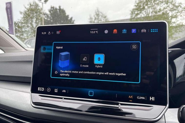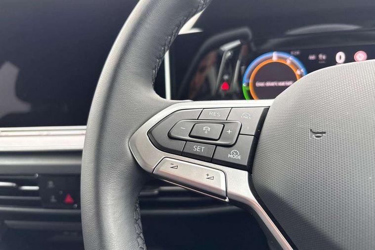 Activated carbon canister, Adaptive cruise control (ACC), Advanced driver attention and drowsiness monitor, Dynamic road sign display, E-Sim card for online connectivity, eCall emergency call system, Multi-color Digital cockpit pro, selection of different info profile possible, Multifunction front facing camera for distance control, Navigation system, Oncoming vehicle braking when turning including swerve support, Speed limiter, Speedo, rev counter, electronic odometer, trip, service interval display, exterior temperature and fuel gauge, Traffic jam assist, Voice enhancer and voice control, Warning signal and warning light for front and rear seatbelts not fastened, We connect plus preparation, We connect preparation, Wireless app connect, Charging cable Mode 2 Type 2 (10A), Charging cable mode 3, type 2 32 A, Electric motor (hybrid electric vehicle) total system output 200kw, unit OEK A, Hybrid propulsion system, Petrol Particulate Filter, Start-stop system with battery regeneration (recuperation - energy recovery during braking), XDS electronic differential lock for improved traction and handling, 2 USB C ports in front, 2 USB charging sockets on the centre console in the rear charging capacity upto 45W, 6 Speakers - 4 in front and 2 in rear with central speaker, Digital radio reception (DAB), Diversity antenna for FM reception, Gaming platform via car app, Infotainment system with 12.9" display, Mobile phone interface with inductive charging feature, 3rd brake light, Automatic headlamp activation with Coming home and Leaving home feature, Body colour door handles, Body colour door mirrors, Exterior mirrors convex on the left and aspherical on the right, Front and rear electric windows, Heat insulating windshield made of laminated glass, LED separate daytime running light, Rear exhaust tailpipe, Rear fog light on one side and reversing lights on both sides, Rear side wing doors, Rear tinted glass 65% light absorbing from B pillar backwards, Rear windscreen washer and wiper with interval delay, Remote electrically foldable door mirrors, puddle lights and reverse activated passenger's door mirror, Standard bumpers, Welcome light with surround lighting, 12V socket in front centre console, 12V socket in luggage compartment, 3 rear head restraints, 3 seat bench in 2nd row, Air care climatronic 3 Zone automatic climate control with rear air conditioning control panel, Chrome plated radiator grille inserts, air vent surrounds and light switch surrounds, Front centre armrest, Front head restraints, Front seat lumbar support adjuster, ISOFIX anchors for child seats on outer rear bench seats and on front passanger seat compatible for i-Size, Luggage compartment lighting, Manual height adjustable front passenger seat, Manually height adjustable driver seat, Plastic gear knob, Rear cupholder and loadthough, Single front passenger seat, Soul black instrument panel, Split folding backrest with centre armrest and unsplit rear seat bench, Standard pedal cluster, Storm grey roof lining, Sun visors with illuminated vanity mirrors, Technology park and comfort pro package - Golf Hatchback, 3 point height adj front seatbelts + pretensioners, 3 rear three point seatbelts, ABS, Autonomous emergency braking front assist with pedestrian and cyclist monitoring, Child locks on rear doors, Driver and front passenger airbag with front passenger airbag deactivation, Electronic parking brake with auto hold, ESC (Electronic Stability Control), Extended pedestrian protection measures, Hill start assist, Rear disc brakes, Two tone horn, Tyre pressure loss indicator, Volkswagen roadside assistance, Anti theft wheel bolts, Preparation for alcohol interlock, Nature cross brushed decorative inserts for dashboard and front door panels, Tool kit for tyre mobility set, Tyre mobility kit Includes 12V compressor and tyre sealant,