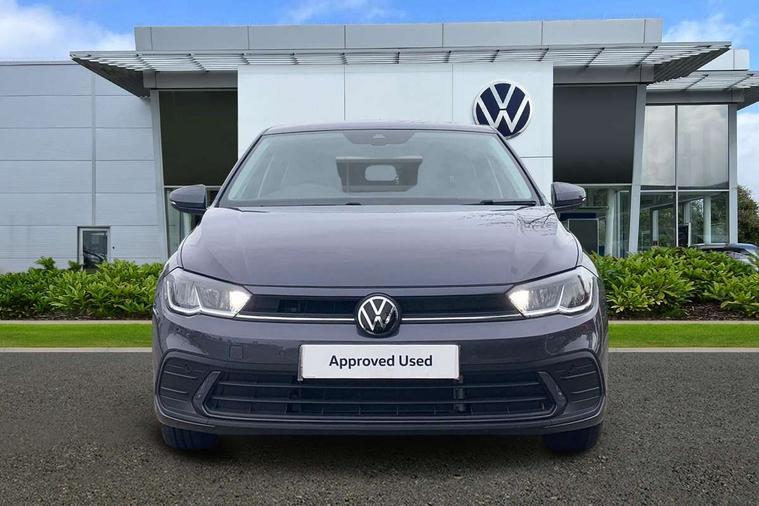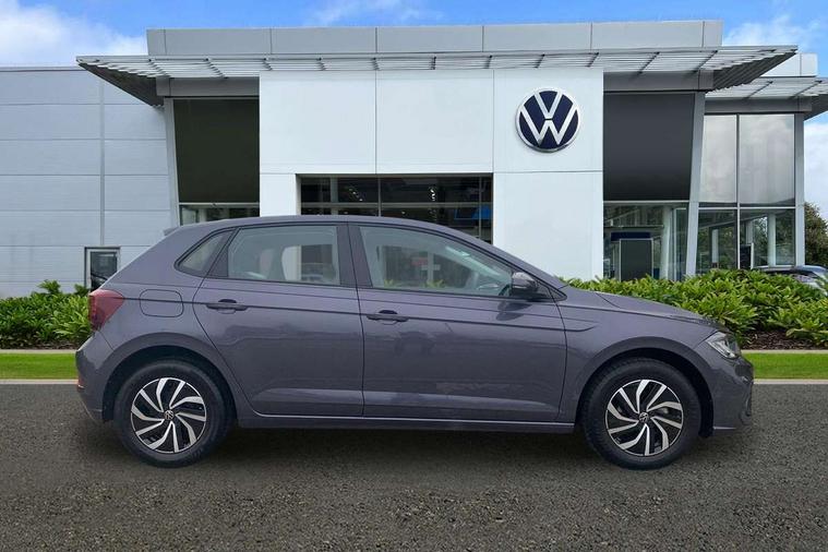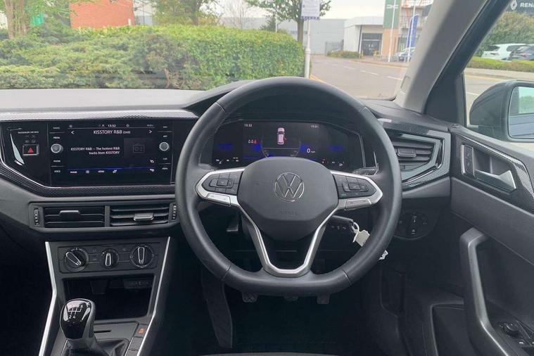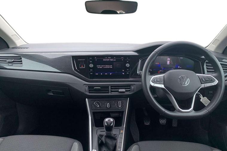 Adaptive cruise control without follow-to-stop and speed limiter, Advanced driver attention and drowsiness monitor, Bluetooth mobile phone interface, Driver alert system, Dynamic road sign display, Emergency call service, Front assist system, Power assisted speed sensitive steering, Preparation for We connect and We connect plus, Speedo and rev counter, electronic odometer, trip, service interval display and fuel gauge, Standard rear axle, Travel Assist - Lane keeping system and traffic jam assist, Travel assist including emergency assist, Trip computer, Warning signal and warning light for front and rear seatbelts not fastened, Washer fluid level indicator, Wireless app connect, Front wheel drive, Rear shock absorpion, Start-stop system with battery regeneration (recuperation - energy recovery during braking), DAB Digital radio, Diversity antenna for FM reception, Front and rear 6 speakers, Automatic dimming interior rear view mirror, Body colour bumpers, Body colour door handles, Body colour door mirrors, Electric front windows, Heat insulating darkened glass in side and rear windows, Heat insulating glass windscreen, Power folding adjustable/heated exterior mirrors and front passenger exterior mirror lowering function, Rain sensor, Rear electric windows, Rear fog light, Rear side wing doors, Rear windscreen washer and wiper with interval delay, Third brake light, 12V power socket in centre console, 2 front and 2 rear reading lights, 2 USB-C ports in the front, 2 USB-C charging sockets on the center console in the rear, 3 rear head restraints, 60/40 split folding rear seat and rear seat bench not split, Chrome plated radiator grille inserts, air vent surrounds and light switch surrounds, Door and side trim panel, Driver and front passenger seat height adjustment, Driver/passenger sunvisors with illuminated vanity mirrors, Front centre armrest, Front seat backrest storage pockets, Front standard seats, Handbrake lever handle in leather, Hartley/Thomas cloth upholstery, Headliner in recycled material, Isofix child seat preparation easy-fit (for two outer rear seats, and front passenger seat) compatible with I-size, Leather trimmed gear knob, Luggage compartment cover, Luggage compartment floor, Luggage compartment lighting, Multifunction steering wheel, Single front passenger seat, Standard pedal cluster, Light and vision pack - Polo, 3 point height adj front seatbelts + pretensioners, 3x3 point rear seatbelts, ABS, Driver and front passenger airbag with front passenger airbag deactivation, Drivers and front passengers safety optimised head restraints, ESC (Electronic stability control) + EDL (Electronic Differntial lock) and ASR (Traction control), Extended and predictive pedestrian/ cyclist protection, Front curtain and side airbags with center airbag, Front disc brakes, Hill hold control, Manual child lock in rear doors, Rear drum brakes, Single tone horn, Tyre pressure loss indicator, Alarm with interior protection, Anti-theft alarm system with interior monitoring, backup horn, and towing protection, Anti-theft wheel bolts, Electronic engine immobiliser, Lava stone black gloss/matt decorative inserts in dash and front door panels, Low rolling resistance tyres,