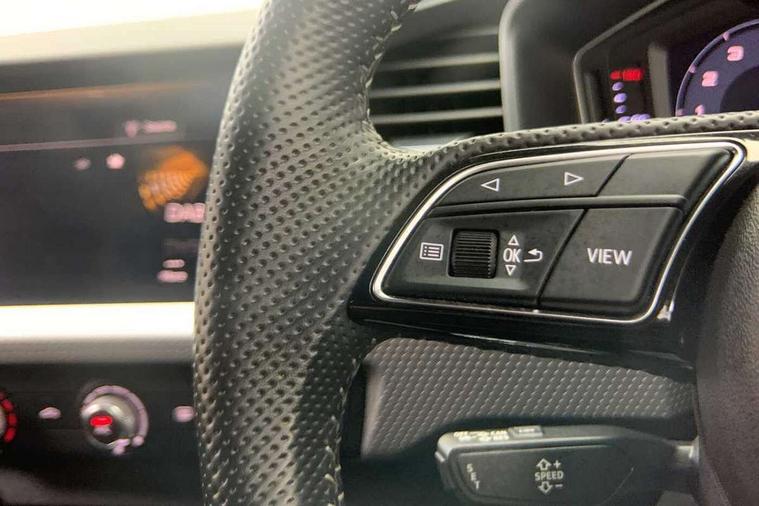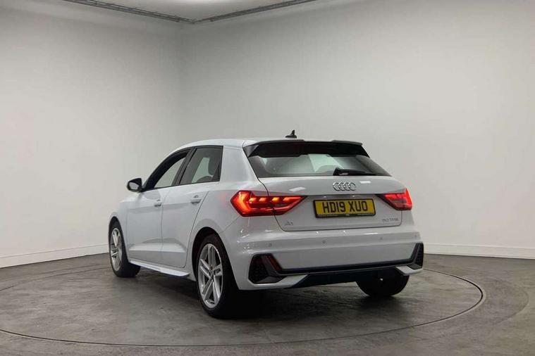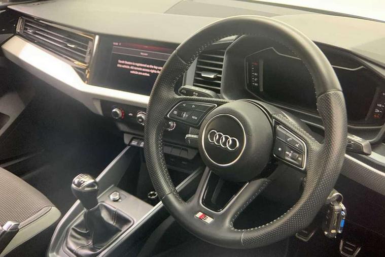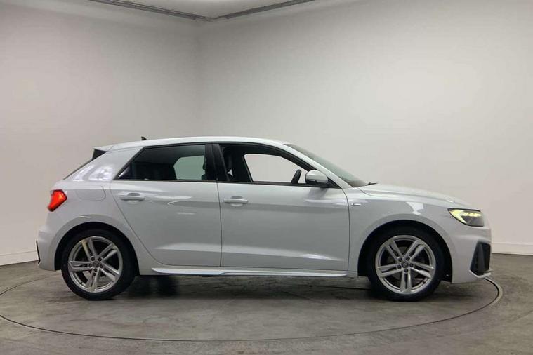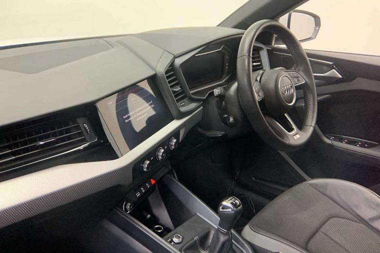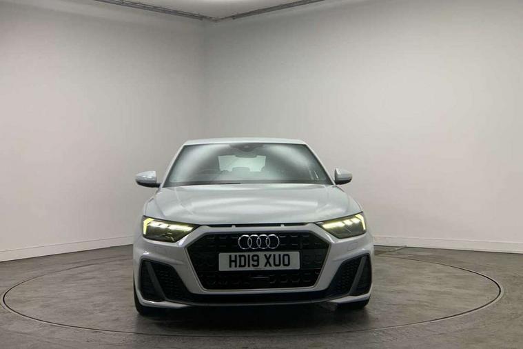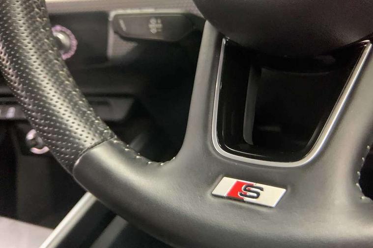 Aluminium trim for control switches, air vents and digital instrument cluster, Silver grey inlays polygon structure in diamond paint finish, Structured grey accent areas including air vents, door handle recesses and centre console in quartz paint finish, Anti theft alarm, Anti theft wheel bolts and loose wheel warning, Audi pre-sense front with pedestrain and cyclist recognition, Immobiliser, Remote central locking with 2 remote folding keys, 1 x SDXC card reader, 1 x USB type C and 1 USB type A charging points, Audi music interface, Bluetooth audio streaming, DAB Digital radio, MMI radio plus with 8.8" colour MMI display screen and MMI touch, 3x3 point rear seatbelts, Brake assist function, Driver and front passenger airbag with front side and head airbags, Electronic Stability Control including ABS, EBD, ASR and EDL, Front and rear seatbelt reminder, Front passenger airbag deactivation switch, Hill hold assist, Seatbelt height adjustment for front seats, Seatbelt monitoring, Tyre pressure warning light, Warning triangle and first aid kit, Auto dimming rear view mirror, Body colour side sill mouldings, Body coloured bumpers, Body coloured door mirrors, Door sills with aluminium inlays and S Line logo, Electric front and rear windows, Front side air inlets in grained matt black and C frame in titanium black, Heat insulating glass windscreen and side windows, Heated rear windscreen, LED headlights with LED rear lights + dynamic rear indicators, Matt aluminium silver tailpipe trim, Matt black radiator grille frame, Matt platinum grey in front spoiler clip and rear diffuser clip, Rain and light sensors, Rear fog lights, Rear wiper, S line badges on front wings, S line exterior bumpers, S line roof spoiler, Side air inlet frames titanium black, Side front spoiler lips in grained matt black, 12V socket in centre console with two cup holders, 3 rear seats, Black cloth headlining, Driver and passenger seat with manual height adjust with forward and backwards adjustment, Front and rear black floor mats with contrast stitching in fine silver, Front head restraints, Height and reach adjustable steering wheel, ISOFIX child seat mounting in front passenger and rear outer seats, Leather gear knob with aluminium trim, Leatherette handbrake grip, Luggage compartment light with front and rear reading lights, Lumbar adjustment for front seats, Rear head restraints, Split folding rear seats, Stainless steel pedals, 10.25" Digital instrument cluster display screen, Audi connect safety emergency and service including E-call, Audi drive select, Audi smartphone interface, Automatic start/stop system, Bluetooth interface, Driver's information system, Electromechanical power steering, Lane departure warning system, Service interval indicator, Speed limiter, Voice control system, Washer fluid level indicator, Sports suspension,
