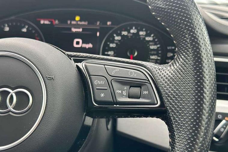 7" Colour driver information system, Audi connect, Audi drive select, Audi parking system plus with front and rear sensors, Audi smartphone interface, Automatic start-stop system with coasting functionality and efficiency programme, Bluetooth interface, Electro-mechanical power steering, MMI Navigation, Power tailgate, Service interval indicator, Voice control system, Diesel particulate filter, CD player, DAB Digital radio, Two SDXC card slots, Air inlet in matt aluminium with horizontal inlay, Aluminium roof frame and window trim, Auto dimming rear view mirror, Black grained rear grille, Body colour bumpers, Body coloured door mirrors, Chrome plated exhaust pipe, Electric adjustable heated door mirrors, Electric front windows, Front fog lights, High beam assistant, High gloss black B pillar trims and triangular rear door trim, Honeycomb side air inlet in titan black, Rain and light sensors, Rear diffuser in Twilight grey matt with honeycomb grille, S line badges on front wings, S Line body styling, S Line front and rear bumpers, S Line side skirts in black, S line sill plates, Twilight grey matt radiator grille in matt aluminium inlay, Windscreen with acoustic glazing, 2 x USB charging port with aux input socket, 40/20/40 split folding 3 seater rear bench seat, Adjustable steering column, Black headlining, Black perforated leather gearknob, Centre console with cupholders, Contrast stitching on seats, steering wheel and gear lever gaiter, Deluxe 3 zone electronic climate control, Front centre armrest, Front head restraints, Front/rear floor mats, Gearshift paddles, Illuminated door sill trim with S logo, ISOFIX child seat mounting and top tether, Jack and tool kit, Luggage compartment mat, Rear headrests, S embossed logo on front sport seats, Stainless steel pedals and foot rest, Non Smokers pack, 3x3 point rear seatbelts, 6 airbags - Driver, front passenger, curtain and side airbags, Electromechanical parking brake, Electronic Stabilisation Control (ESC) including ABS, ASR and EDL, Front passenger airbag deactivation, Height adjustable front seatbelts, Hill hold function, Multi-Collision braking, Pop-up bonnet for pedestrian protection, Pre sense city, Seatbelt monitoring, Tyre pressure warning, Variable restraint system, Warning triangle and first aid kit, Anti theft alarm system, Anti theft wheel bolts, Immobiliser, Keyless Go, Remote central locking, Tyre repair kit,