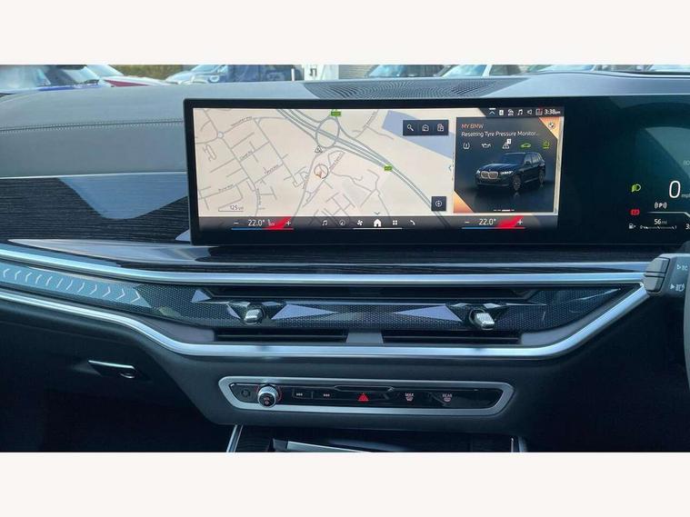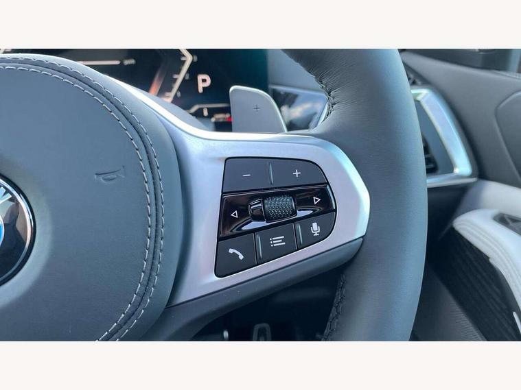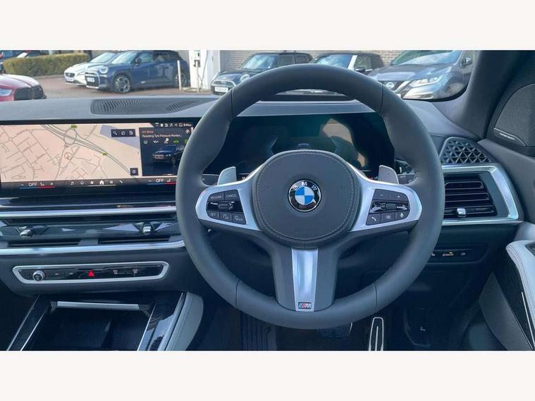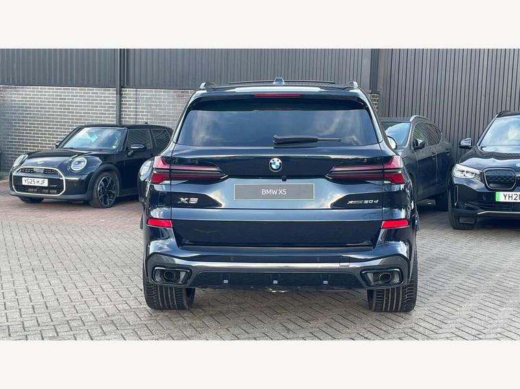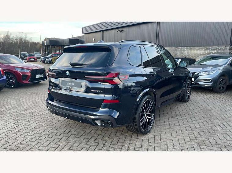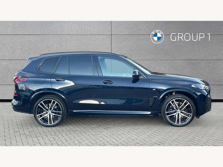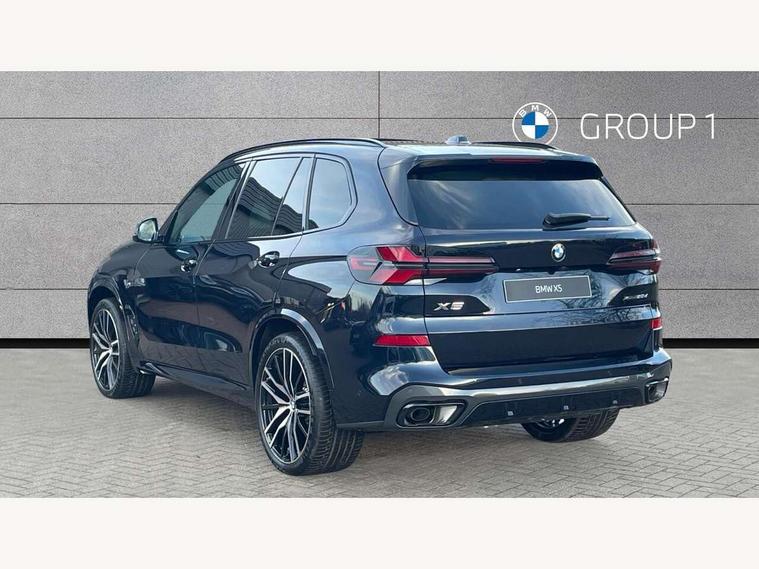 Attentiveness assist, Automatic tailgate operation, BMW ConnectedDrive online services, BMW live cockpit + with curved 12.3 instrument cluster/14.9 central display, nav/Tuner with diversity reception, RDS/4GLTE/remote software upgrade, BMW Recovery system, BMW Teleservices, Condition based service, Cruise control with brake assist, eCall emergency call system, Enhanced bluetooth with wireless charging, Integrated owner's handbook, PAS, Speed limiter, Wi-Fi hotspot, Drive performance control with ECO PRO comfort + sport mode, Eight speed steptronic sport automatic transmission and gearshift paddles on the steering wheel, Adaptive LED Headlights, Front and rear electric windows, High beam assistant, High gloss black shadow line roof rails, LED daytime running lights, Rain sensor, Rear side wing doors, Third brake light in rear spoiler, Variable intermittent rear wash/wipe, 12V - Power sockets with 2x centre console and 1x luggage compartment, 3 seat bench in 2nd row, Entry sills illuminated BMW inscription front and rear, Foldable rear centre armrest with 2 cupholders and storage compartment, Front and rear side armrest integrated into door trim, Grab handles in 1st and 2nd row of seats with Integrated in headliner, at rear with coat hooks, plastic, Headrests for all seats, Luggage compartment separating net, Lumbar support with height and depth adjustment in backrest, Single front passenger seat, Sunvisors with illuminated vanity mirrors and ticket pocket, Three spoke sport M leather steering wheel, Velour floormats, Ambient light interior pack - X5, Driving assistant pack with radar based driver assistance system - X5, Expanded exterior mirror pack - X5/X5 M, M aerodynamics pack - X5, Parking assistant pack - X5, 3 rear seatbelts, Active protection, Airbags - driver/front passenger, rear and side, first and second row seats head airbags, front passenger seat airbag deactivation + knee airbag, Anti-lock braking system (ABS), Automatic Stability Control (ASC), Brake energy regeneration, Cornering brake control (CBC), Crash sensor activating central locking release, hazard warning lights, fuel cut off, interior lighting + activation of safety battery terminal clamp, DSC - Dynamic Stability Control, Dynamic Traction Control - DTC, Electromechanical parking brake with automatic drive away release and auto hold function, Electronic brake force distribution, Hill start assistant, M Sport blue painted brake calipers with 'M' designation, Mechanical child proof lock on rear doors, Tyre pressure monitoring system, Tyre pressure sensors, Ventilated front and rear disc brakes, Warning triangle and first aid kit, Alarm system, Closing system with central locking, Comfort access system, Locking wheel bolts,