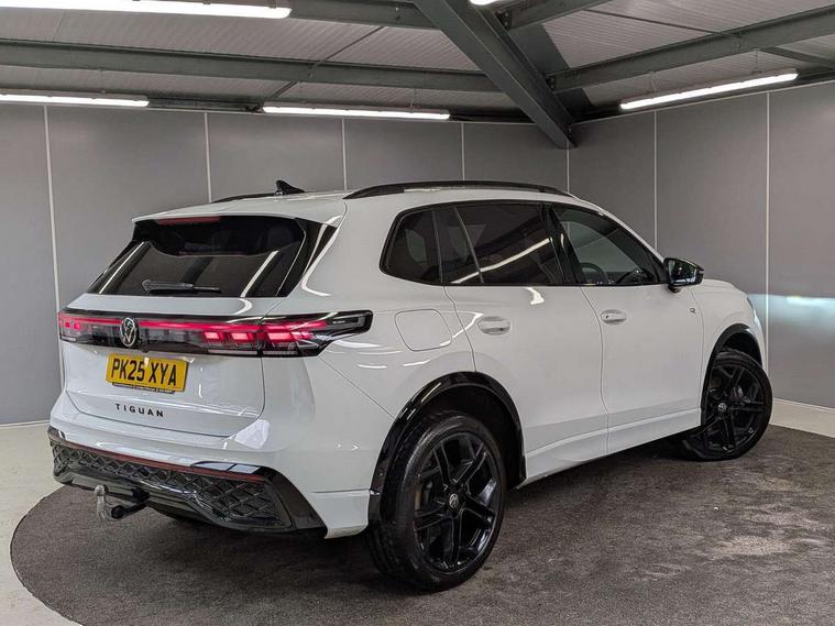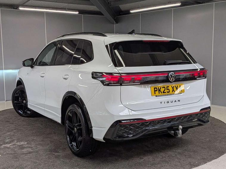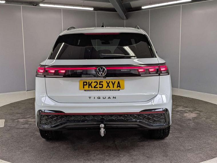 Adaptive cruise control (ACC), Advanced driver attention and drowsiness monitor, Bluetooth mobile phone interface, Car2X technology, Comfort drive travel assist, lane keeping system, lane assist and emergency assist, Digital Cockpit Pro - 10.25" high resolution dash display screen with customisable menus and information, Dynamic road sign display, E-Sim card for online connectivity, eCall emergency call service, Front Assist - Autonomous emergency braking with pedestrian and cyclist monitoring, Lane change system, Side assist, Rear traffic alert and Exit warning system, Oncoming vehicle braking when turning including swerve support, Park assistance plus with front and rear parking sensors, Power assisted steering with speed sensitive, Start/stop system with regenerative braking, Warning signal and warning light for front and rear seatbelts not fastened, Wireless App-Connect, Adaptive chassis control DCC pro includes driving mode selection, All wheel drive - 4Motion, Digital radio reception (DAB), Diversity antenna for FM reception, Air intake with black trim, Ambient lighting with logo projection, Automatic headlight control system, Body coloured door handles, Chrome moldings on the side windows, Coming/leaving home lighting function, Exterior mirror surround light, Heat insulating glass in side and rear windows, Heated rear window, Heated windscreen washer jets, High level 3rd brake light, Illuminated door handle recesses, Illuminated lightline between headlamps, Laminated safety glass windshield, LED Day time running light, Rain sensor windscreen wipers, Rear fog light on one side, reversing light on both sides, Rear side wing doors, Rear wiper, 12V outlet in center console rear and in luggage compartment, 12V socket in centre console, 3 bench rear seats in 2nd row, Air care climatronic 3 zone air conditioning system with rear air conditioning control panel, Black roof lining, Brushed stainless steel pedals, Carpet mats, front and rear, Centre console with illuminated storage compartment with sliding cover and two drinks holders, Chrome elements on the mirror switch and power window switches and door pulls, Door and side trim panel with leatherette insert, Door sill protectors, Entry and exit light, Front centre armrest, Interior ambient lighting with 30 colour options, ISOFIX anchors for child seats on outer rear seats and front passenger seat compatible with i-Size, Mechanical rear seat release, Power adjustable lumbar support in front, Rear bench seat, split folding, longitudinally movable and folding with load-through hatch and centre armrest, Single front passenger seat, Soul headlining, Sports comfort seats in front, Sun visors with illuminated vanity mirrors, Three rear head restraints, Variable luggage compartment floor, Black style package - Tiguan R-Line/Black edition, Driver assistance package - Tiguan, Driving dynamics pack with adaptive chassis control - Tiguan, IQ.LIGHT - HD matrix headlights pack - Tiguan Elegance/Black Edition, 3 point seat belt for centre rear seats, 3 Point seat belts in front with pretensioners, 3 point seatbelts in outer rear with ECE label, Driver and front passenger airbag with front passenger airbag deactivation, Electronic parking brake with auto hold, Front and rear curtain airbags, Front and rear side airbags, Front centre airbag, Front disc brakes, Hill decent control, Hill start assist, Manual child proof rear door locks, Rear disc brakes, Two tone horn, Warning triangle, Decorative inserts, Interior door handle in matte chrome, Soul instrument panel,