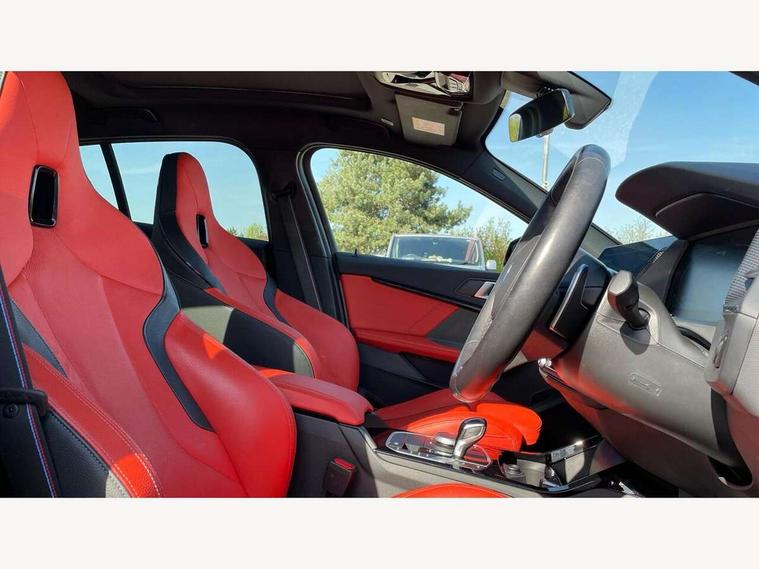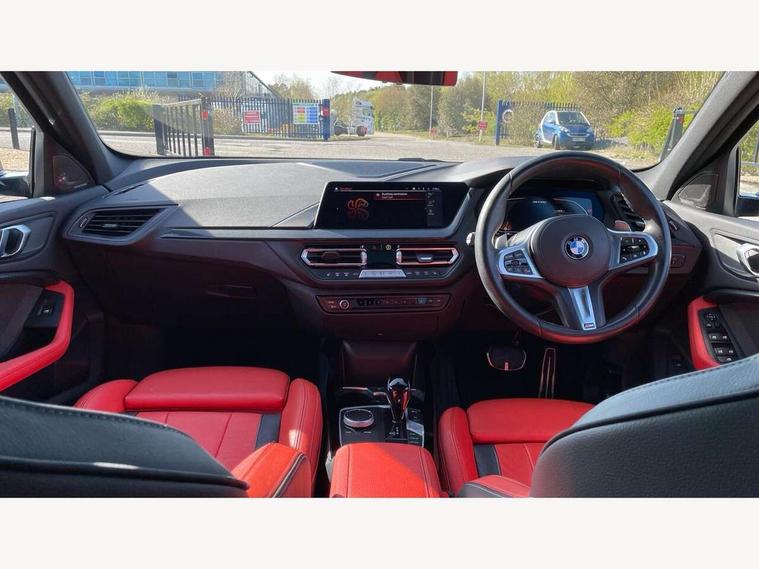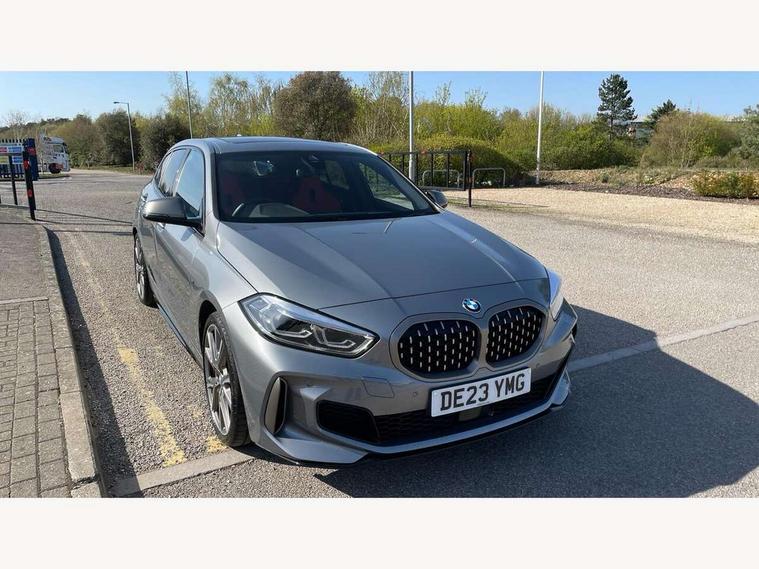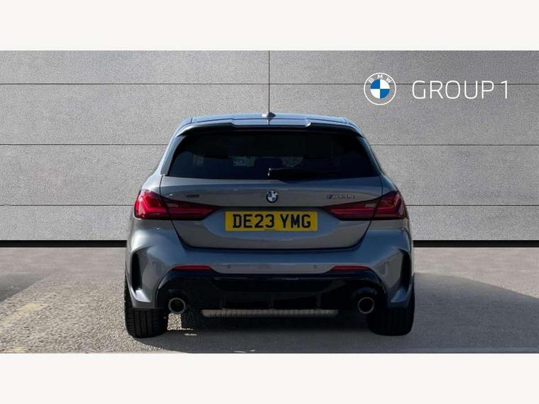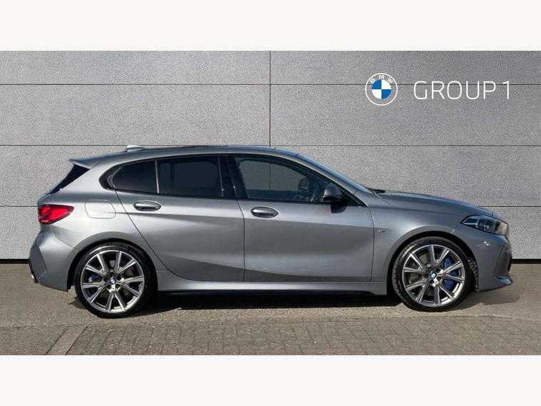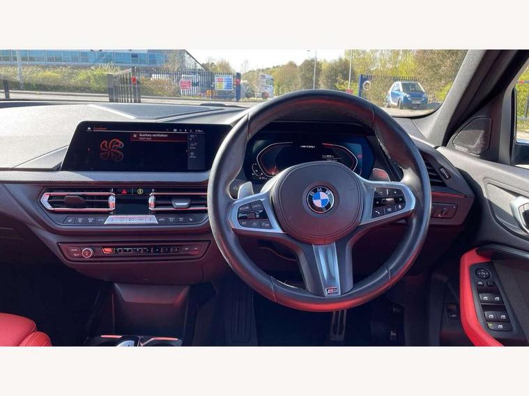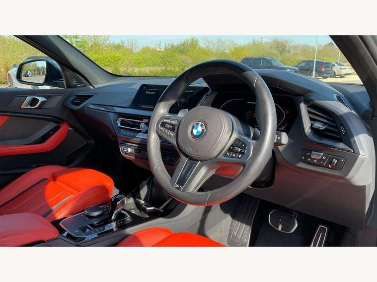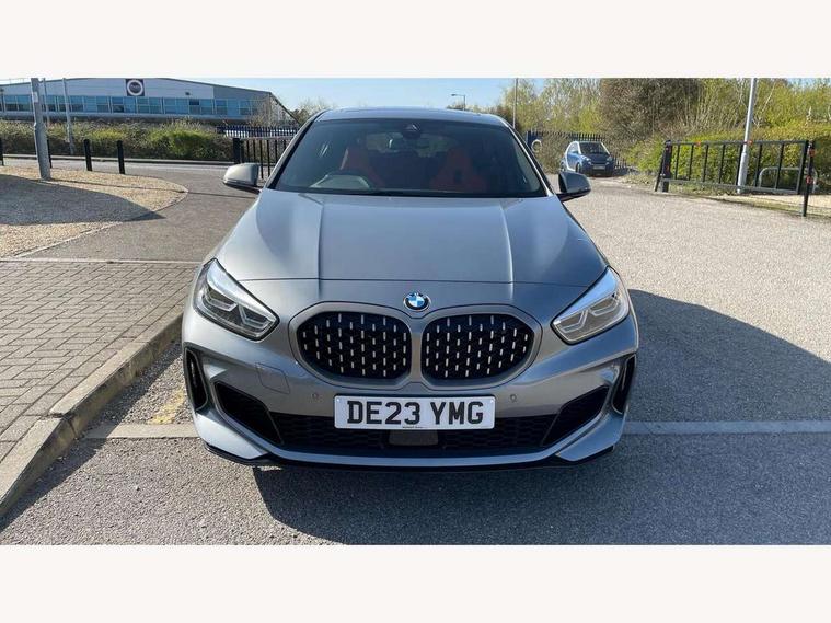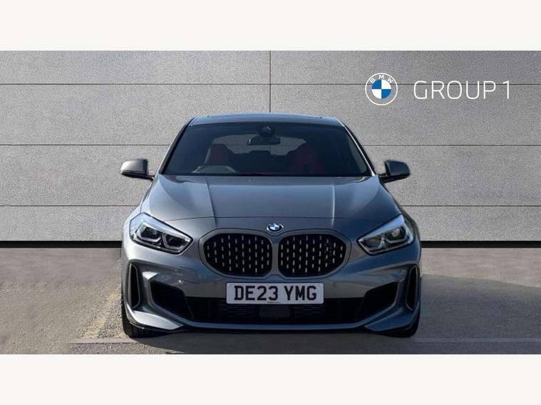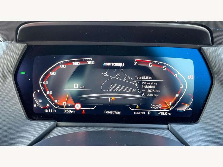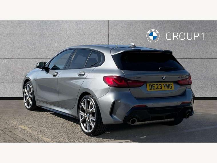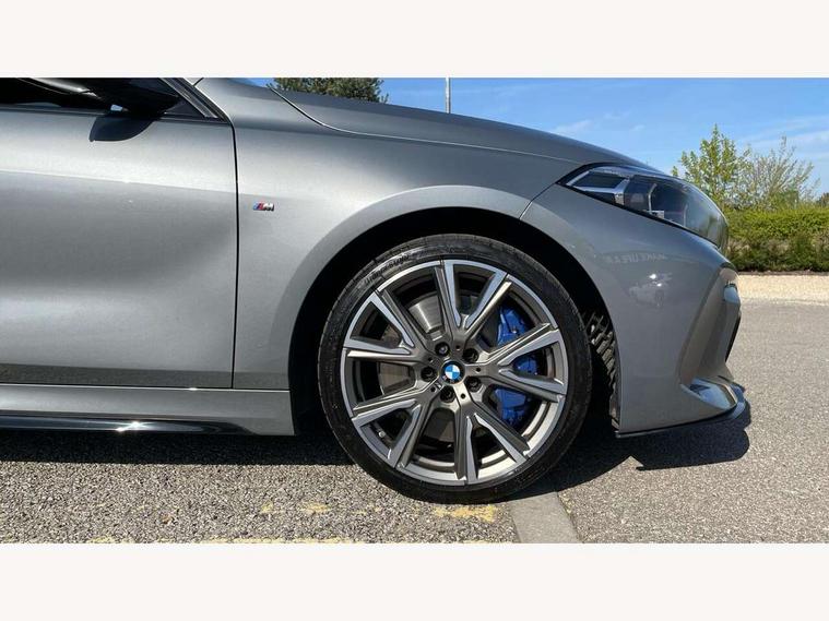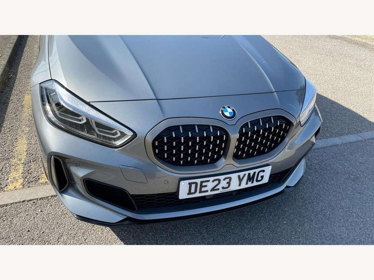 Active guard plus, Attentiveness assist, BMW ConnectedDrive online services, BMW Teleservices, Check Control warning system for monitoring of lights and door/luggage compartment open warning, Cruise control with speed limiter, Eco pro mode, Electric power steering, Electro hydraulically controlled multi-plate clutch transfers drive to rear axle and with power take-off device located on the front differential., Energy efficient operating strategy, Front axle single joint with specific axle kinematics to minimise drive influences on steering + provide increased rigidity agile driving behaviour, Gearshift time display in manual mode, Integrated owners handbook, Lane departure warning system, M Sports steering with M135i xDrive specific settings, Oil sensor for level and grade, On board computer, Optimum shift indicator, Personal Profile, Pull away assistant, Rigidly mounted rear subframe - Multi link construction with separate spring / damper configuration and excellent driving characteristics, Speed limit Info including no-overtaking indicator, Sporty fast gear shifting in sport mode, Aluminium lightweight construction, Anti roll bar front and rear, Balancer shaft, Double VANOS, Drive Performance Control, Eight speed sport automatic transmission with gearshift paddle switches, Electronic differential lock, Electronic selector lever, Engine cover with M performance designation, High precision injection, Larger fuel tank capacity (50 litres), Launch control, M135i specific heavily de-throttled engine intake air guide, M135i specific high-performance cooling package, M135i specific larger turbocharger with integrated divert-air valve, Petrol Particulate Filter, Twin tube gas filled shock absorbers with degressive characteristic curve, VALVETRONIC engine management, Variable, stepless and infinitely adjustable distribution of drive torque between the front and rear axles, xDrive intelligent all wheel drive with M135i specific reinforced components, DAB Digital radio, Auto dimming rear view mirror, Automatic headlight beam throw control, Automatic windscreen wipers and automatic headlight, Body colour door handles, Body colour roof trims, Cerium grey exterior mirror caps, Direction indicator side lights in exterior mirrors, Electrically adjustable exterior mirror with mirror adjustment switch on drivers armrest and aspheric on driver side, convex on passenger side, Exhaust tailpipe, Cerium Grey with bevelled finish - twin, round 100mm, left and right split, Fading support, Folding side mirrors with auto dimming/folding wing mirrors with auto dimming, Follow me home headlights, Front and rear bumper system with replaceable deformation elements, Front and rear electric windows with open and close fingertip control, anti trap facility and comfort closing, Front door sill finishers with M135i designation, Green tinted heat protection glazing, High gloss shadowline window frame, Recess cover mirror frames and B/C pillar embelisher trim, High level third brake light, Integrated front windscreen with washer jets, Kidney grille frame in Cerium Grey with Mesh design, LED daytime running lights, LED eyebrow turn indicators, Lightweight engineering, M logo designation side in cerium grey, M Performance exhaust system with valve control and minimised exhaust back pressure, M Performance specific setup, M Sport spoiler, Matt black air guide grilles, Matt black wheel arch trim, Model designation on electric bootlid includes xDrive designation for M135i xDrive, Nearside reverse light in rear light cluster, Preparation for high beam assistant, Rear fog lights, Rear side wing doors, Rear window wiper, Reinforced crank drive, new pistons and adapted con rods, Shark fin antenna, Trailer stabilisation logic, Visible VIN plate, Welcome lighting, 12V power socket in front centre console with blanking plug, 3 rear seat head restraints, 3 seat bench in 2nd row, 3 spoke sports leather steering wheel with black leather and stitching, pearl chrome decorative finish, specific M Badge, Anthracite headlining, Black boot net with lashing eyes, Cargo function on 2nd seat row, Child seat ISOFIX attachment for two outer rear seats and front passenger seat with anchorage points, Conditioned based service, Driver and front passenger backrest net on rear, Driver and front passenger seat heating, Driver side folding compartment in instrument panel, Folding rear clothes hook, Four grab handles integrated in roof lining, Front and rear door pockets with bottle holders, Front and rear side armrest integrated into door trim, Front armrest, Front M sports seats, Glove compartment, Height adjustable front head restraints, Luggage compartment for bag hooks on left and right, foldable luggage compartment liner and four lashing eyelets, Manual adjust steering wheel, Multi-function controls for steering wheel, Single front passenger seat, Storage compartment in centre console, Storage compartment in luggage compartment, Stowage of the parcel shelf in luggage compartment trim, Sun visors with vanity mirrors and insert tab, Two front centre console cupholders, Two zone automatic air conditioning, Type C two USB ports in rear centre console, Velour floor mats, Additional interior lighting pack - 1 Series M135i, BMW live cockpit professional pack- 1 Series, Connected pack professional - 1 Series, Interior lights pack - 1 Series, M Sport exterior styling aerodynamics pack - 1 Series 135i, 2 tone horn, 3 point seatbelts on all seats, front pyrotechnic belt tensioners, stopper and belt force limiters, rear coded belt buckles, Airbags - Front driver/passenger, front and rear curtain head protection, front side, manual deactivation of front passenger airbag, Anti lock braking system (ABS) with brake assist, BMW emergency call, Brake drying, Braking readiness, Child proof locking system in rear door, City braking function, Comfort modes, Cornering brake control, Crash sensor activating of airbags, Unlocking doors, hazard warning lights, interior light