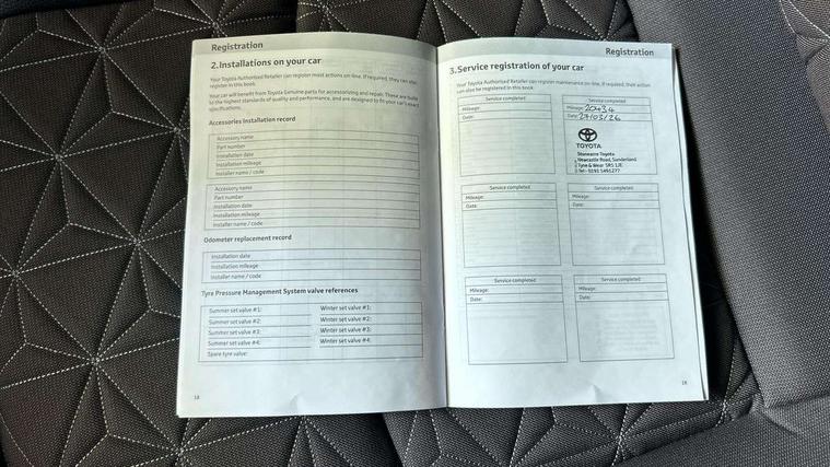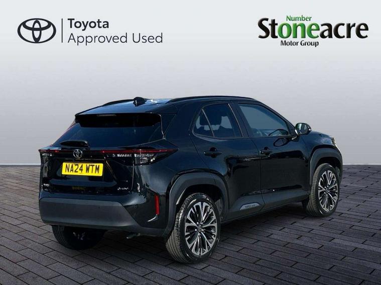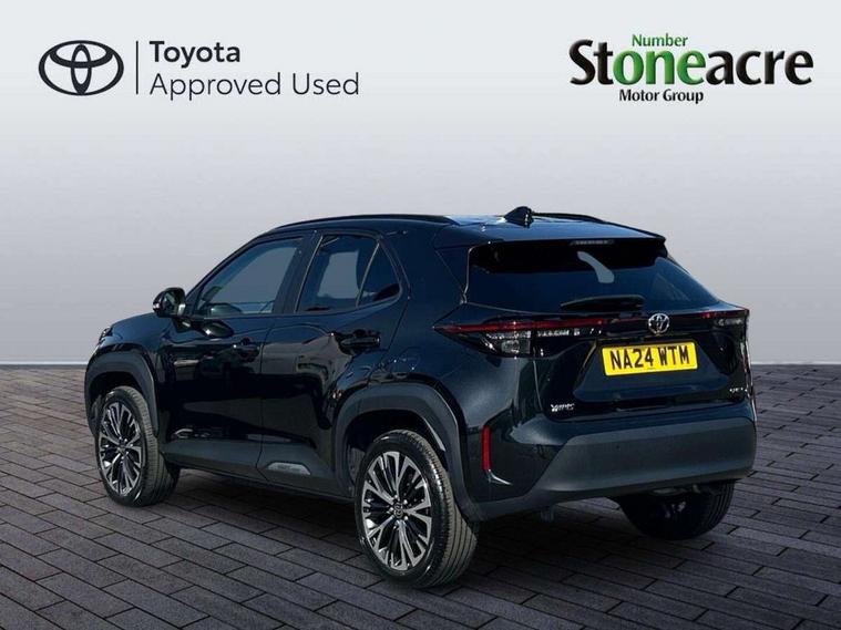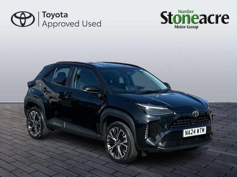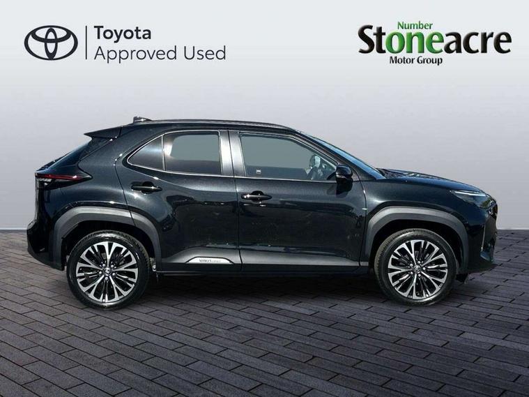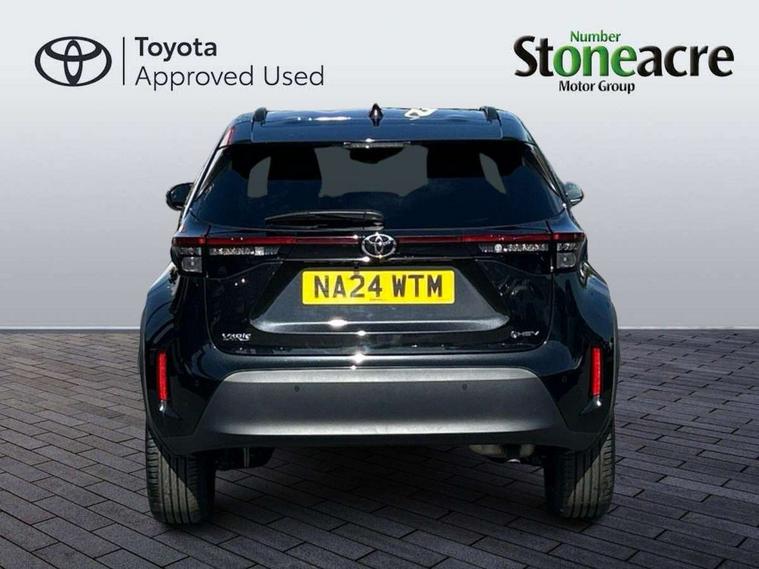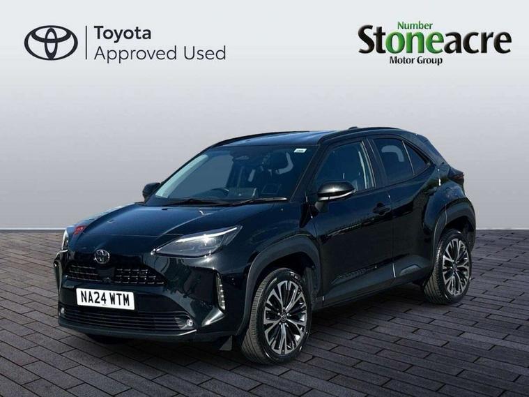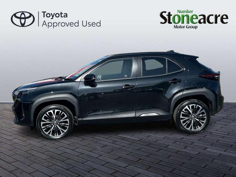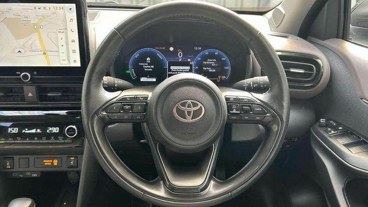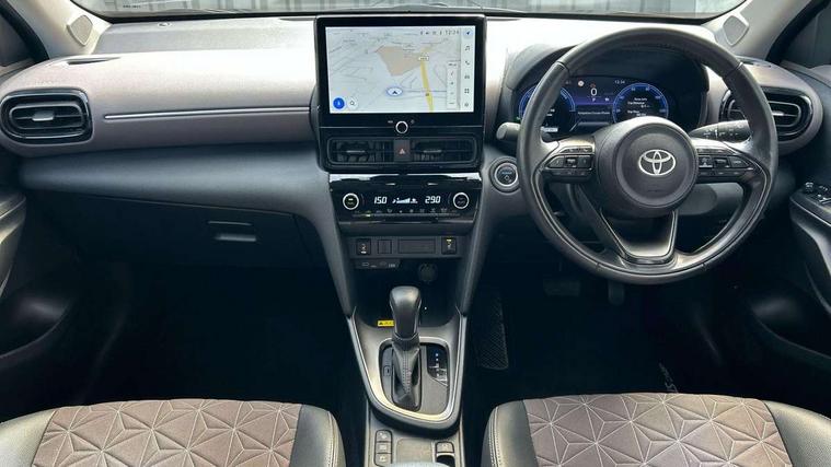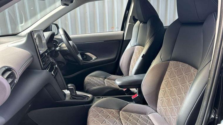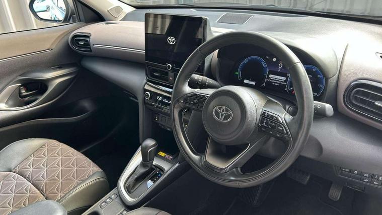 10.5" Multimedia display screen, 10.5" Toyota smart connect+ with navi multimedia system with wireless Smartphone integration incl Apple CarPlay, 360 degree panoramic view monitor, 7" Multi information display screen, Adaptive cruise control, multi info switches on steering wheel, Adjustable speed limiter, Advanced parking assist, Blind spot monitoring, Bluetooth connectivity, Color multi-information display, Digital speedometer, Digital tachometer, Drive mode selector, Driver attention alert system, Dynamic guide lines on reversing camera, eCall emergency system, Electric power steering, Emergency driving stop system, Full range intelligent adaptive cruise control, Hybrid system indicator, Intelligent front and rear parking sensors with clearance sonar and automatic braking, Intersection turn assist, Key reminder warning, Lane change assist, Lane departure warning, Lane trace assist, My T Connected services, Power tailgate, Pre-collision system enhanced with emergency steering assist, Rear cross traffic alert with brake assist, Remote boot door release in cabin, Road sign assist - RSA, Safe exit assist, Telephone switch on steering wheel, Wireless Mobile Phone Charger, Steering assisted vehicle stability control, 6 speakers, DAB Digital radio, Front USB Type-C connector, Front USB-C device charger, 3rd brake light, Acoustic windscreen glass, Anti-jam protection on power windows, Auto dimming rear view mirror, Auto high beam [AHB] with on/off switch, Auto intermittent windscreen wipers, Automatic headlights, Automatic headlights cut-off, Automatically retractable door mirrors, Black door moulding, Black lower front grille, Black protection moulding on side doors, Black roof rails, Black wheel arch mouldings, Body colour door handles, Body colour front bumper, Body colour rear bumper, Electric adjustable heated door mirrors, Follow me home headlights, Front and rear electric windows with auto up/down function, Gloss black upper front grille, Headlight cut off reminder, Indicators integrated on door mirrors, Intermittent rear wiper, Kick activated power back door, LED daytime running lights guide, LED front fog lights, LED front light guide, LED Indicators, LED projector headlights, LED rear lights with sequential indicators, Manual headlight levelling, Meshed shape upper front grille, Noise reduction layer on windscreen, Privacy glass, Rain sensor, Rear side wing doors, Rear spoiler, Rear window defogger, Shark fin antenna, 12v power outlet - front, 12V power point in boot, 2x Rear coat hooks, 3 seat bench in 2nd row, 3 spoke leather steering wheel, 40/60 split deckboard, 40:20:40 split folding rear bench seat, Adjustable rear headrests, Adjustable speed limiter switch on steering wheel, Boot light, Central armrest, Driver and front passenger personal lights, Driver and front passenger Whiplash injury Lesseing seats, Driver and passenger seatback pockets, Dual zone automatic air conditioning, Fabric door trim, Front console box, Front cup holders, Front door pockets, Front head restraints, Front sport seats, Front/rear assist grips, Gear shift indicator, Grey roof lining, Heated driver and passenger seats, Heated steering wheel, Height adjustable driver's seat, Height adjustable front passenger seat, Hooks for luggage holding belts, ISOFIX child restraint system, Lane departure alert switch on steering control, Leather gearshift, LED centre room light, Light on driver and passenger sun visor, Manual telescopic and tilting steering wheel, Mirror on driver and passenger sun visor, Nanoe-X air purifier, Partial synthetic leather upholstery, Pollen air filter, Power adjustable lumbar support on driver seat, Rear cup holders, Rear door pockets, Rear head restraints, Remote air-conditioning system, Single compartment glovebox, Single front passenger seat, Soft tonneau cover, Storage box under boot floor, Voice recognition switch on steering wheel, White ambient lighting in centre console, White ambient lighting in footwell, White ambient lighting on front doors, Yaris cross floor mats, Tech pack - Yaris Cross, 3x3 point rear seat belts, ABS+EBD+Brake assist, Downhill Assist Control (DAC), Driver and passenger central airbags, Driver and passenger front airbags, Driver and passenger side airbags, Electronic parking brake, Emergency brake light system (EBS), Front seat belt reminder, Hill start assist control (HAC), Passenger airbag on/off switch, Pre-collision system with pedestrian and cyclist detection, Rear door child safety locks, Rear passenger side airbags, Rear seat belt reminder, Traction control, Tyre pressure warning system, Immobiliser, Intrusion alarm, Keyless smart entry with push button start, Power door locks, Power passenger window lock, Remote door lock, Gloss black side air vent surrounds, Tyre repair kit,