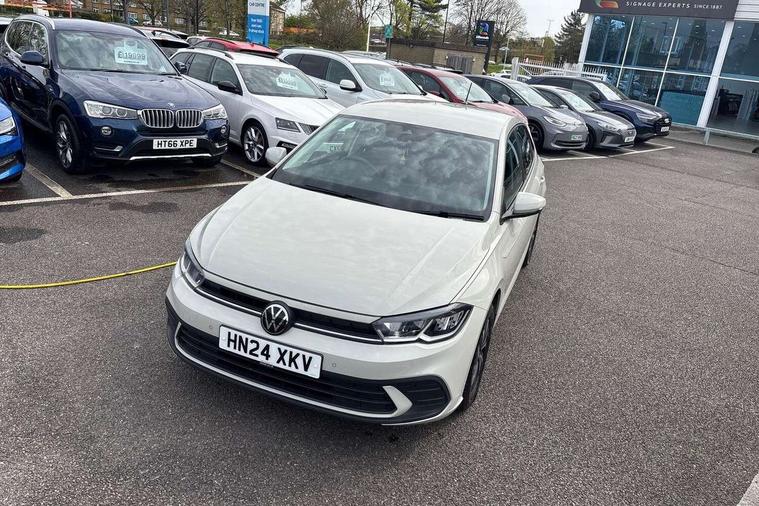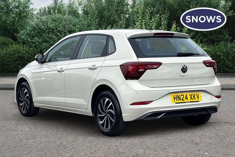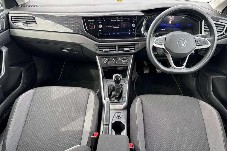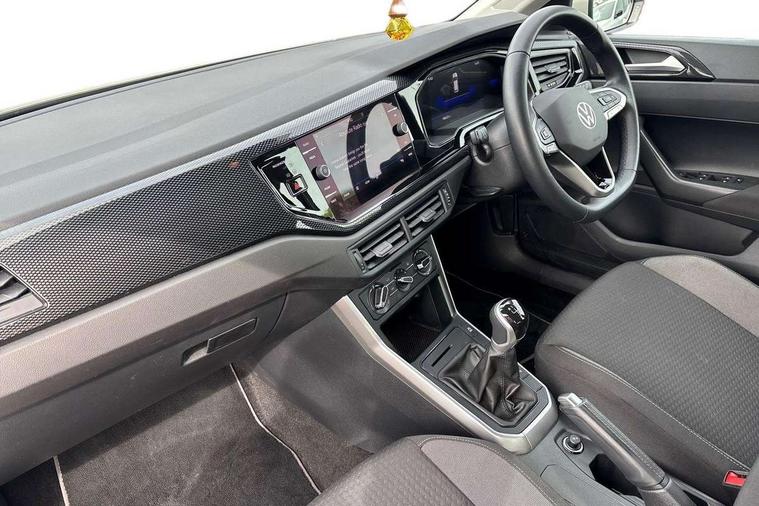 Advanced driver attention and drowsiness monitor, Bluetooth mobile phone interface, Cruise control + speed limiter, Dynamic road sign display, Emergency call service, Lane keeping system Lane Assist, Power assisted speed sensitive steering, Preparation for navigation system with media and internet package, Preparation for We connect and We connect plus, Speedo and rev counter, electronic odometer, trip, service interval display and exterior temperature gauge, Standard rear axle, Trip computer, Warning signal and warning light for front and rear seatbelts not fastened, Washer fluid level indicator, Wireless app connect, Front wheel drive, Rear shock absorpion, Start-stop system with battery regeneration (recuperation - energy recovery during braking), DAB Digital radio, Diversity antenna for FM reception, Front and rear 6 speakers, Automatic dimming interior rear view mirror, Automatic headlight control with LED separate daytime running lights with coming/leaving home function, Body colour bumpers with chrome inserts, Body colour door handles, Body colour door mirrors, Electric front windows, Engine badge deletion, Headlight range adjustment, Heat insulating and laminated safety glass windshield, Heat insulating darkened glass in side and rear windows, Heat insulating glass windscreen, LED Headlights, LED rear combination lamps, Power folding adjustable/heated exterior mirrors and front passenger exterior mirror lowering function, Rain sensor, Rear electric windows, Rear fog light, Rear side wing doors, Rear windscreen washer and wiper with interval delay, Third brake light, 12V power socket in centre console, 2 front and 2 rear reading lights with switch off delay and dimmer, 2 USB-C ports in the front, 2 USB-C charging sockets on the center console in the rear, 3 rear head restraints, 60/40 split folding rear seat and rear seat bench not split, Ceramique roof lining, Chrome plated radiator grille inserts, air vent surrounds and light switch surrounds, Door and side trim panel, Driver and front passenger seat height adjustment, Driver/passenger sunvisors with illuminated vanity mirrors, Front centre armrest, Front seat backrest storage pockets, Front standard seats, Handbrake lever handle in leather, Hartley/Thomas cloth upholstery, Headliner in recycled material, Isofix child seat preparation easy-fit (for two outer rear seats, and front passenger seat) compatible with I-size, Leather trimmed gear knob, Luggage compartment cover, Luggage compartment lighting, Removable luggage compartment floor, Single front passenger seat, Standard climatic zones, Standard pedal cluster, Three spoke leather wrapped multifunction steering wheel, Light and vision pack - Polo, 3 point height adj front seatbelts + pretensioners, 3x3 point rear seatbelts, ABS, Driver and front passenger airbag with front passenger airbag deactivation, Drivers and front passengers safety optimised head restraints, ESC (Electronic stability control) + EDL (Electronic Differntial lock) and ASR (Traction control), Extended and predictive pedestrian/ cyclist protection, Front assist with autonomous emergency braking (for Adaptive Cruise Control ACC up to 130 mph), Front curtain and side airbags with center airbag, Front disc brakes, Hill hold control, Manual child lock in rear doors, Rear drum brakes, Single tone horn, Tyre pressure loss indicator, Alarm with interior protection, Anti-theft alarm system with interior monitoring, backup horn, and towing protection, Anti-theft wheel bolts, Electronic engine immobiliser, Lava stone black gloss/matt decorative inserts in dash and front door panels, Low rolling resistance tyres,